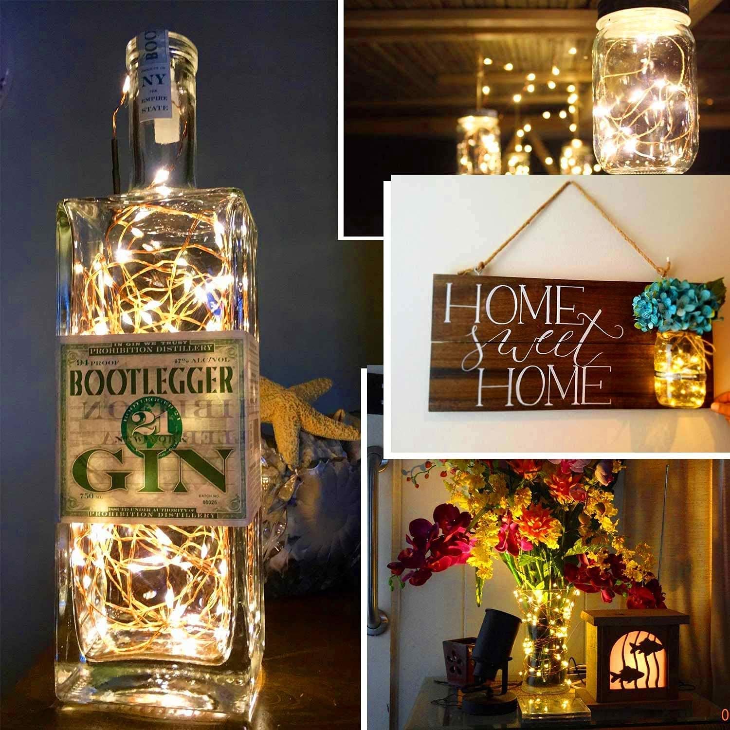 USB Fairy String Lights with Switch and Power Adapter, 66 Feet 200 Led Firefly Lights for Bedroom Wall Ceiling Christmas Tree Wreath Craft Wedding Party Decoration, Warm White