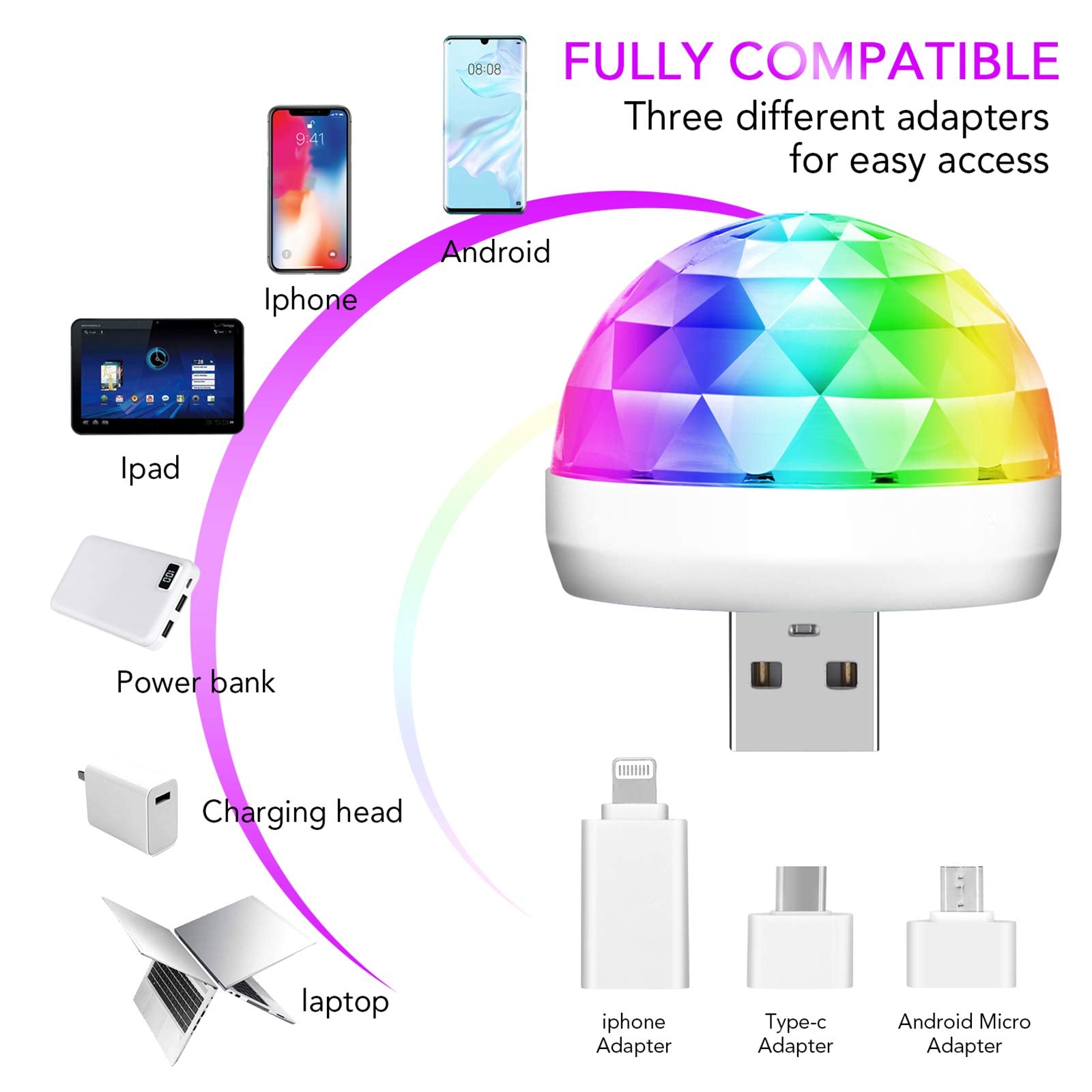 USB Mini Disco Ball Party Lights, Sound Activated DJ Stage Strobe Lights, Portable Led Car Atmosphere Lights for Xmas Stocking Stuffers, Parties, Karaoke, Bar (4 Packs)