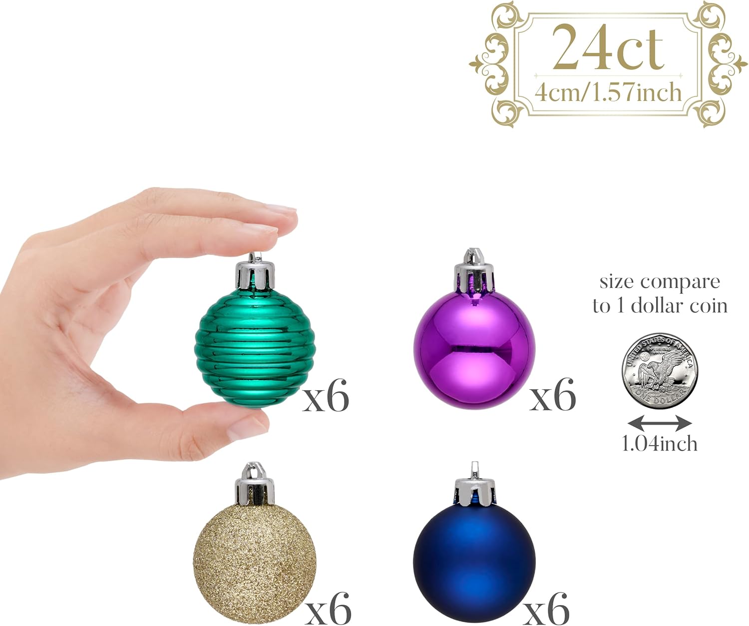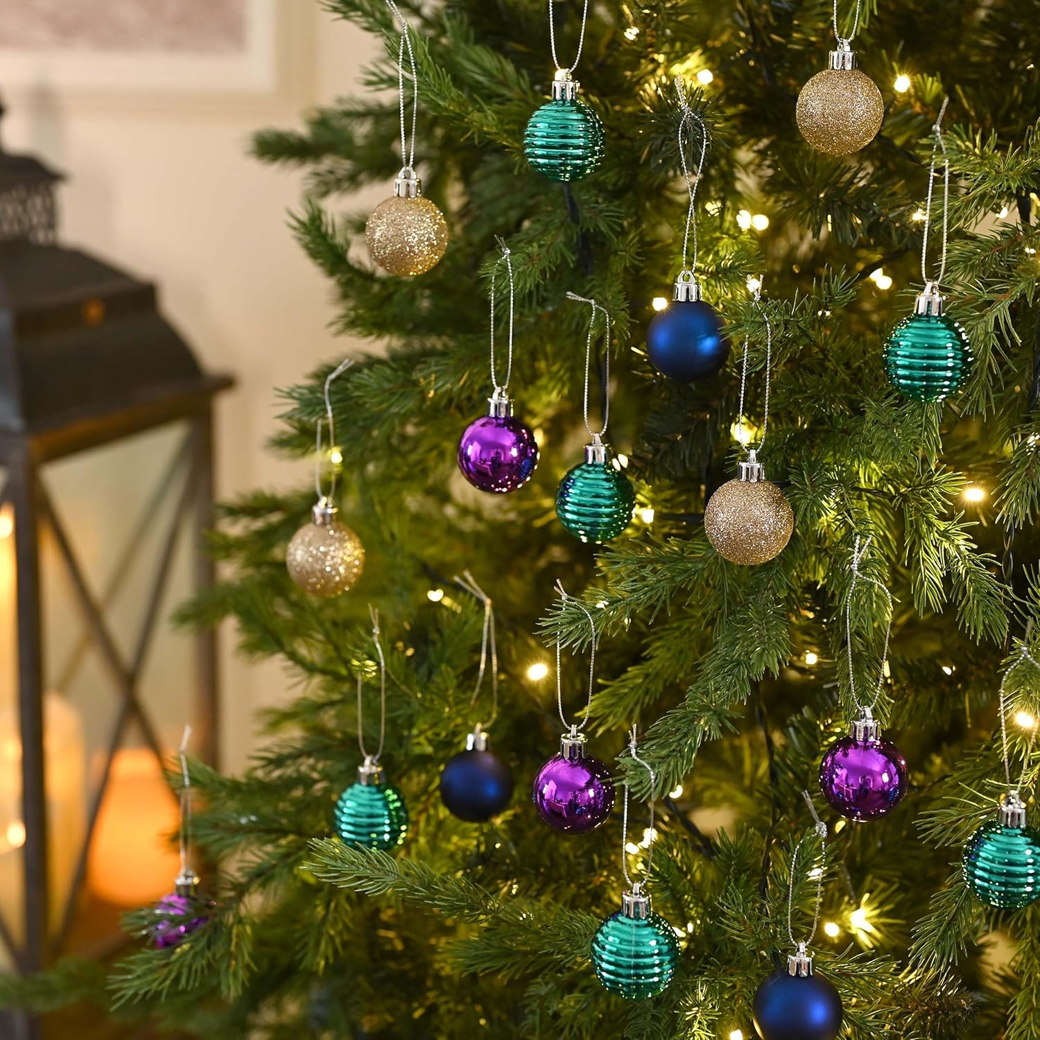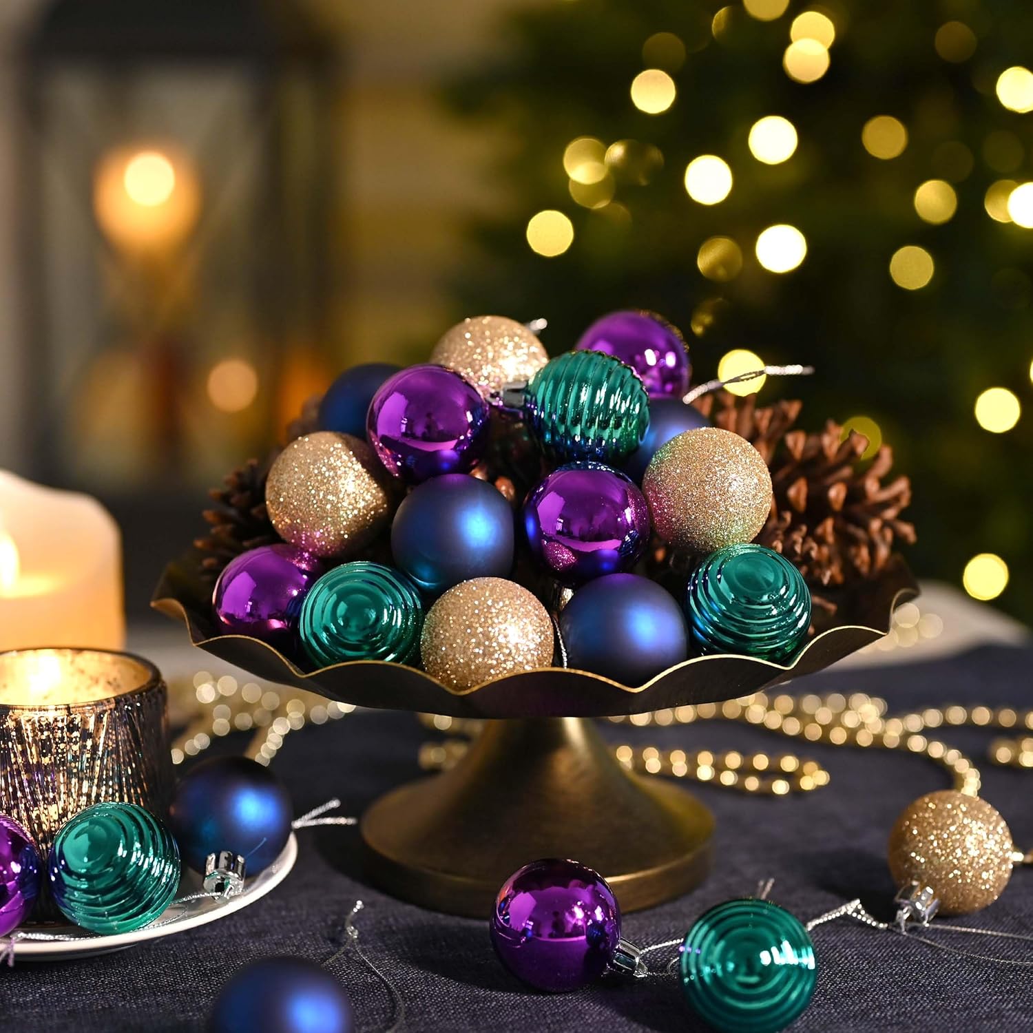 Valery Madelyn 1.57 Inches Small Christmas Tree Decorations Ornament Set for Fall Halloween, 24ct Peacock Purple Blue Shatterproof Christmas Ball Ornaments Bulk, Hanging Decor for Xmas Holiday Party