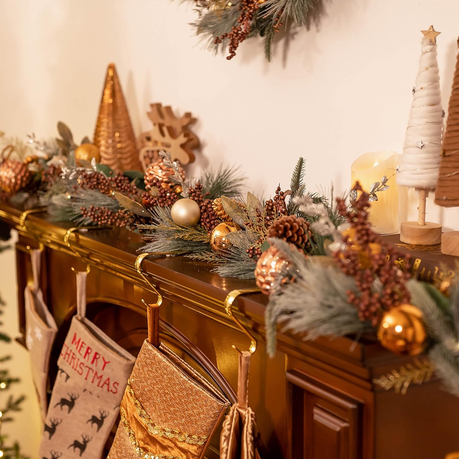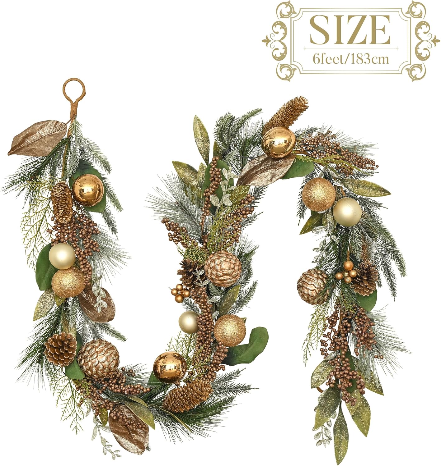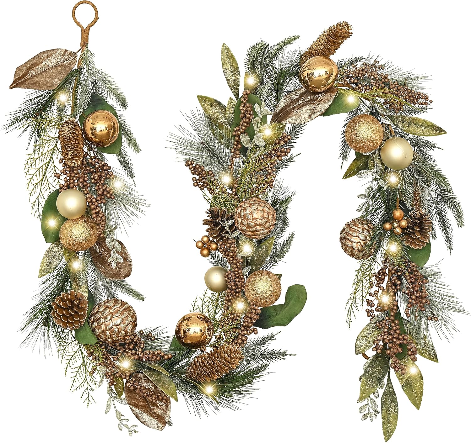 Valery Madelyn 6 feet Pre-Lit Christmas Garland with Lights for Mantle, Lighted Battery Operated Xmas Garland with Bronze Gold Balls for Front Door Fireplace Table Centerpiece Outdoor Window Decor