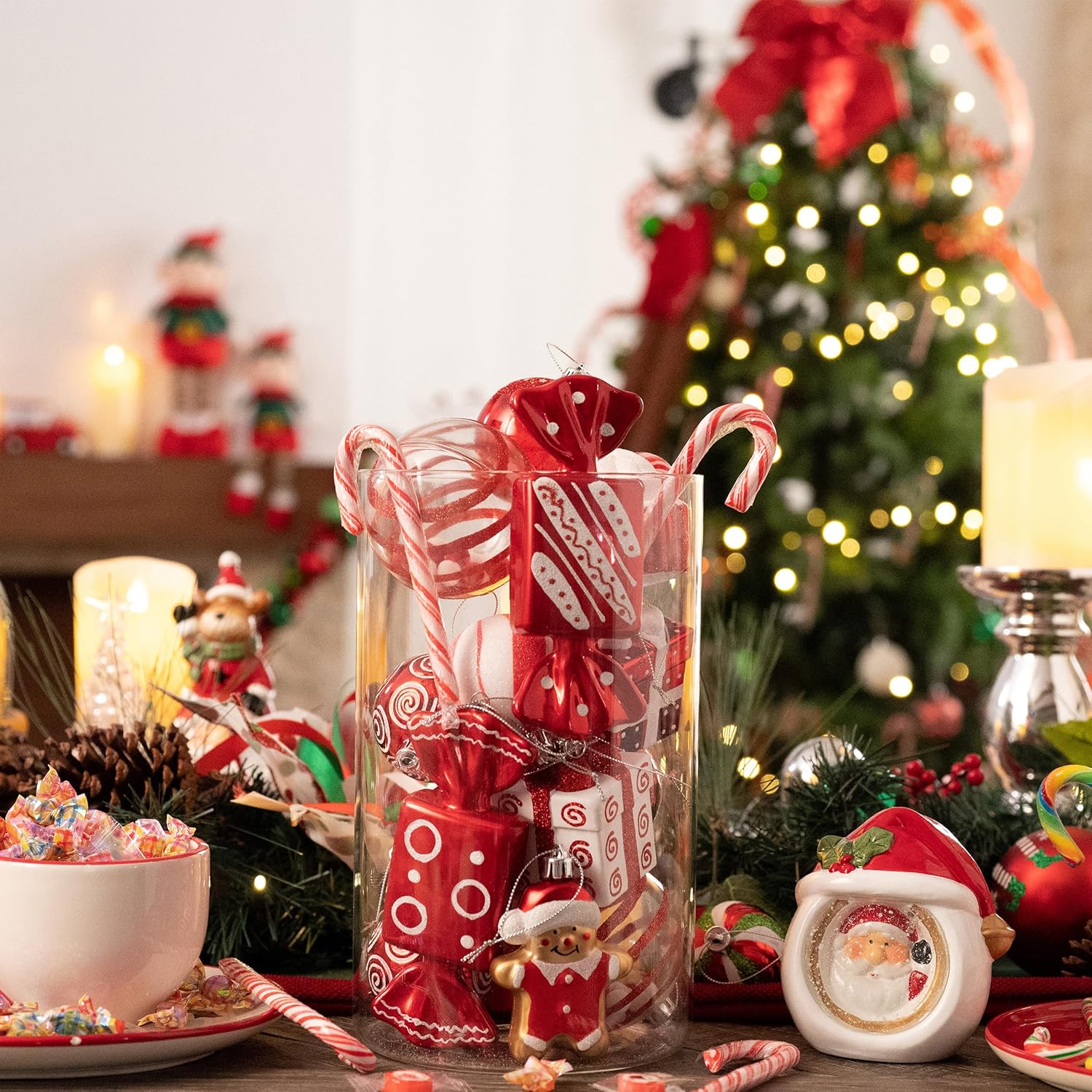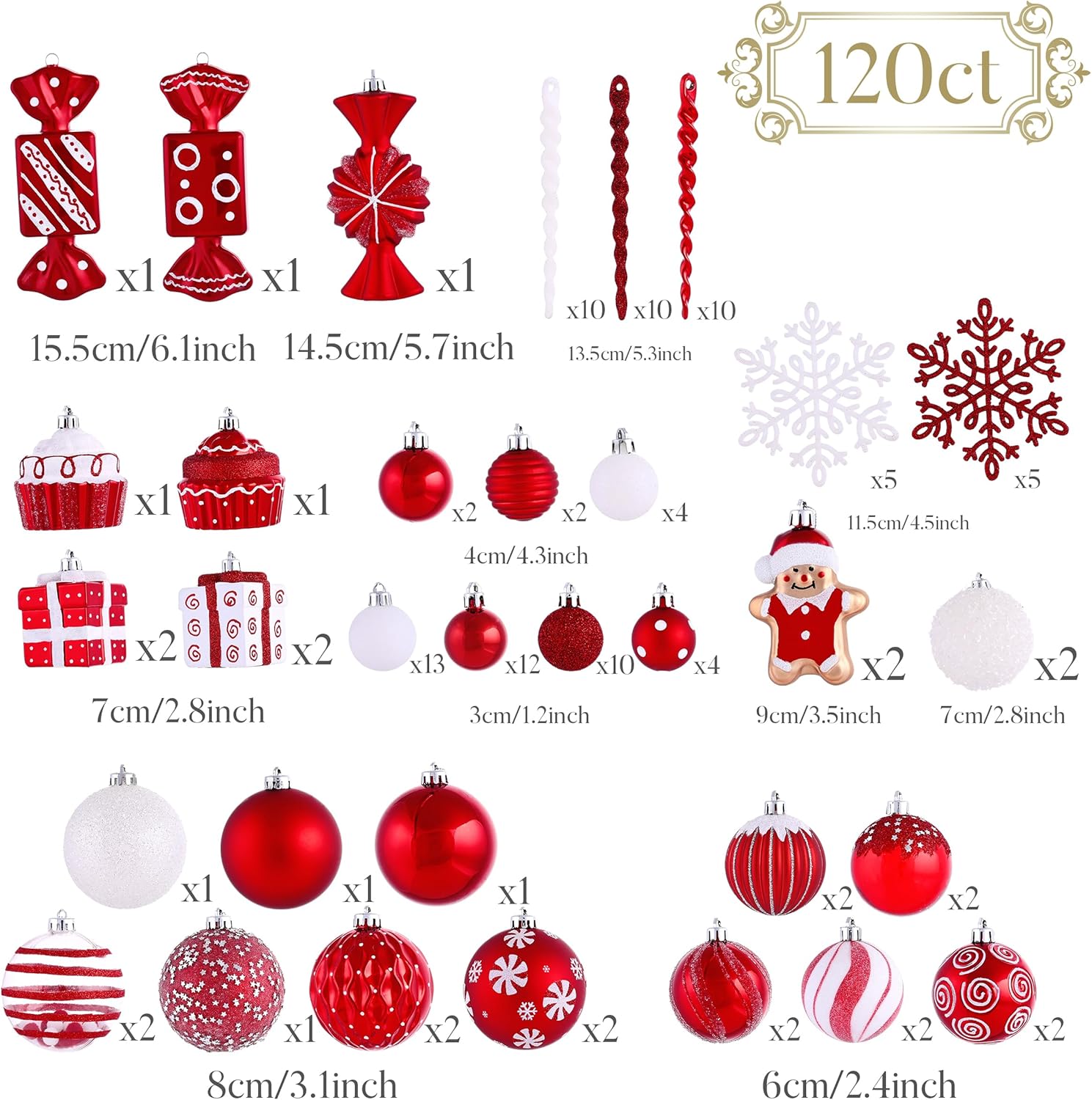 Valery Madelyn Christmas Ornaments Set, 120ct Candy Cane Red White Shatterproof Gingerbread Christmas Tree Decorations Set, Variety Decorative Hanging Ball Ornaments Bulk for Xmas Holiday Party Decor