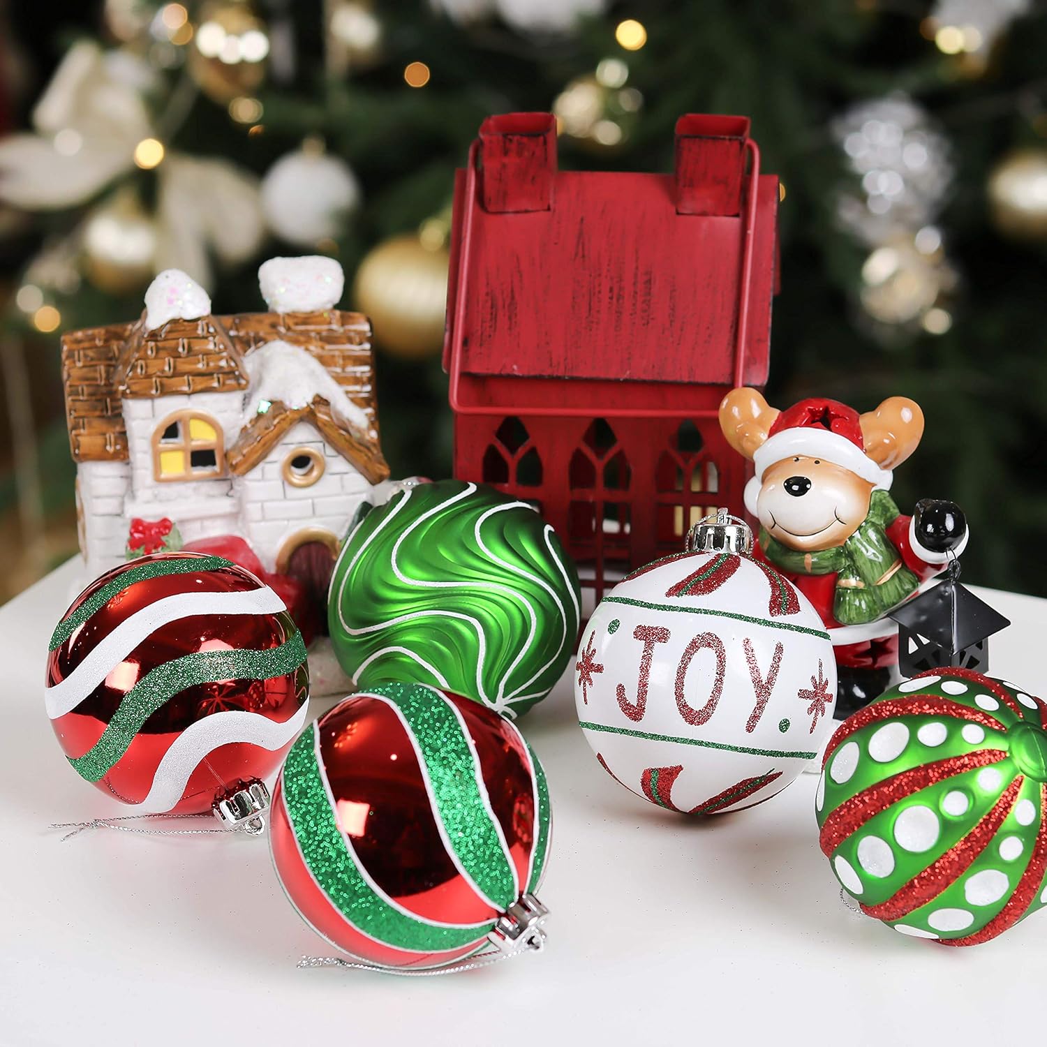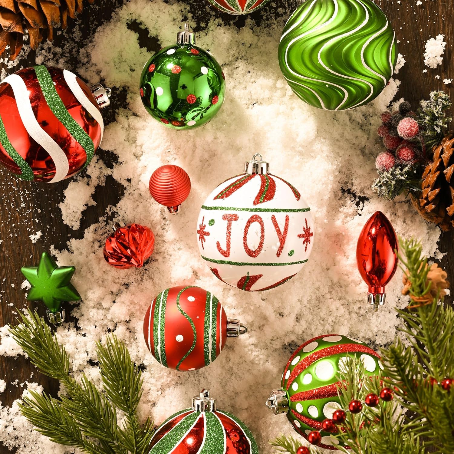 Valery Madelyn Christmas Ornaments Set, 16ct Red Green White Shatterproof Christmas Tree Decorations Ball Ornaments Bulk, 3.15 Inch Hanging Ornaments for Xmas Trees Holiday Party Decor