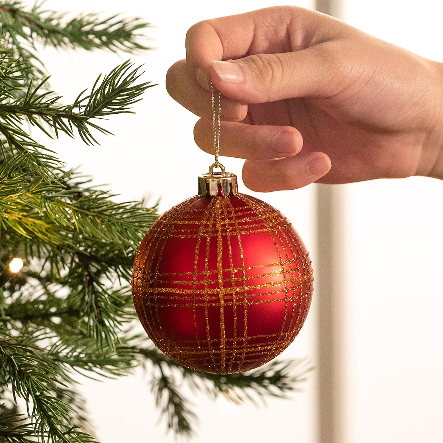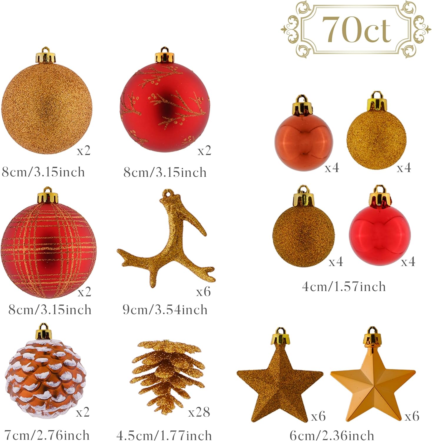 Valery Madelyn Christmas Ornaments Set, 70ct Red and Brown Shatterproof Christmas Tree Decorations, Woodland Hanging Ball Ornaments Bulk for Thanksgiving Xmas Holiday Decor