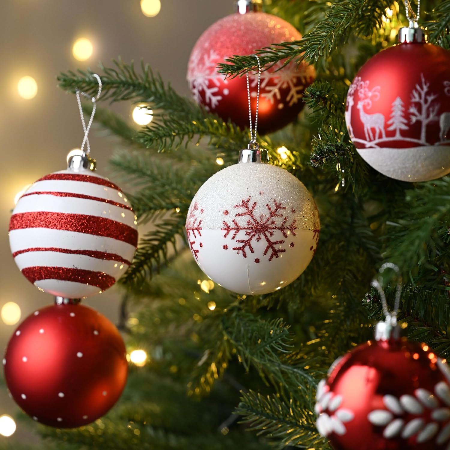 Valery Madelyn Christmas Tree Decorations Set, 16ct Red and White Shatterproof Christmas Ball Ornaments Bulk, 3.15 Inch Traditional Hanging Ornaments for Christmas Trees Xmas Holiday Party Decor