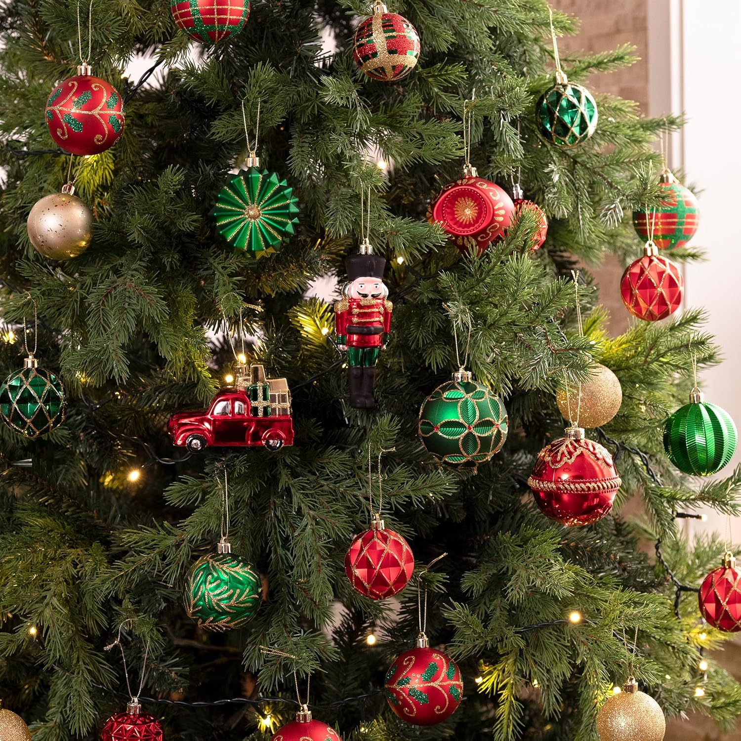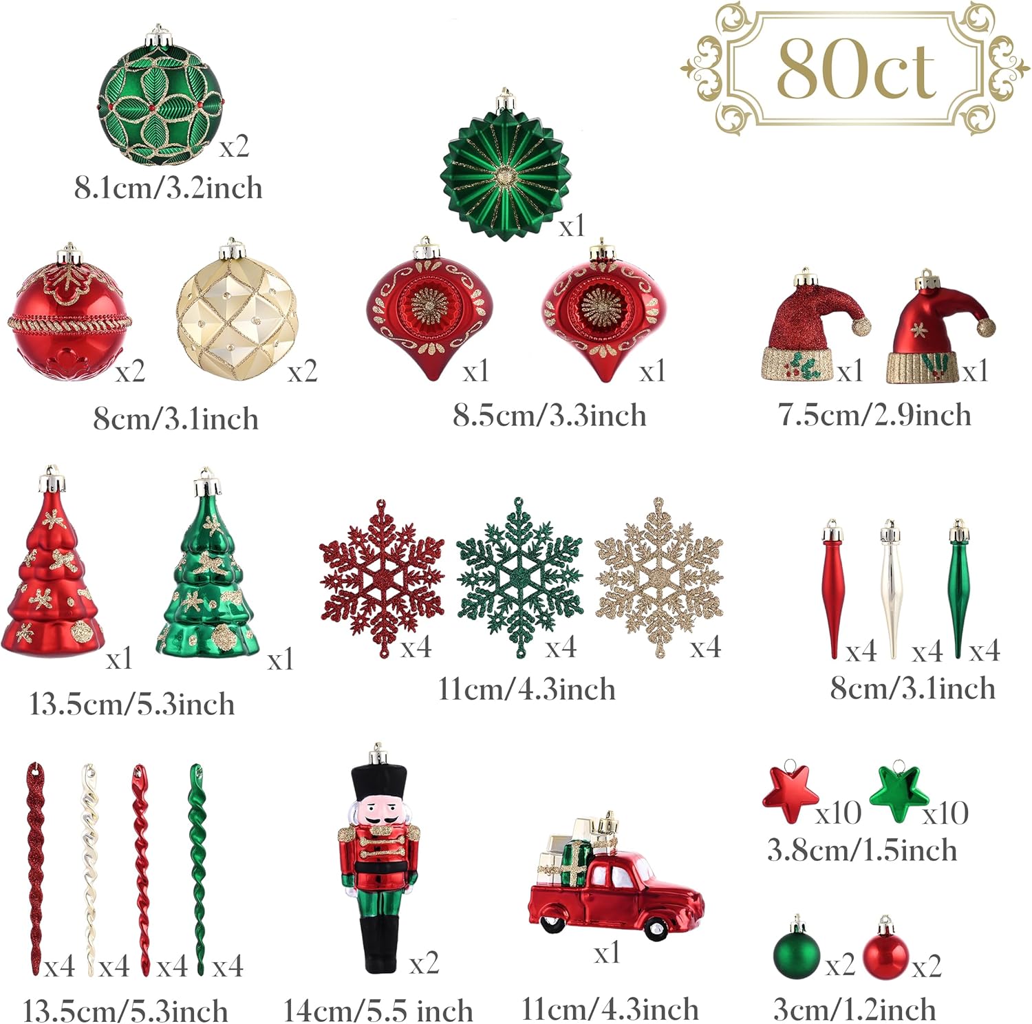 Valery Madelyn Christmas Tree Decorations Set, 80ct Red Green and Gold Shatterproof Christmas Ball Ornaments Bulk, Traditional Country Hanging Ornaments for Christmas Trees Xmas Holiday Decor