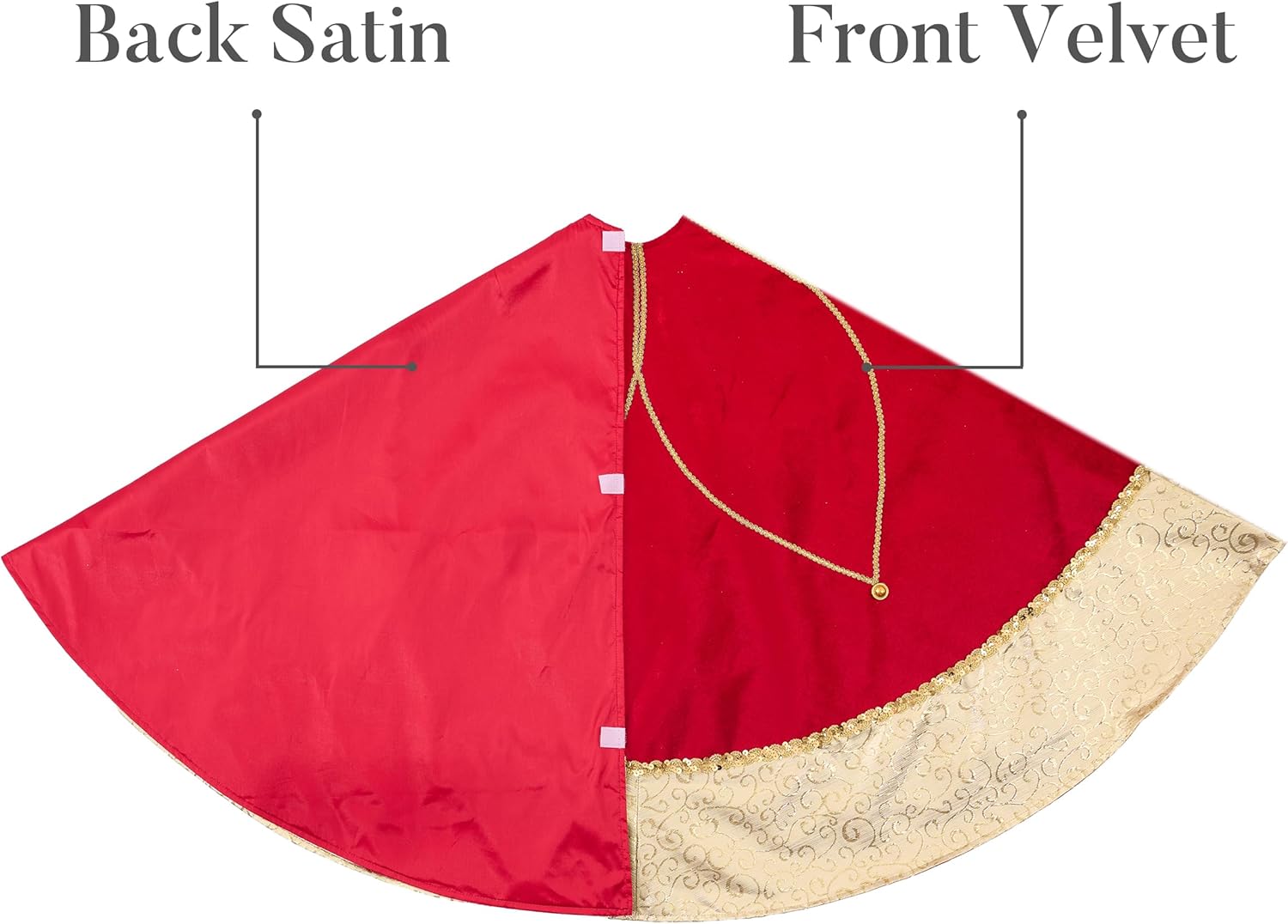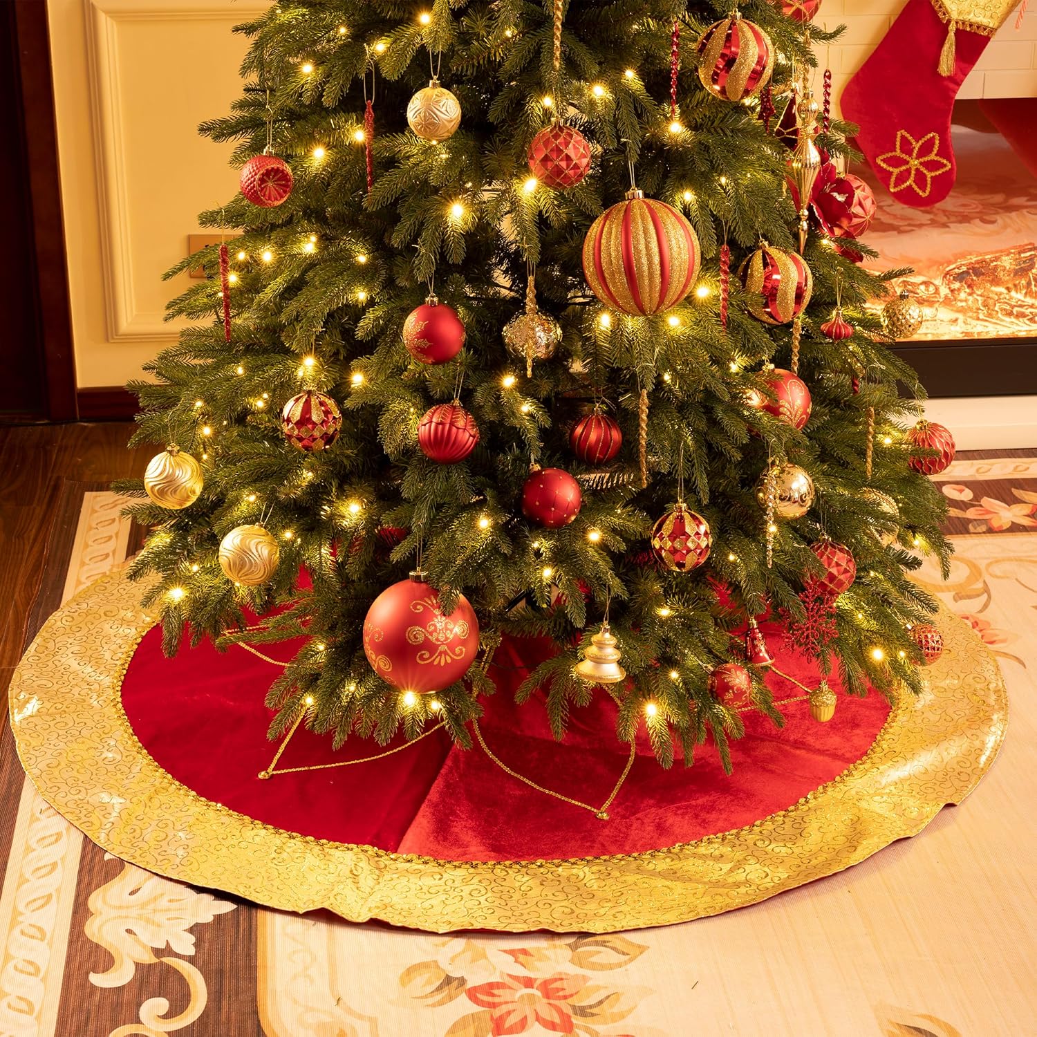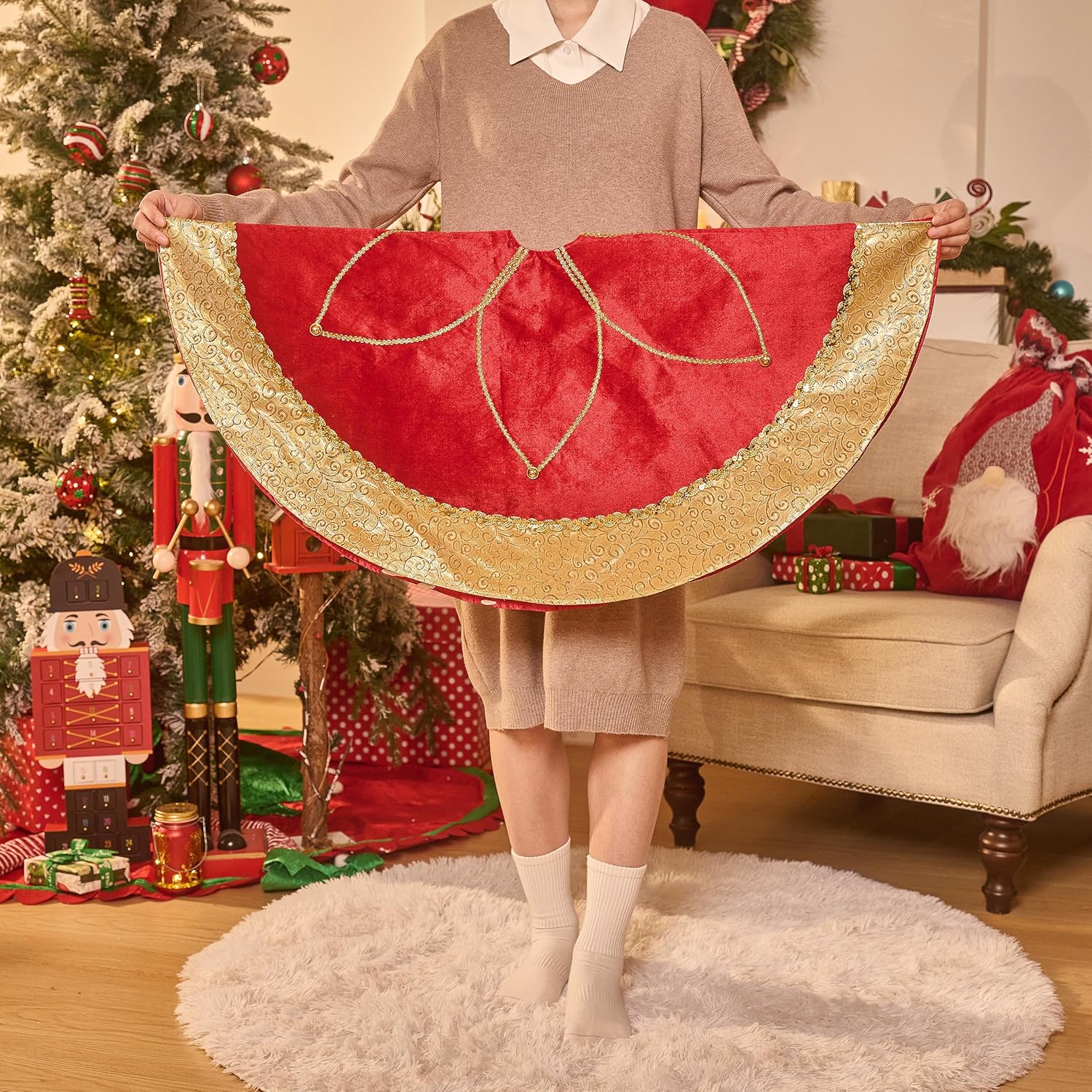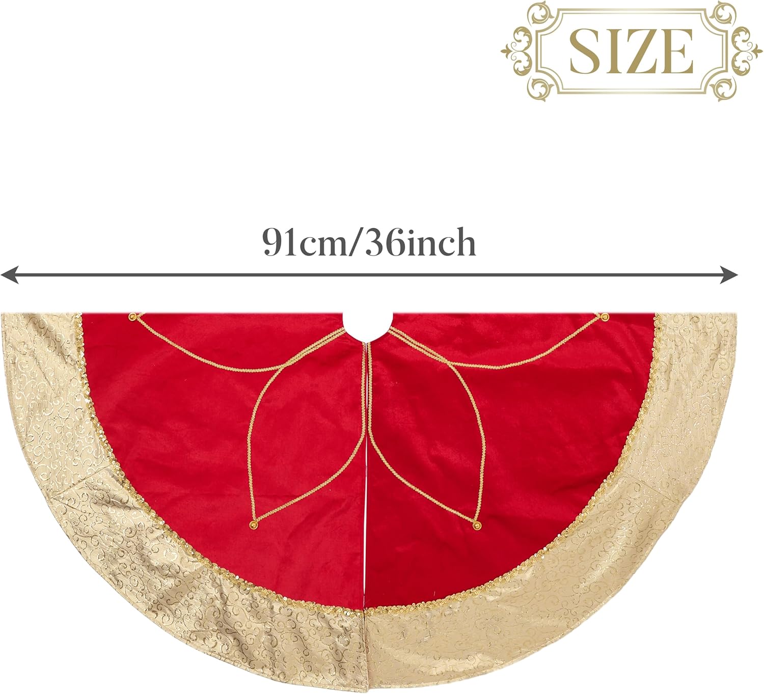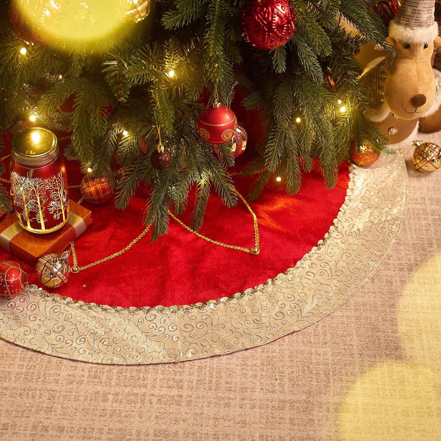 Valery Madelyn Christmas Tree Skirt for Tree Decorations, 36 Inch Fabric Luxury Red Gold Large Xmas Velvet Tree Skirt with Embroidery Flower & Golden Baroque Border Tree Merry Christmas Party Decor