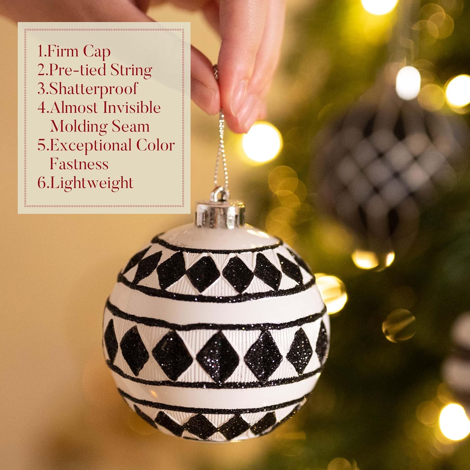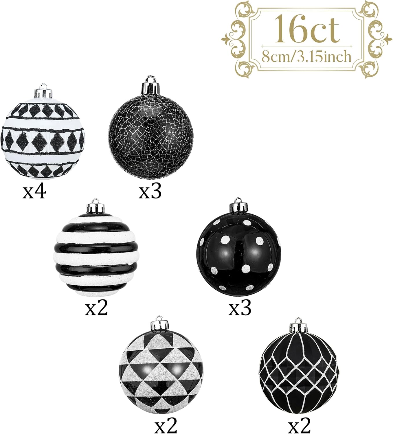 Valery Madelyn Large Christmas Ornaments Tree Decorations, 16ct Black White Boho Shatterproof Christmas Ball Ornaments Set, 3.15 Inch Modern Hanging Ornament Bulk for Xmas Holiday Party Decor