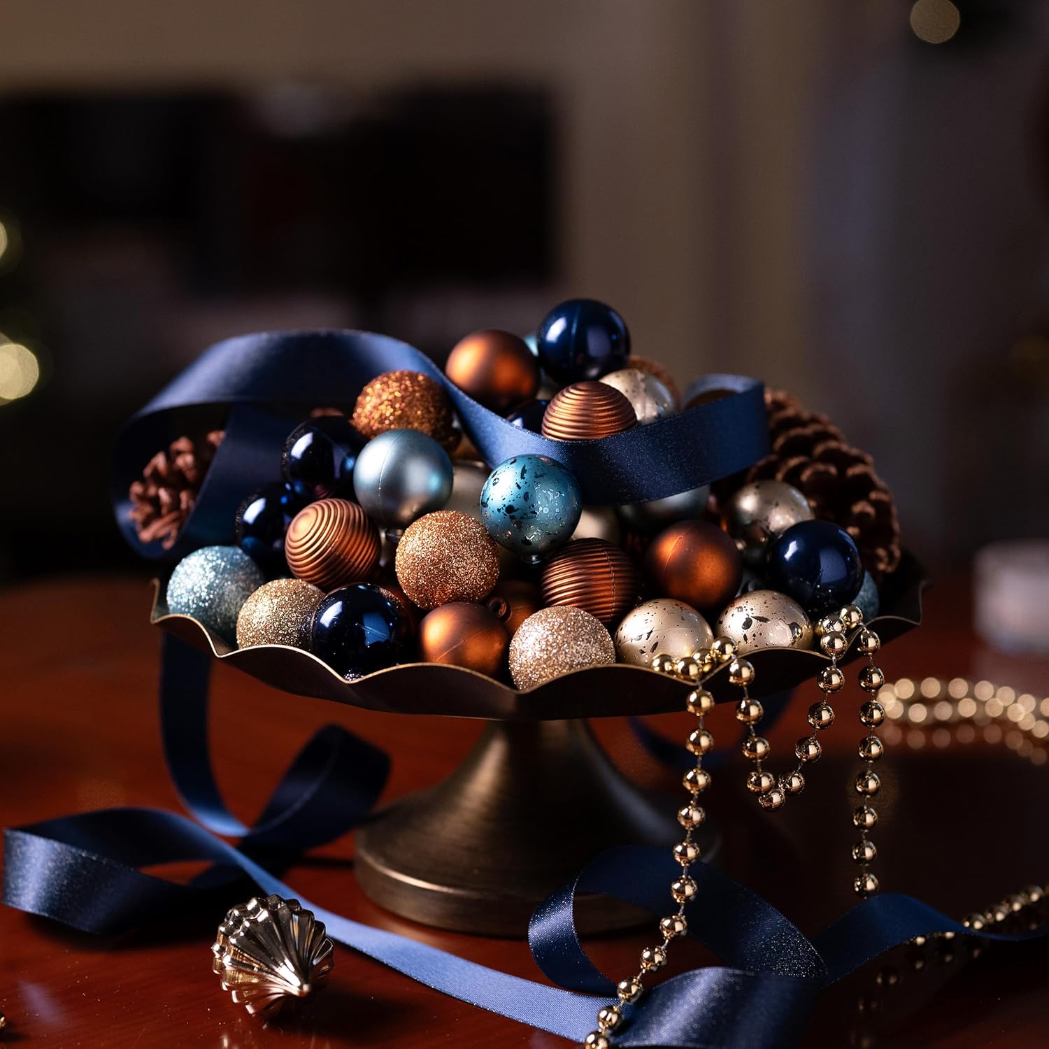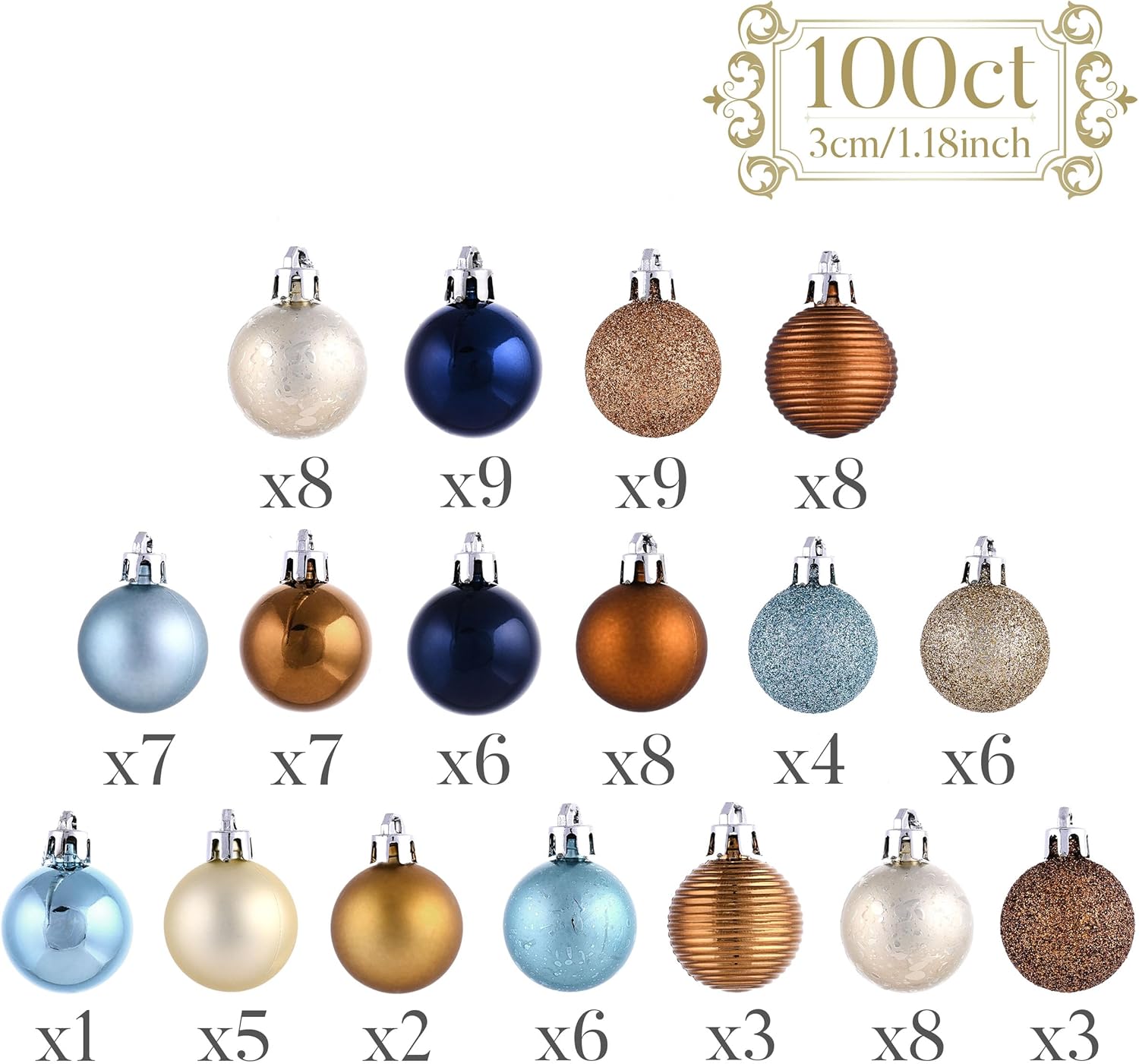 Valery Madelyn Mini Christmas Tree Ornaments Set, 100ct Blue Copper and Gold Shatterproof Christmas Tree Decorations Bulk, 1.18 Inches Hanging Ball Ornaments for Xmas Trees Holiday Decor