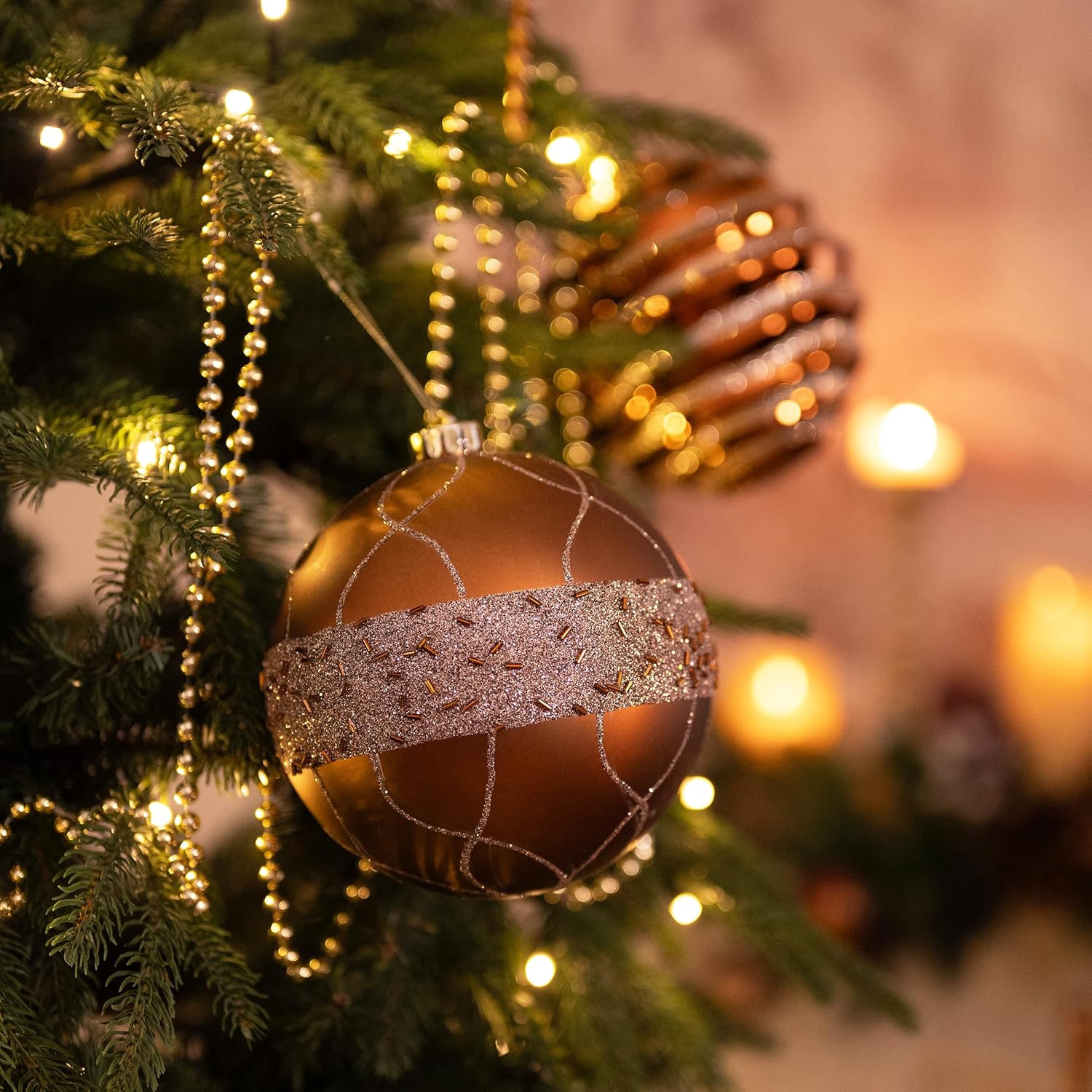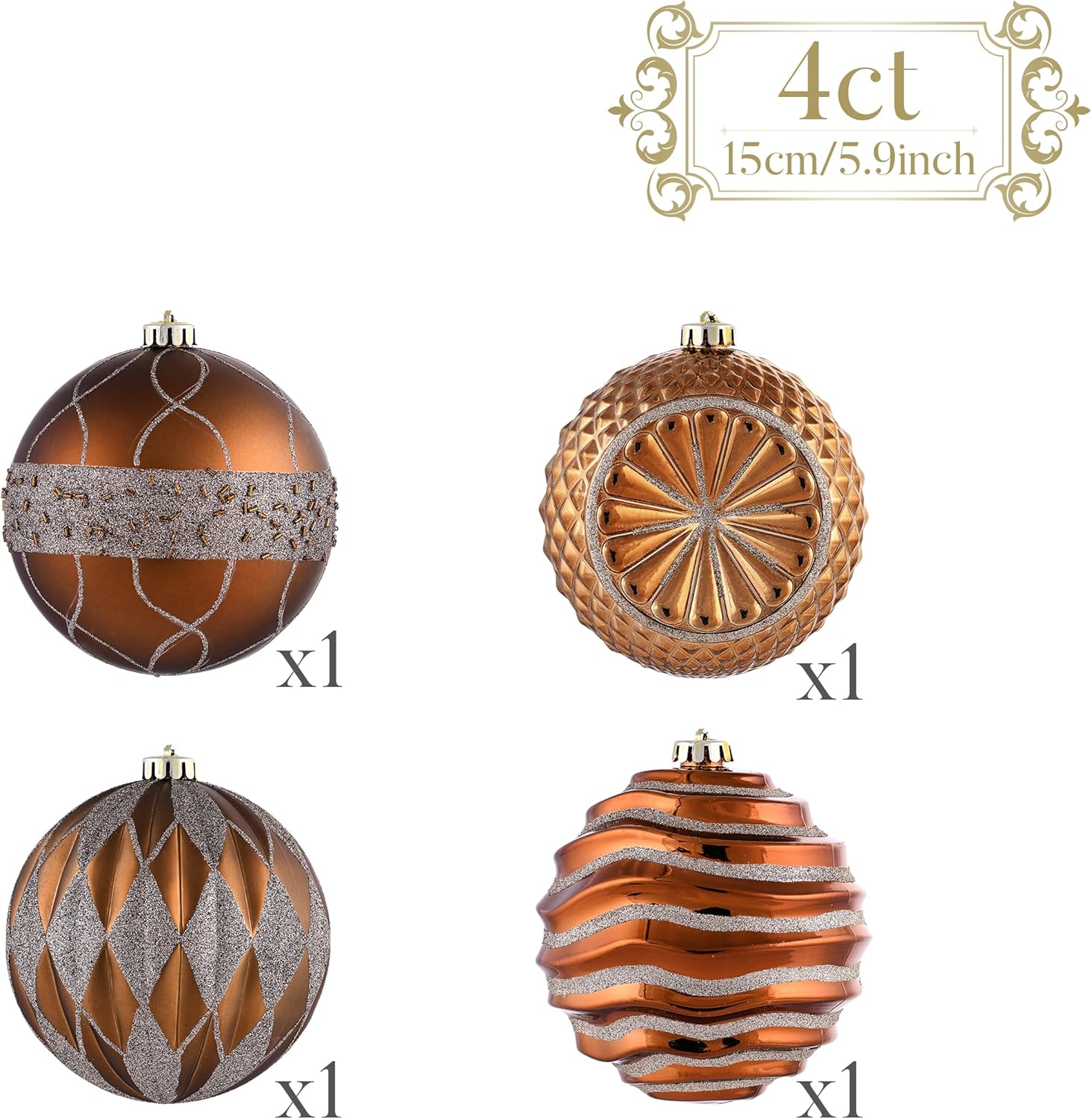 Valery Madelyn Ornaments for Christmas Trees, 4ct Bronze Copper and Gold Shatterproof Fall Christmas Tree Decorations, 5.9 Inches Luxury Brown Hanging Ball Ornaments Bulk for Xmas Holiday Decor