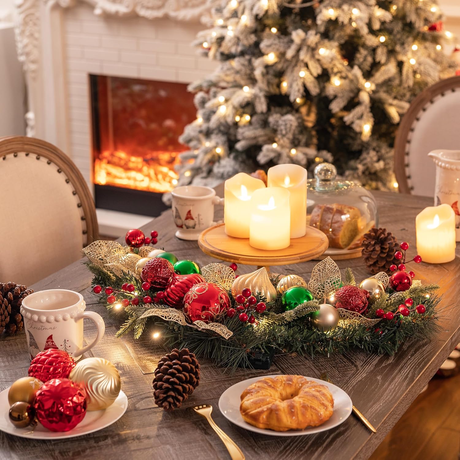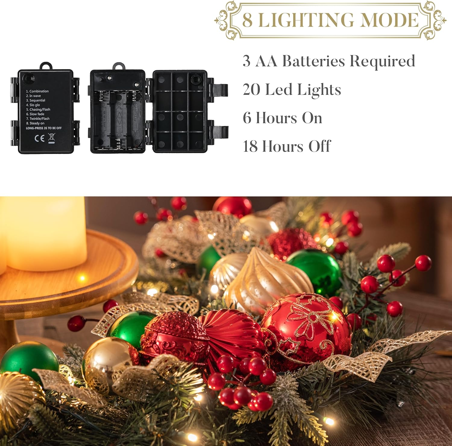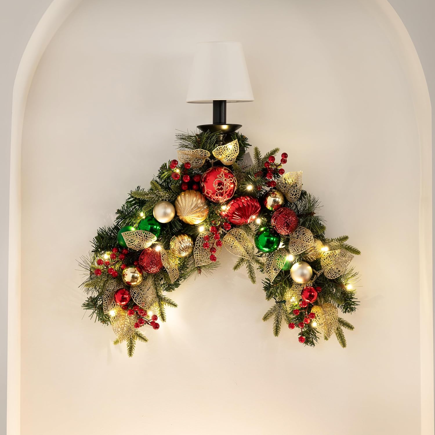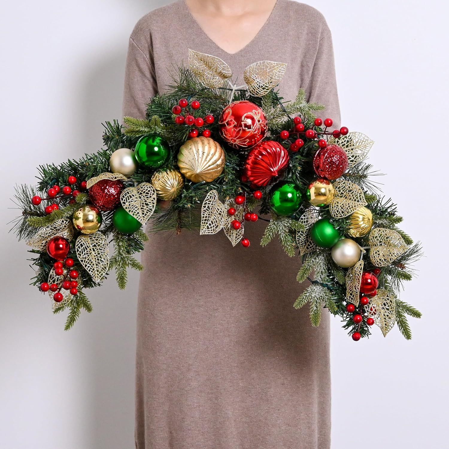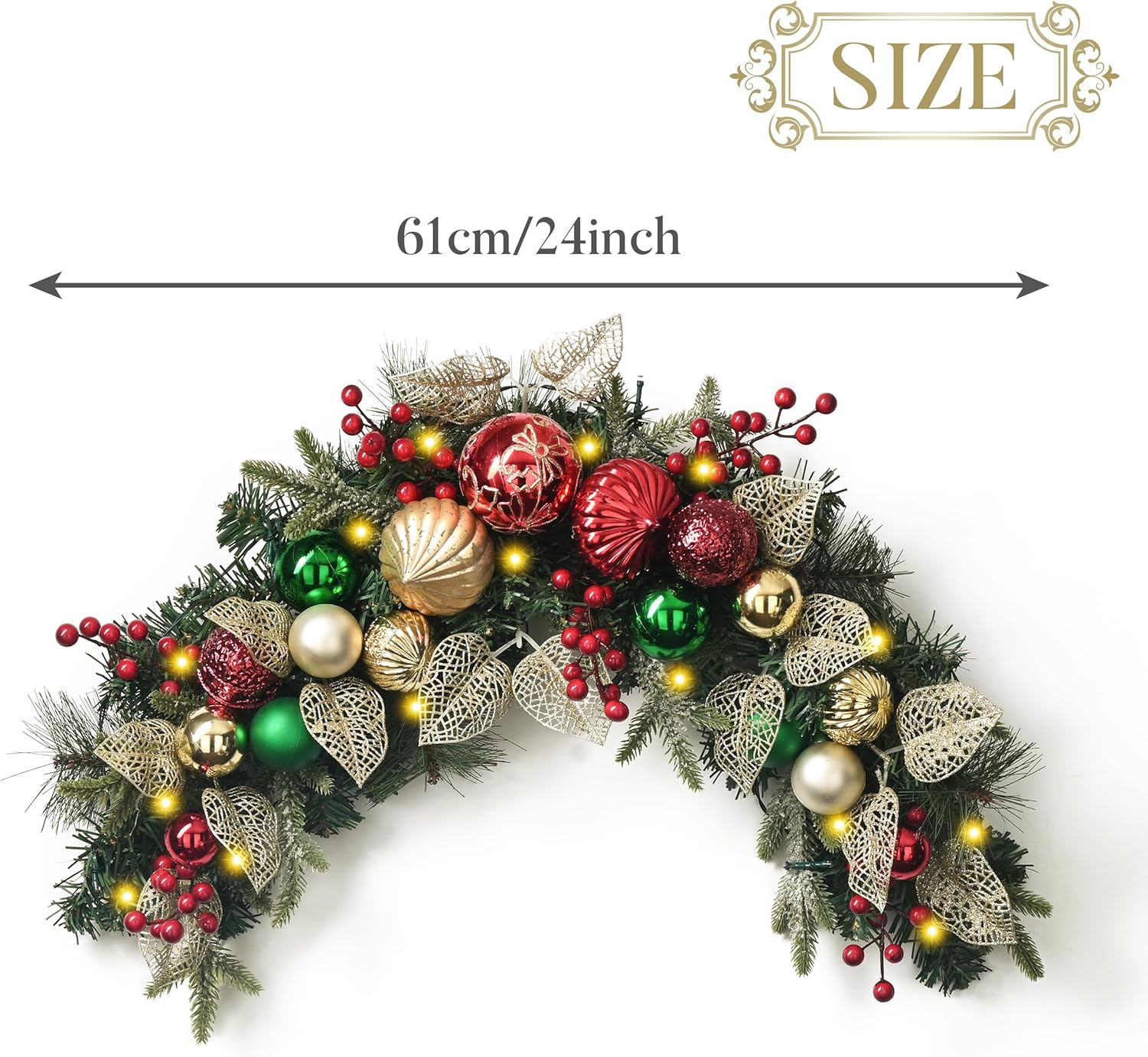 Valery Madelyn Pre-Lit Christmas Swag Outdoor, 24 Inch Mailbox Christmas Decorations Swag Teardrop for Front Door Stairs Railing Window Xmas Decor with 20 LED Lights Red Green Gold Ball Ornament