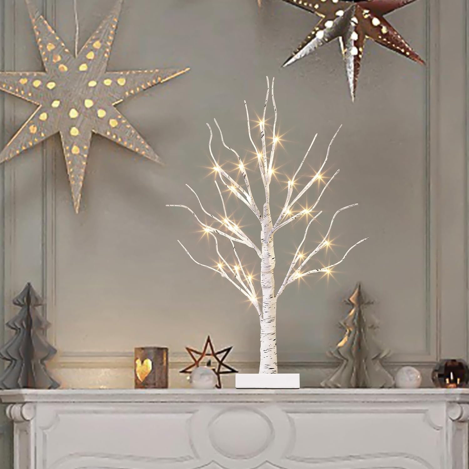 Vanthylit Lighted Tree, White Birch Tree with LED Lights, Prelit Artificial Tree with Timer, Centerpiece Tree Light for Christmas Decorations, Light Up Tabletop Tree Home Decor (2 FT, Warm White)