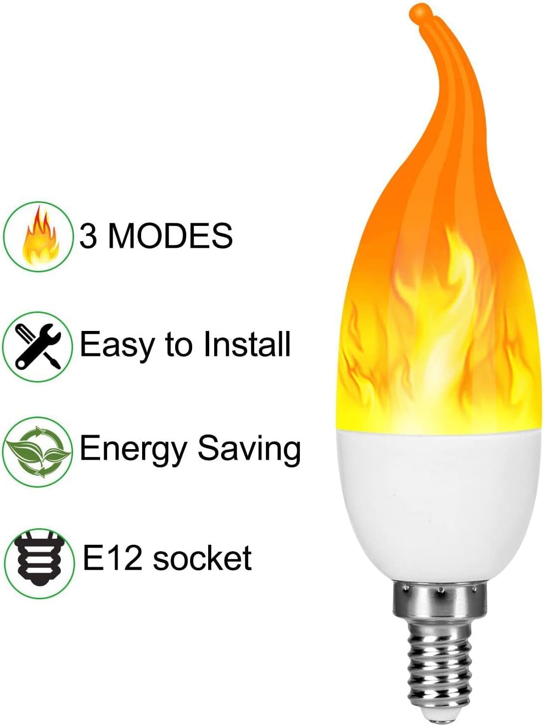 Venforze E12 Flame Bulbs 4 Pack, 3 Mode LED Candelabra Flame Light Bulb 1.2 Watt Warm White Chandelier Flame Bulbs,1801k Candle Light Bulbs, Flame Tip for Christmas Party Decorations
