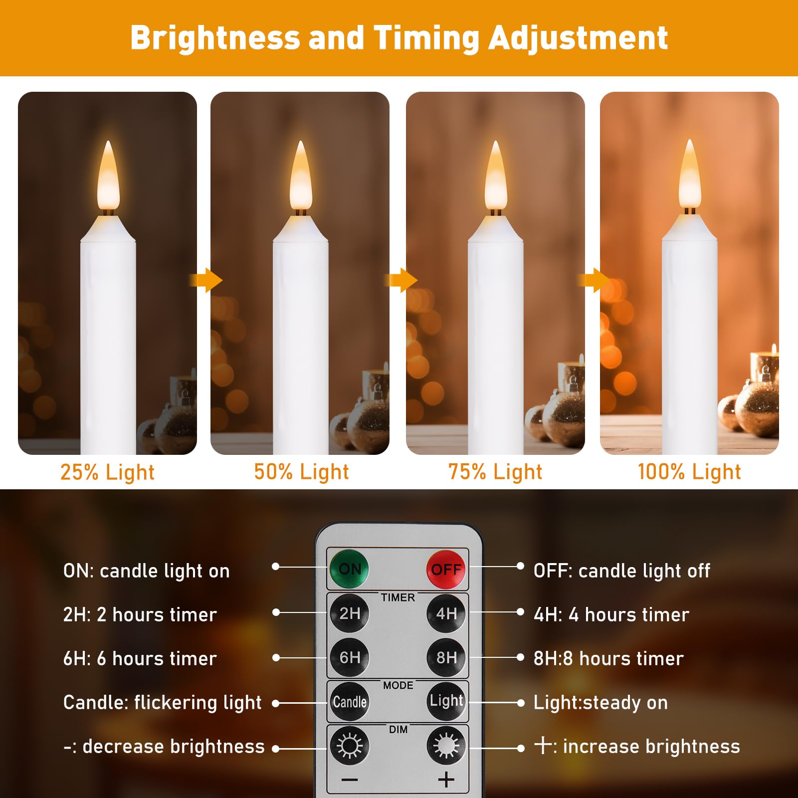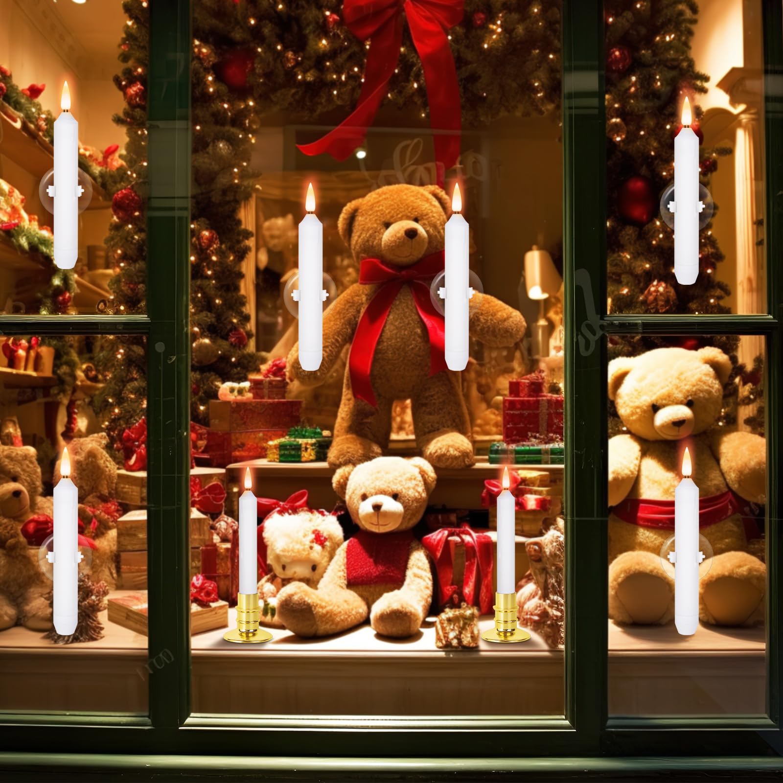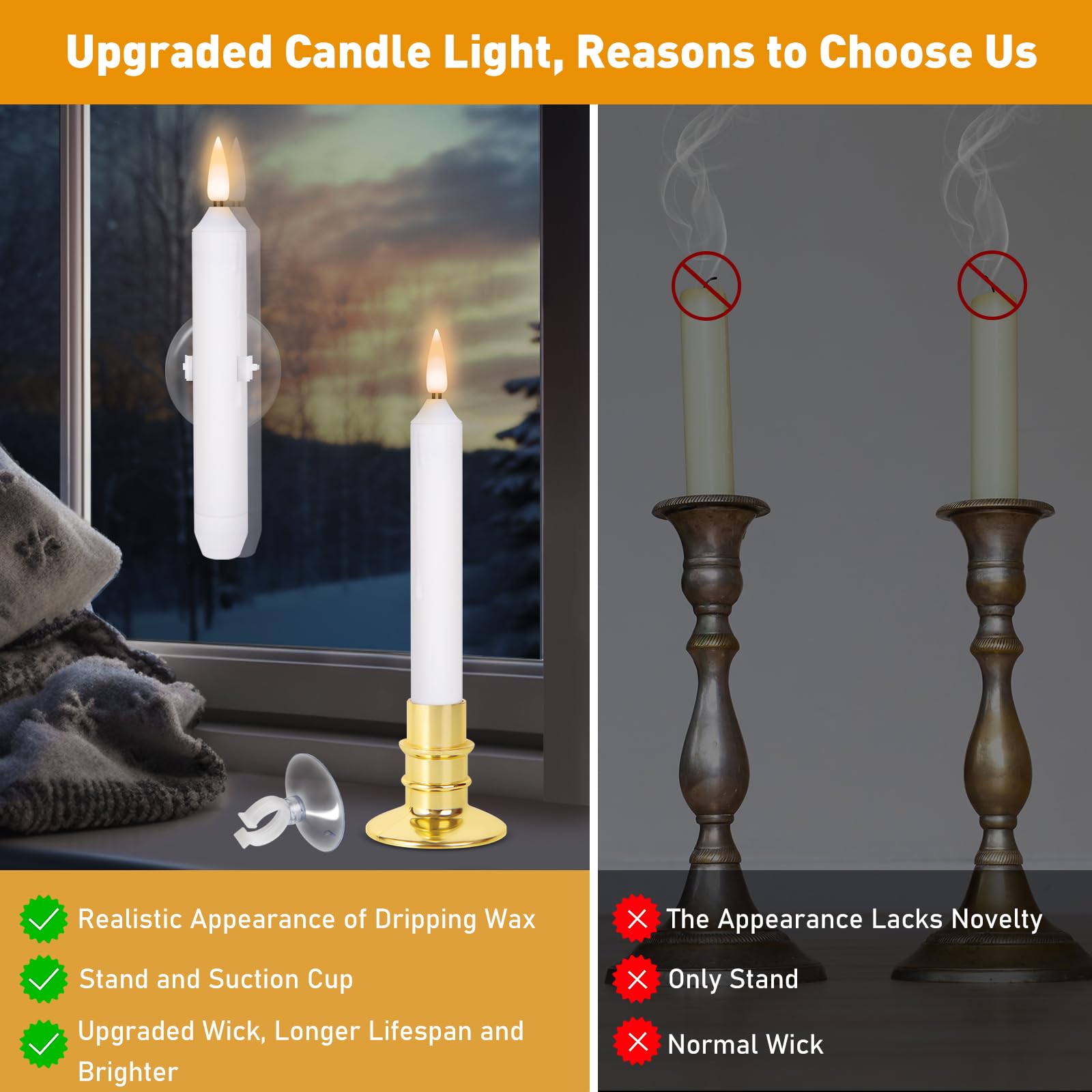 Verdenu Christmas Window Candles, 12 PCS Battery Operated Flameless Window Candles with Remote & Timer, 3D Flickering LED Window Lights Flickering Taper Candle for Christmas Wedding Party Decorations
