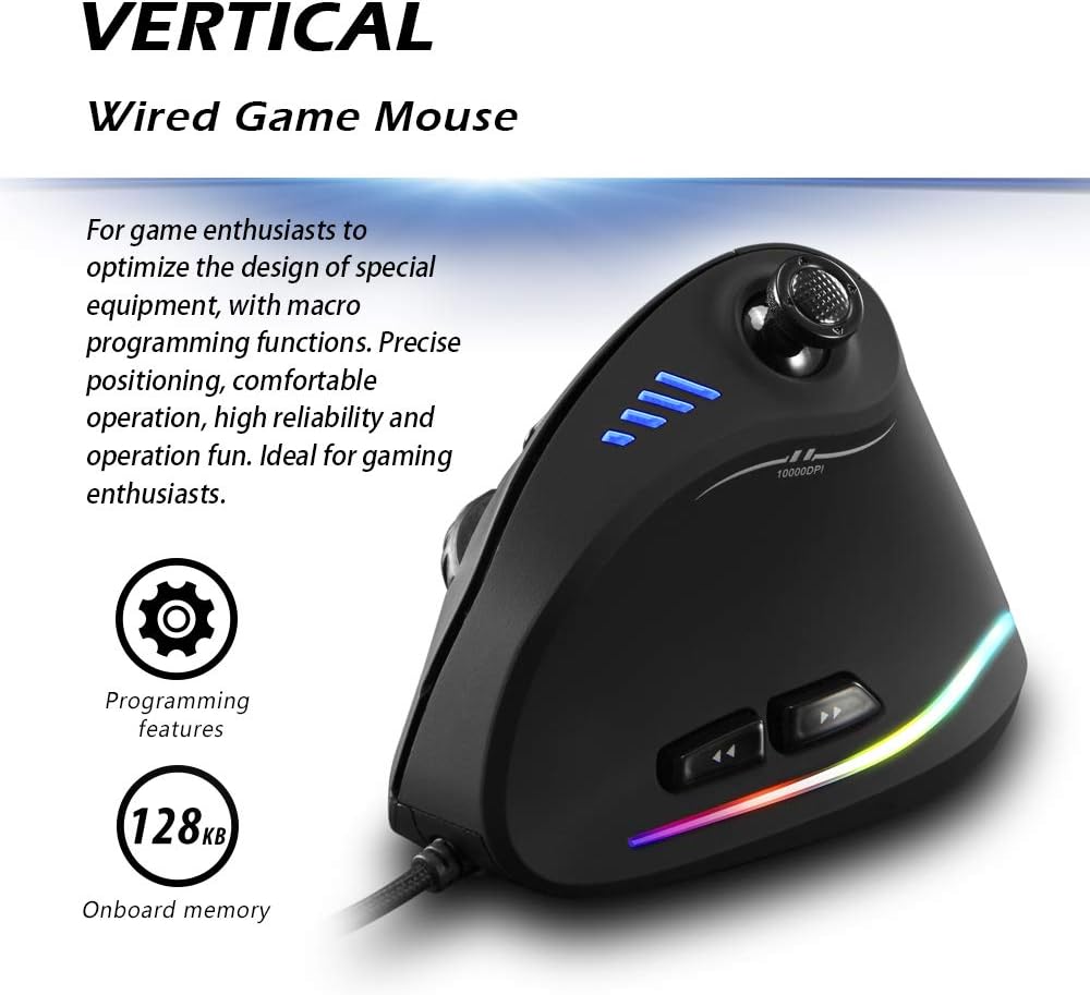 • 【11 Programmable Buttons】 This Vertical Wired Gaming Mouse has up to 11 programmable buttons. Support macro editing, you can customize all the buttons function via the programming software, to meet various demands in different games.
