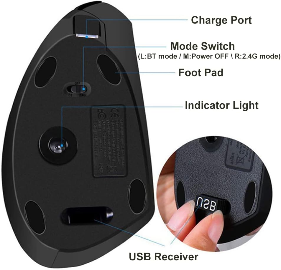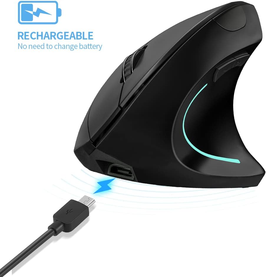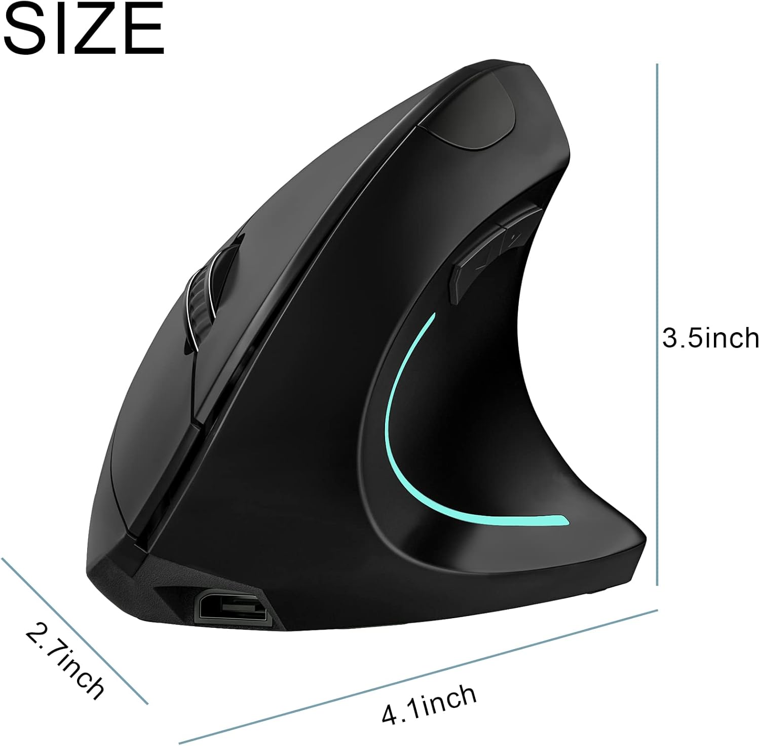 Vertical Mouse, Right Handed 2.4GHz Wireless Ergonomic Rechargeable Vertical Mouse with 4 Adjustable DPI 800/1200/1600/2400, 6 Buttons,Compatible with PC, Desktop,Mac (Black)…