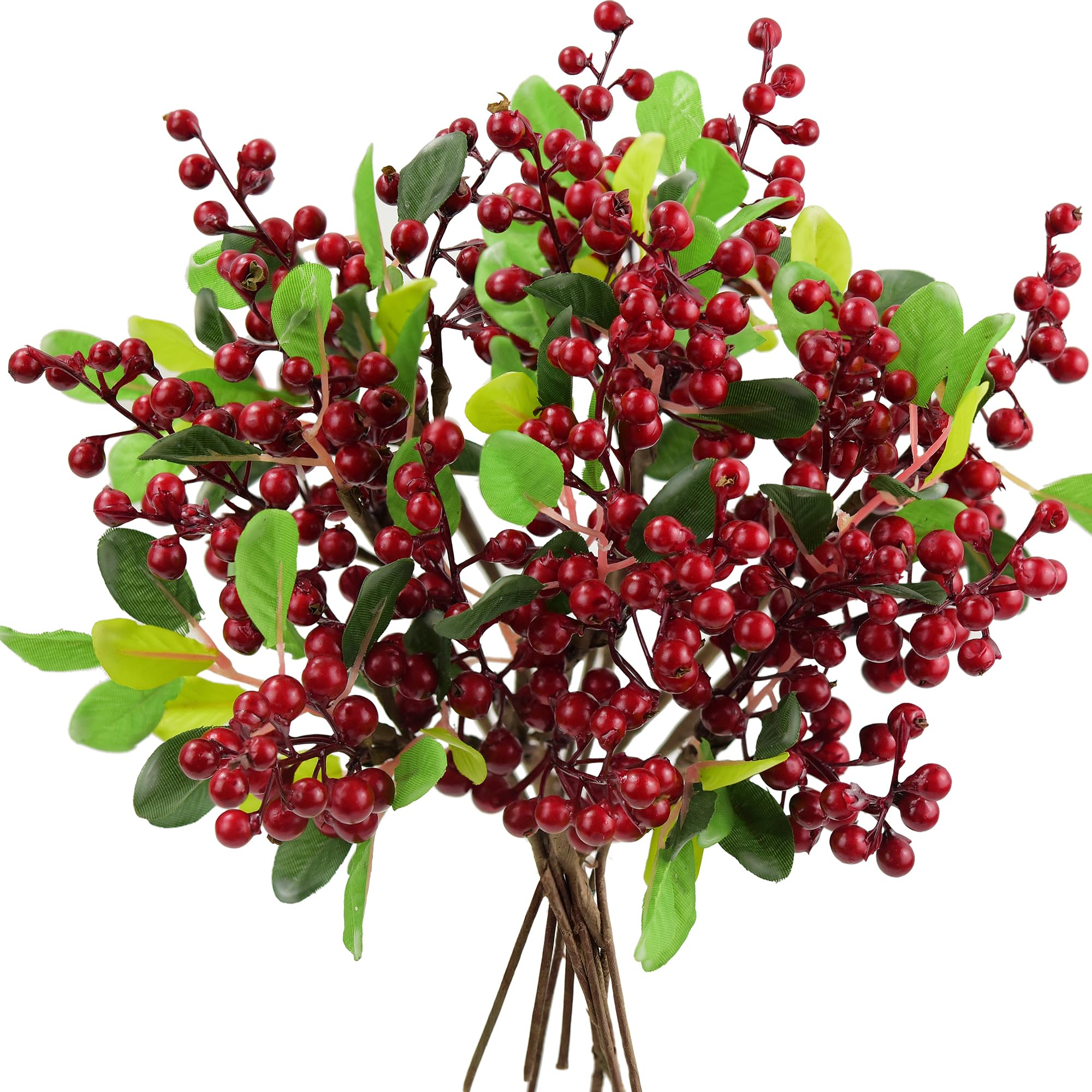Vibrant Artificial Holly Red Berry Decorations with Flexible Stems: Set of 10 for Stunning Vases, Bouquets, and Floral Arrangements - FiveSeasonStuff Floral