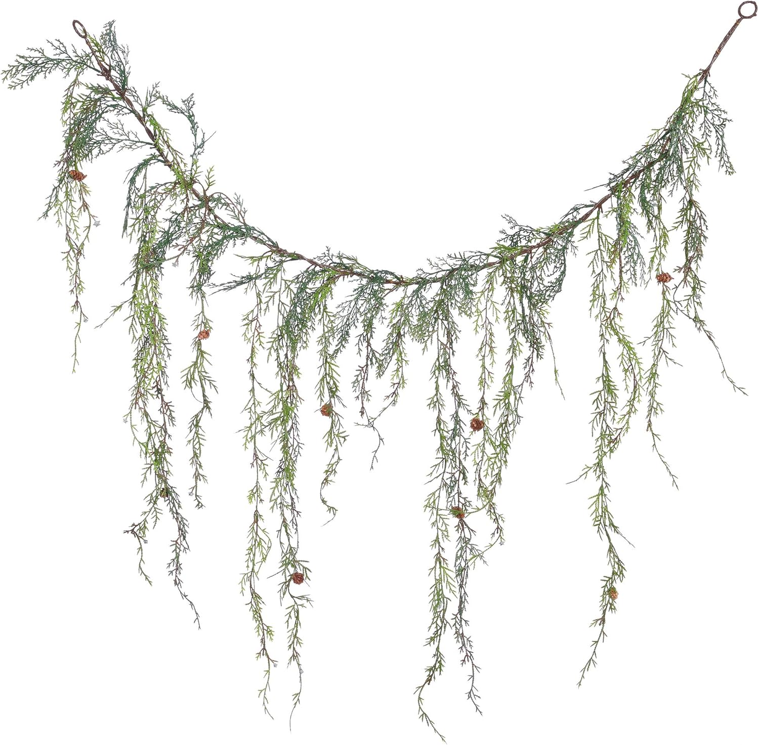 Vickerman 4' Long Weeping Cedar Artificial Christmas Garland, Unlit - Faux Cedar Christmas Garland - Indoor Seasonal Home Decor - Featuring Pine Cones