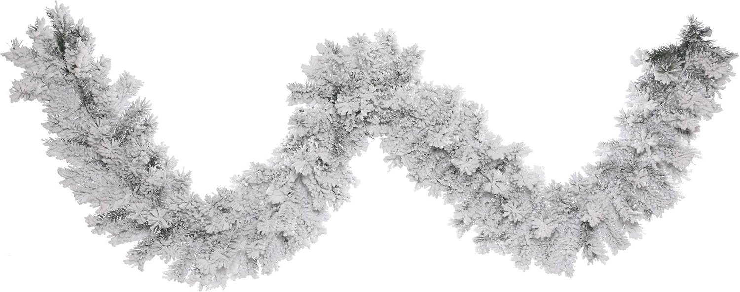 Vickerman 9' Flocked Alaskan Pine Artificial Christmas Garland, Unlit - Faux Pine Christmas Garland - Seasonal Indoor Home Decor - Snowy Garland for Holidays