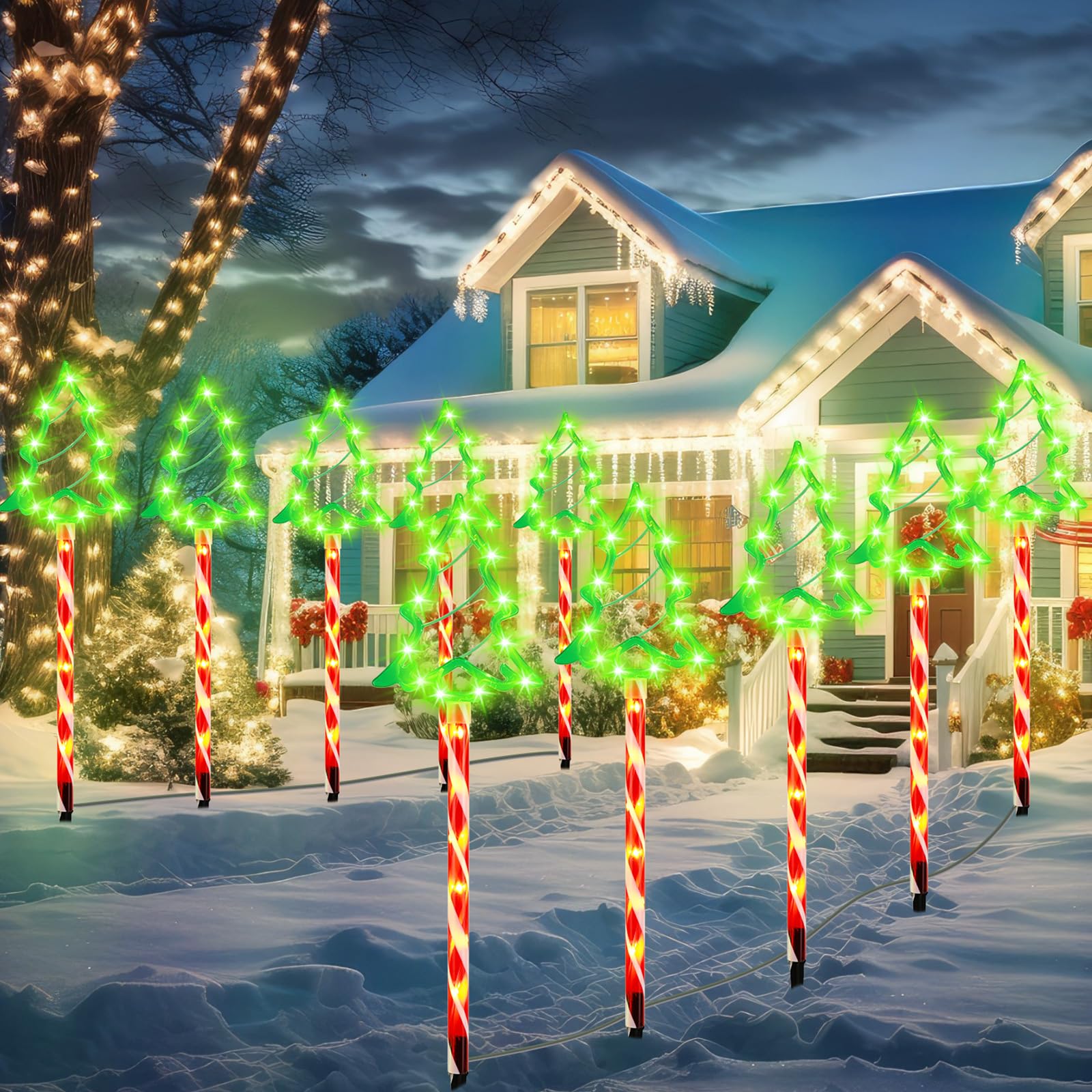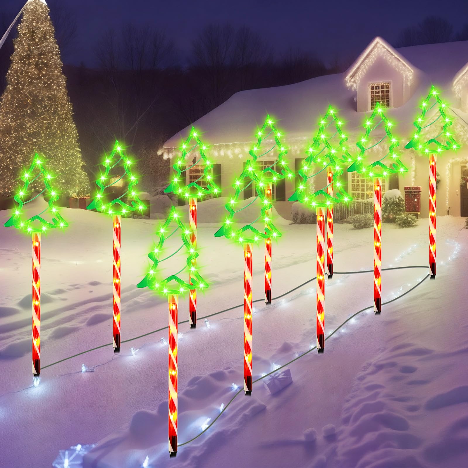 VIHOSE 10 Pack Christmas Pathway Lights 170 LED Outdoor Christmas Tree Stake Light with 8 Lighting Modes Christmas Decorations Waterproof Light Plug-in Lighted Markers for Garden Yard Decor