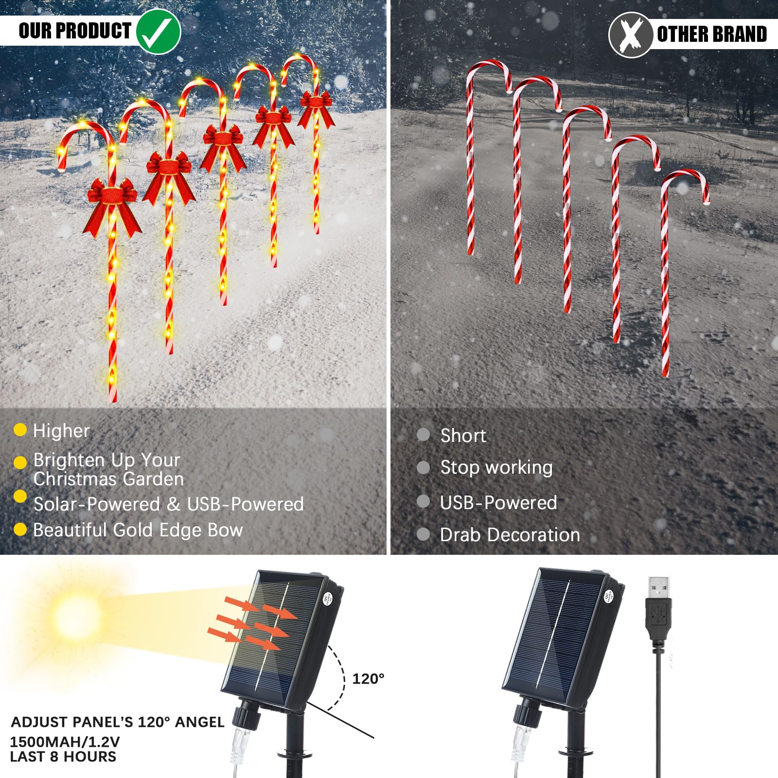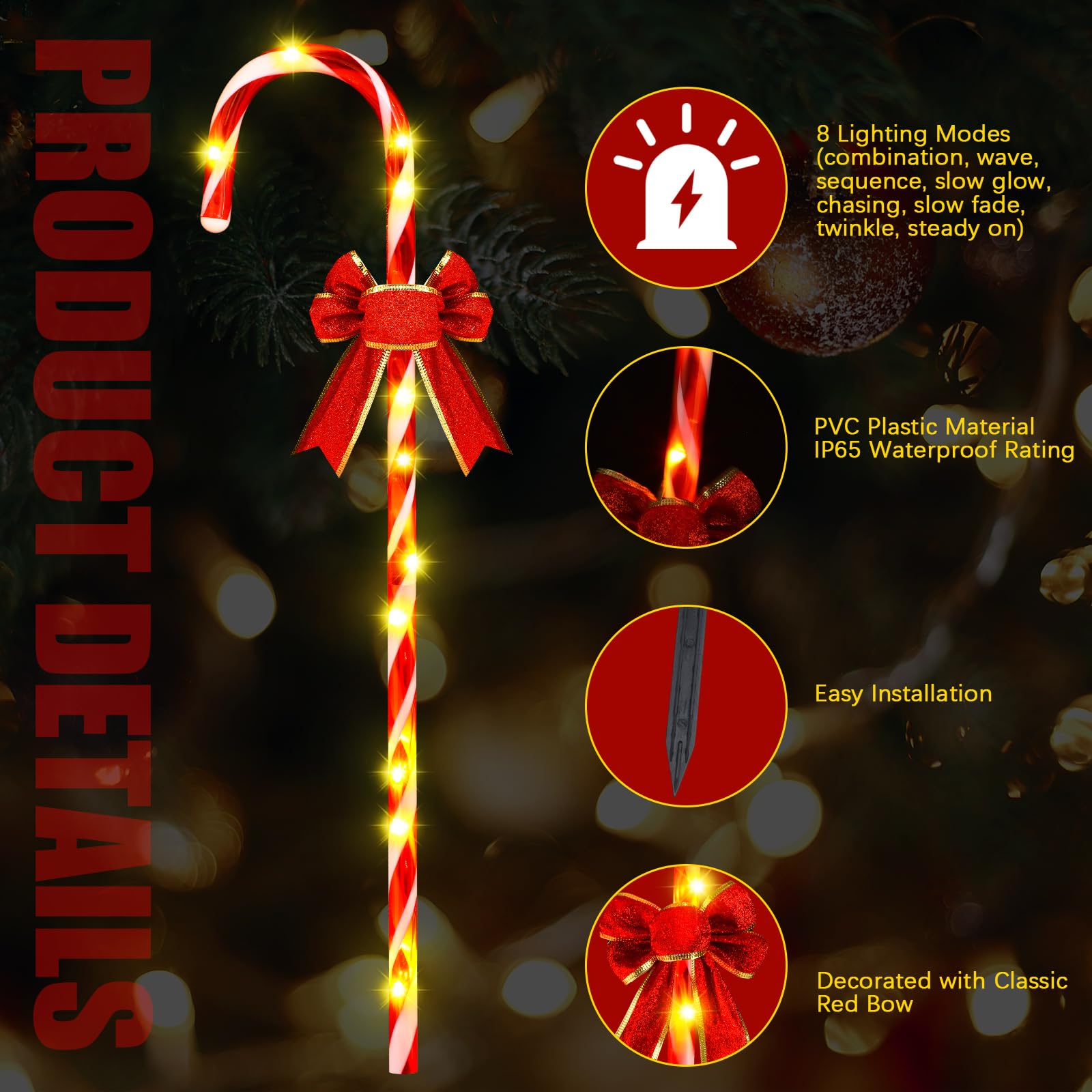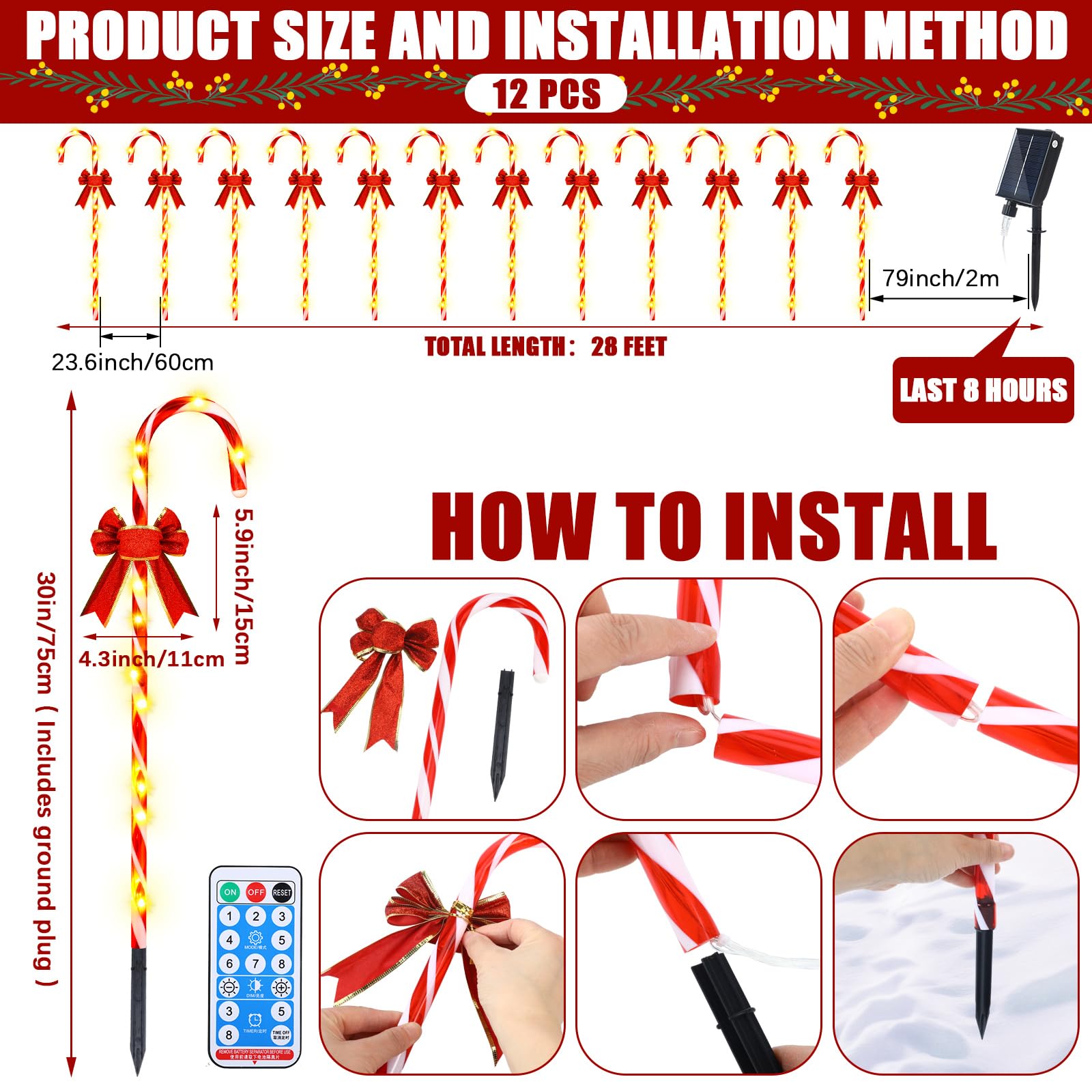 VIHOSE 12 Pcs 30" Solar Christmas Candy Cane Lights Pathway Walkway Markers Light with Red Bow Waterproof Garden String Light Decoration with 120 LED Light Xmas Patio Yard Lawn Driveway