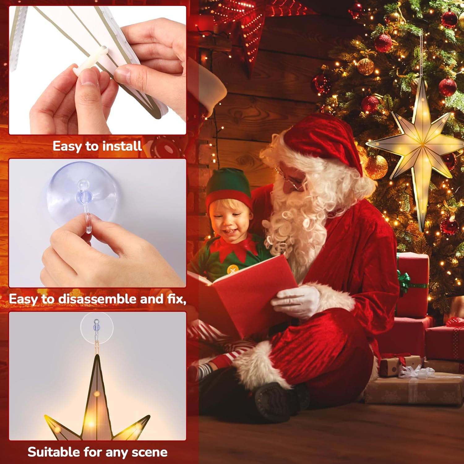 VIHOSE 17'' Bethlehem Star Christmas Light Christmas Silhouette Window Light LED Bethlehem Star Christmas Tree Wreath Decorations Accessories Hanging Ornaments for Home Yard Wall Outdoor