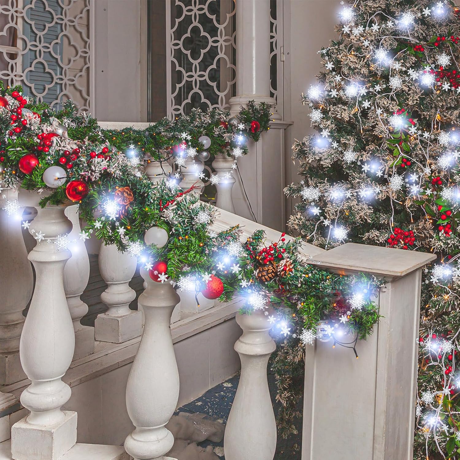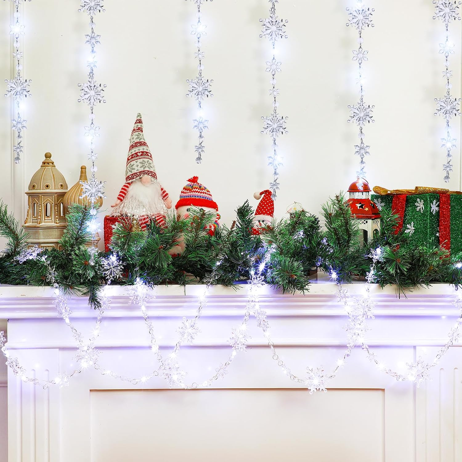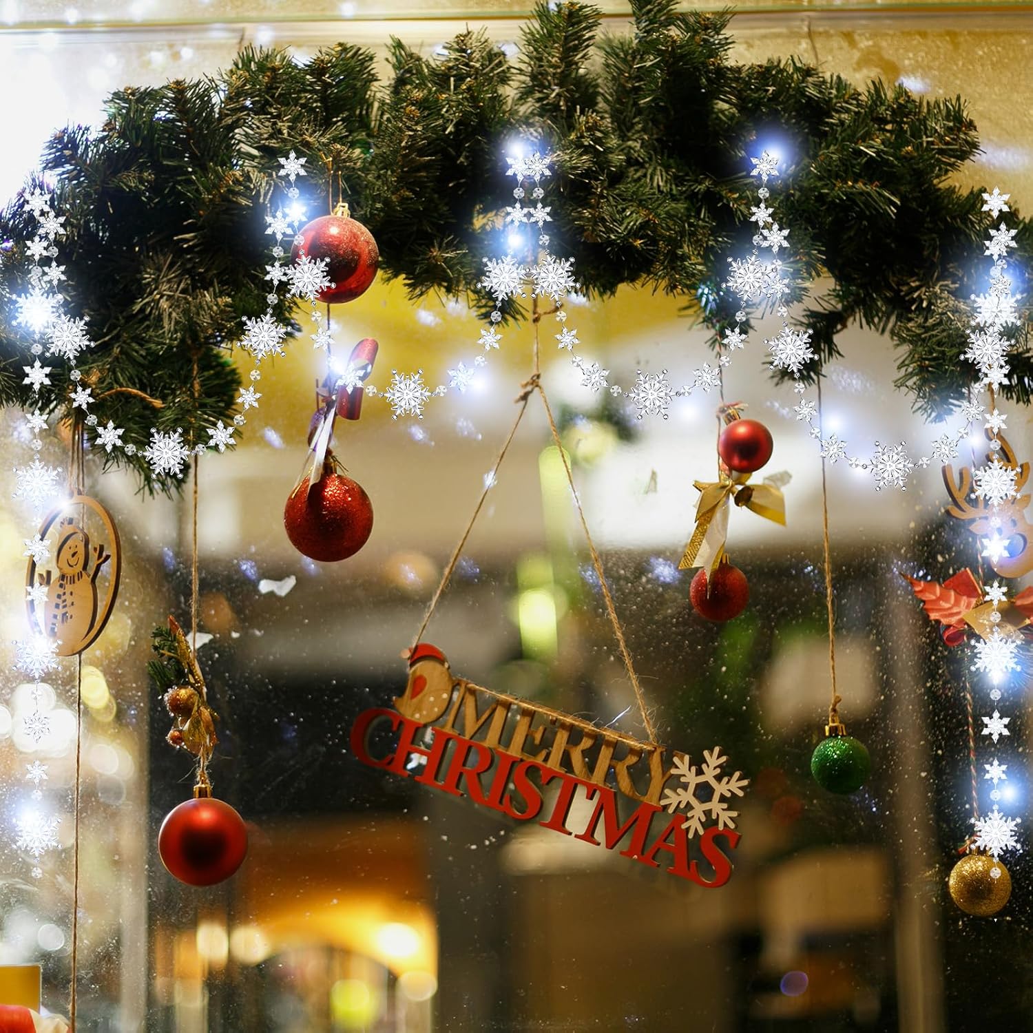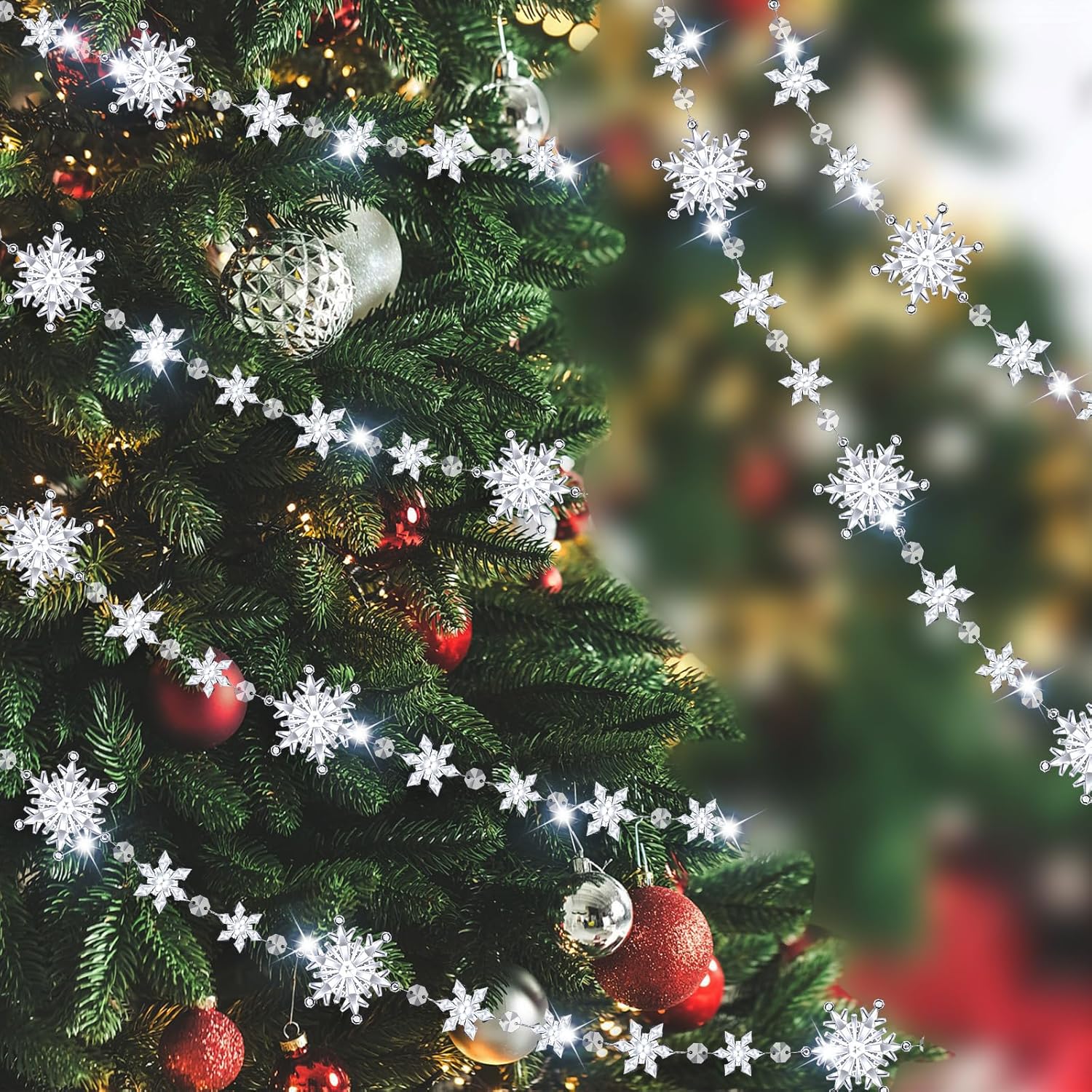 VIHOSE 2 Pcs 20ft Snowflake Lighted Garland Christmas Decorations Hanging Snowflake Decorations Crystal Garland Acrylic Xmas Snowflake Garland with Lights for Winter Holiday Decor (Cold Light)