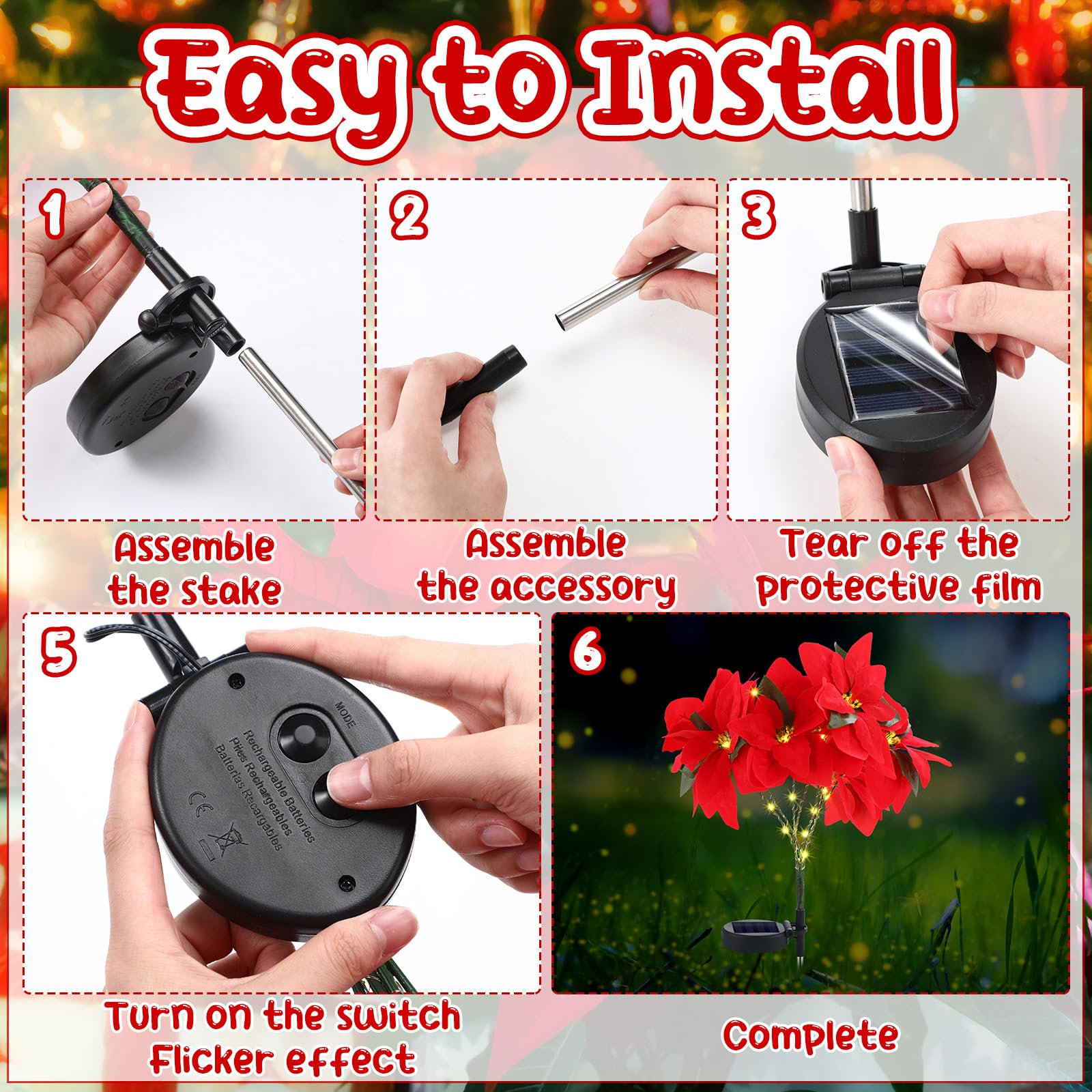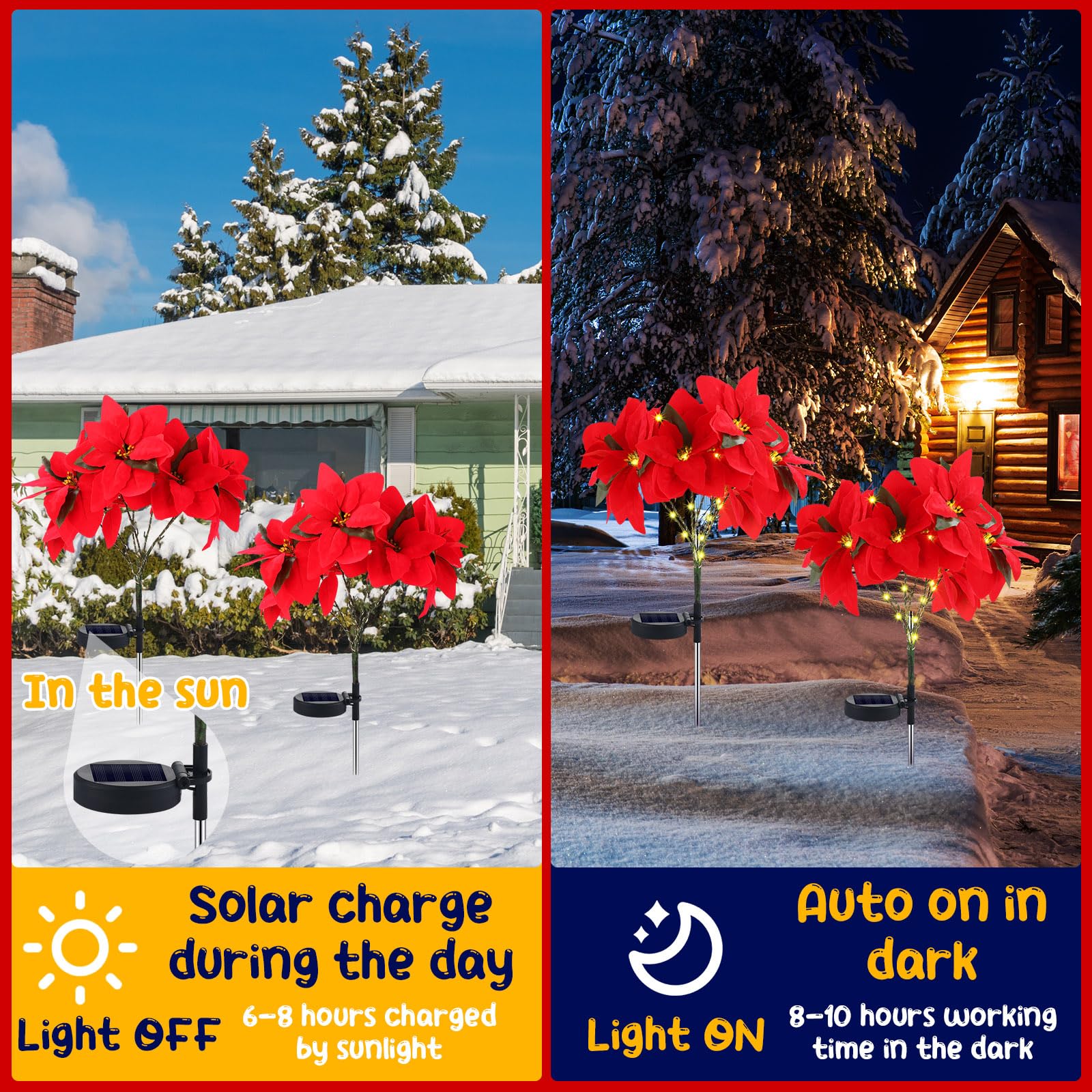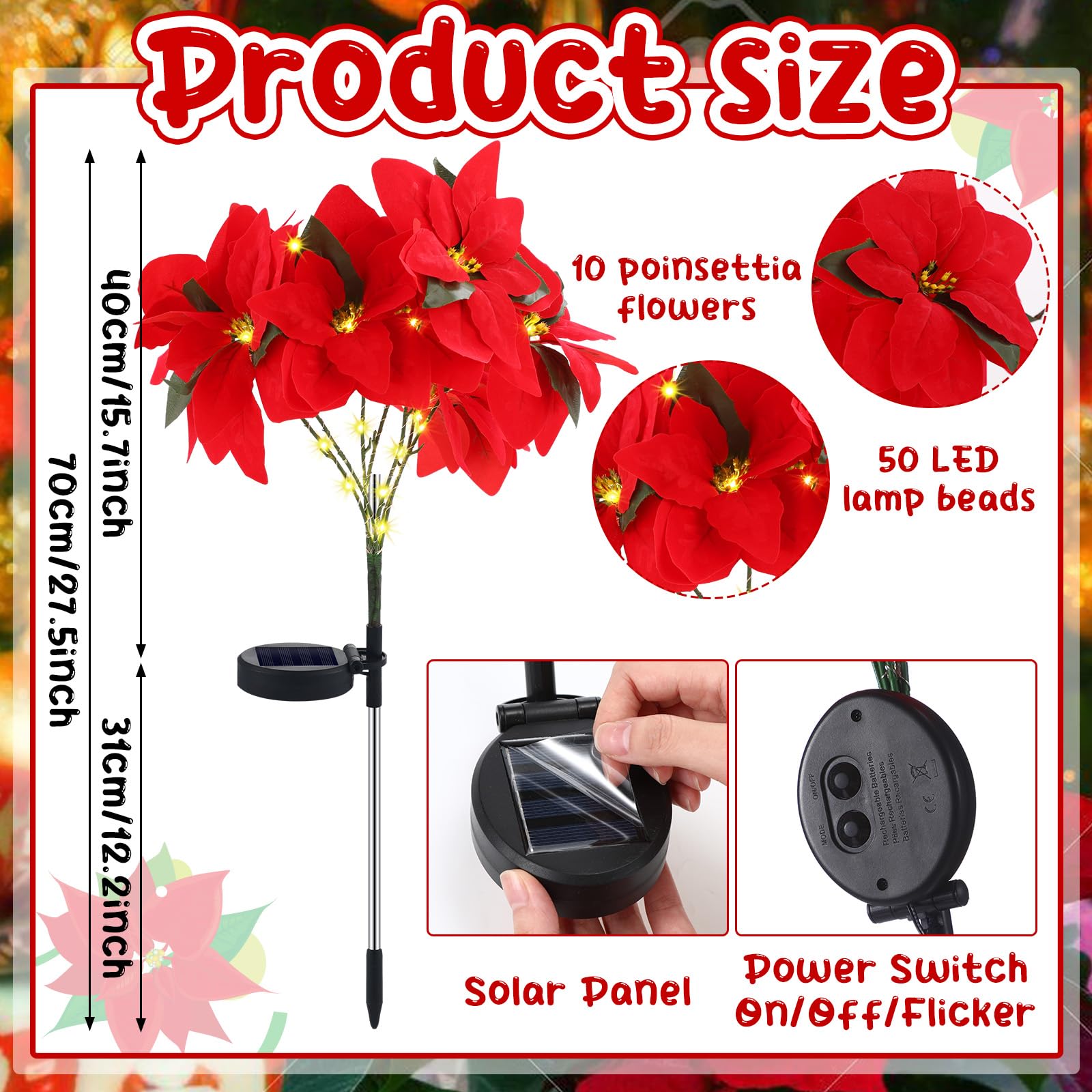 VIHOSE 2 Pcs Christmas Solar Flowers Lights Artificial Poinsettia Flower Landscape Light Waterproof Solar Poinsettia Lights for Outdoor House Yard Lawn Patio Garden Pathway Christmas Party Supplies