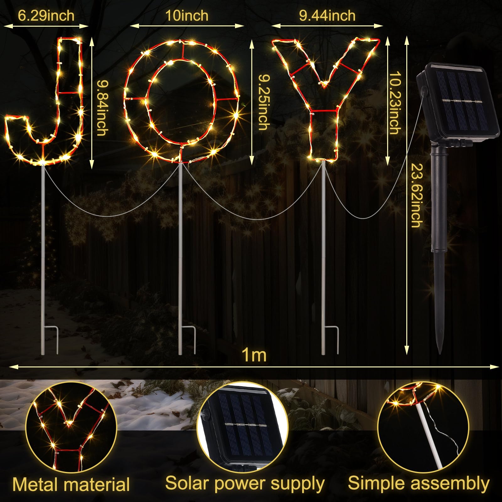 VIHOSE 3 Pcs Solar Christmas Joy Nativity Lighted Decorations Metal Joy Letters Outdoor Solar Stake Christmas Decorations Yard Joy Lighted Sign for Holiday Xmas Garden Church Eve Party Night Decor