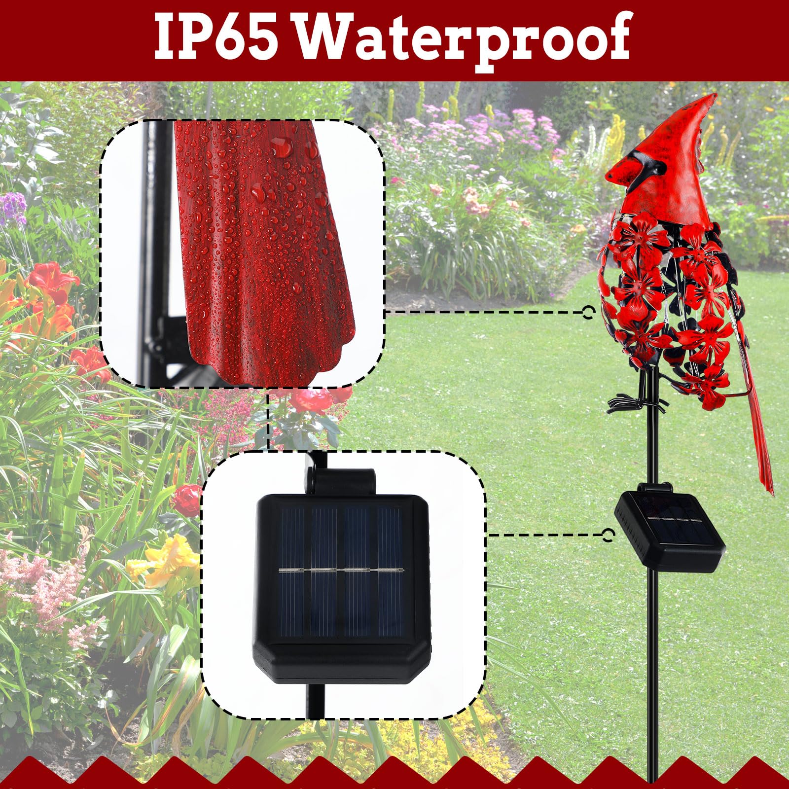 • Realistic Design: this lifelike cardinal solar outdoor light is made of iron, painted with bright colors, making the yard look more vibrant, the body of the cardinal decorative garden stake is composed of flowers, which light up from the inside, emitting colorful light and forming beautiful feature lighting, it adds an eye-catching feature to your garden