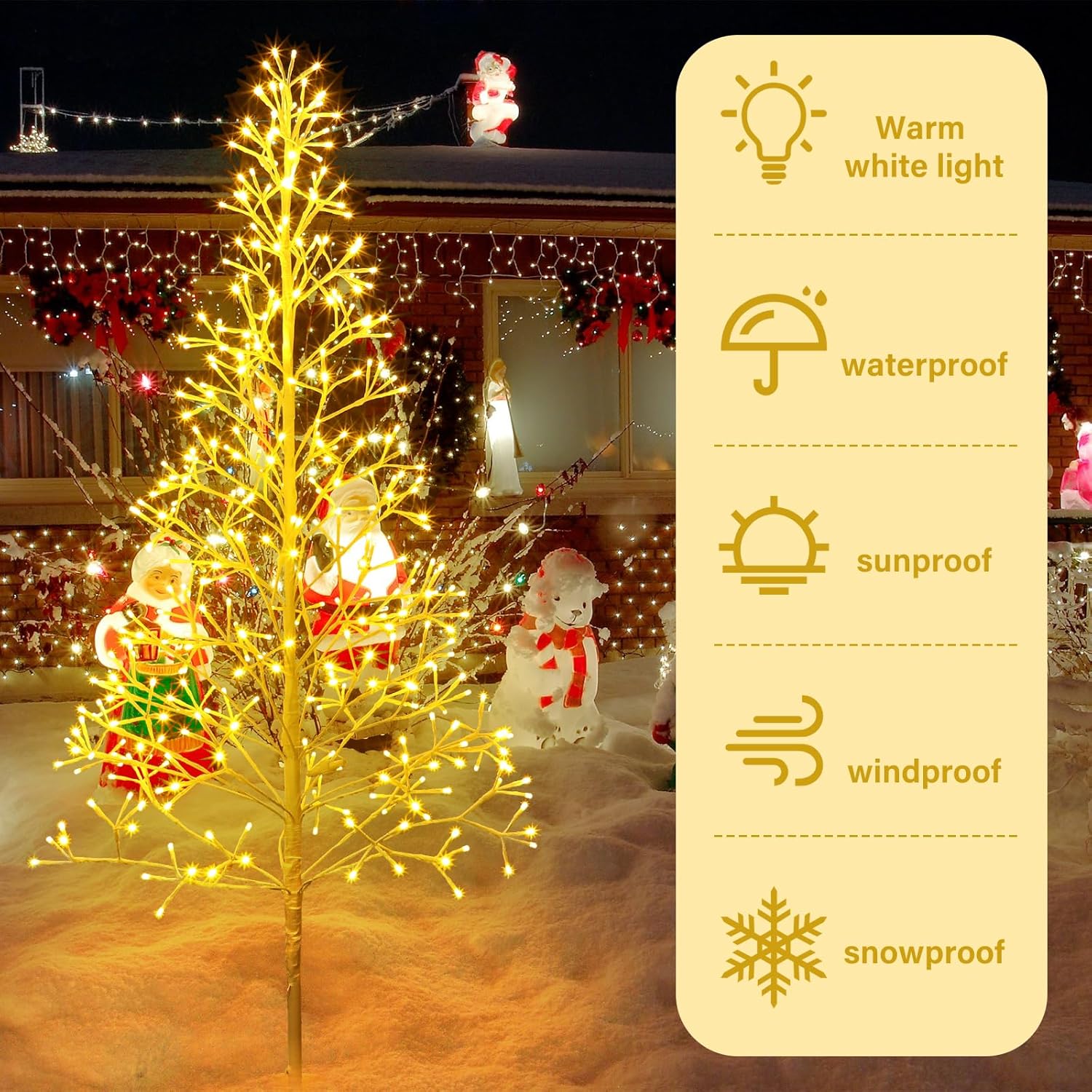 VIHOSE Christmas Lighted Birch Trees Alpine Artificial Christmas Tree Bendable Twig Warm White Lighted Trees Artificial Twig Fairy Light Tree for Home Christmas Party Holiday Decor(5 ft/ 384 LED)