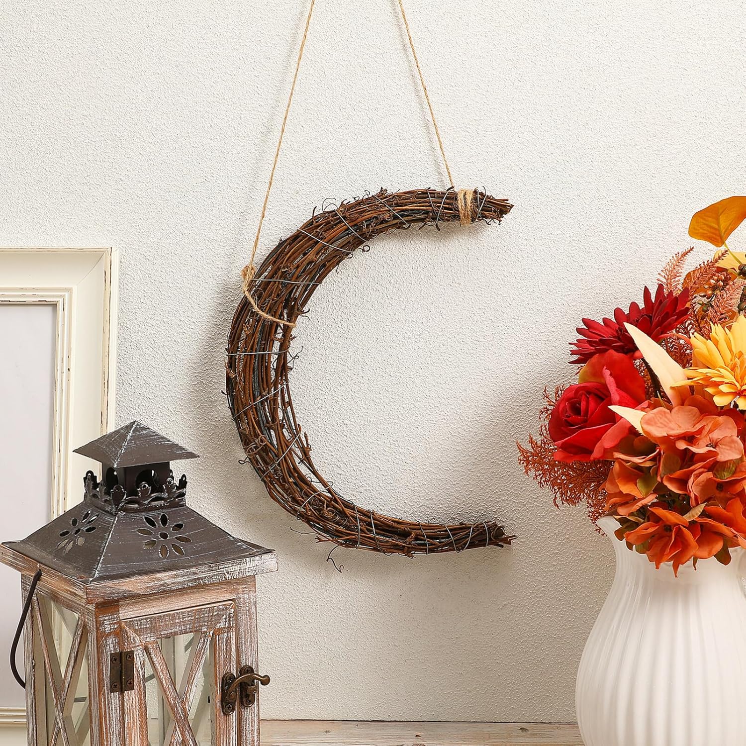 VOSAREA 2pcs Christmas Rattan Wreath Frames Natural Rattan Wreath Moon Shape Rattan Wreath Handmade DIY Rattan Rings Vine Branch Wreath for DIY Crafts Christmas Decorations Wedding Decorations