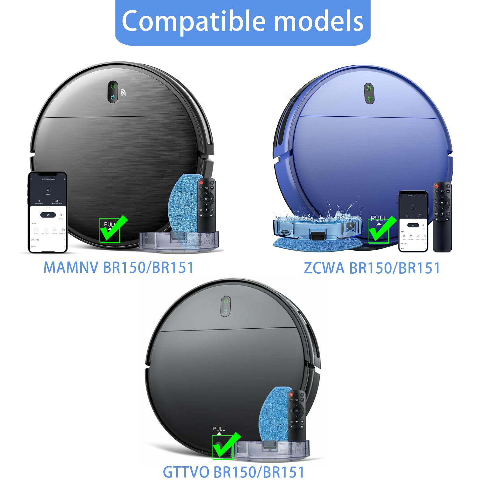 Vvhooy Parts Compatible With Mamnv Br150 Br151, Br150 Br151, Gttvo Br150Br151 Robot Vacuum, Robot Vacuum Accessories Kits 2 Hepa Filters 2 Mop Pads 4 Side Brushes