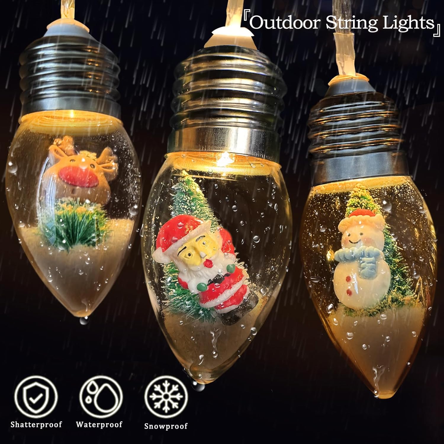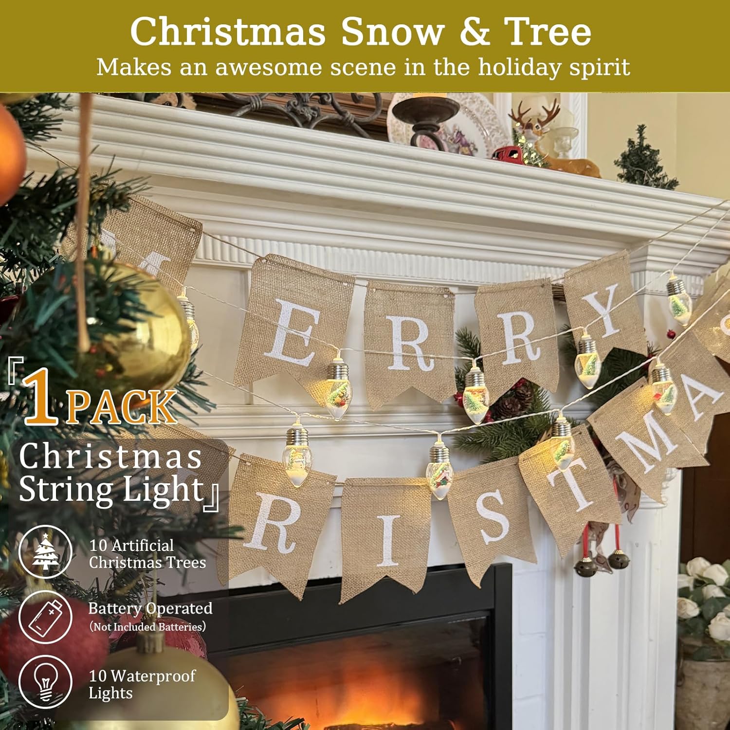 VVolf Christmas Lights for Indoor, Snow Globe String Lights, Christmas Snow Globes with 10LED Globe Bulbs String Light with Tree& Snow & Cute Ornaments for Home Decor