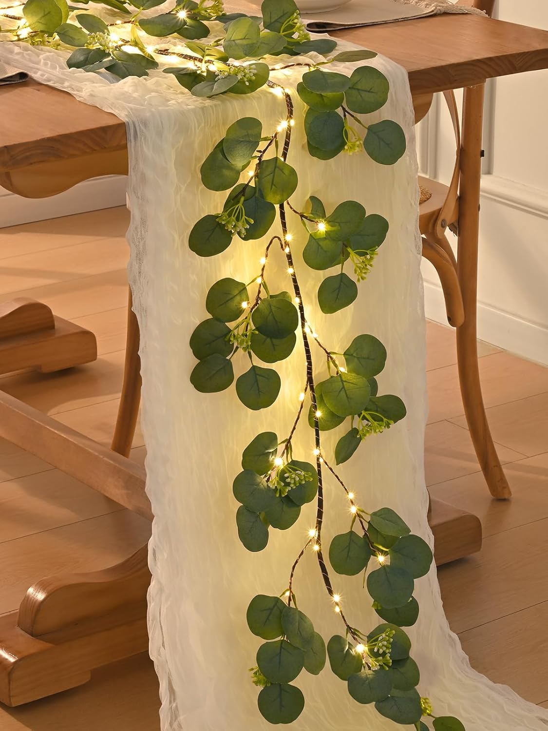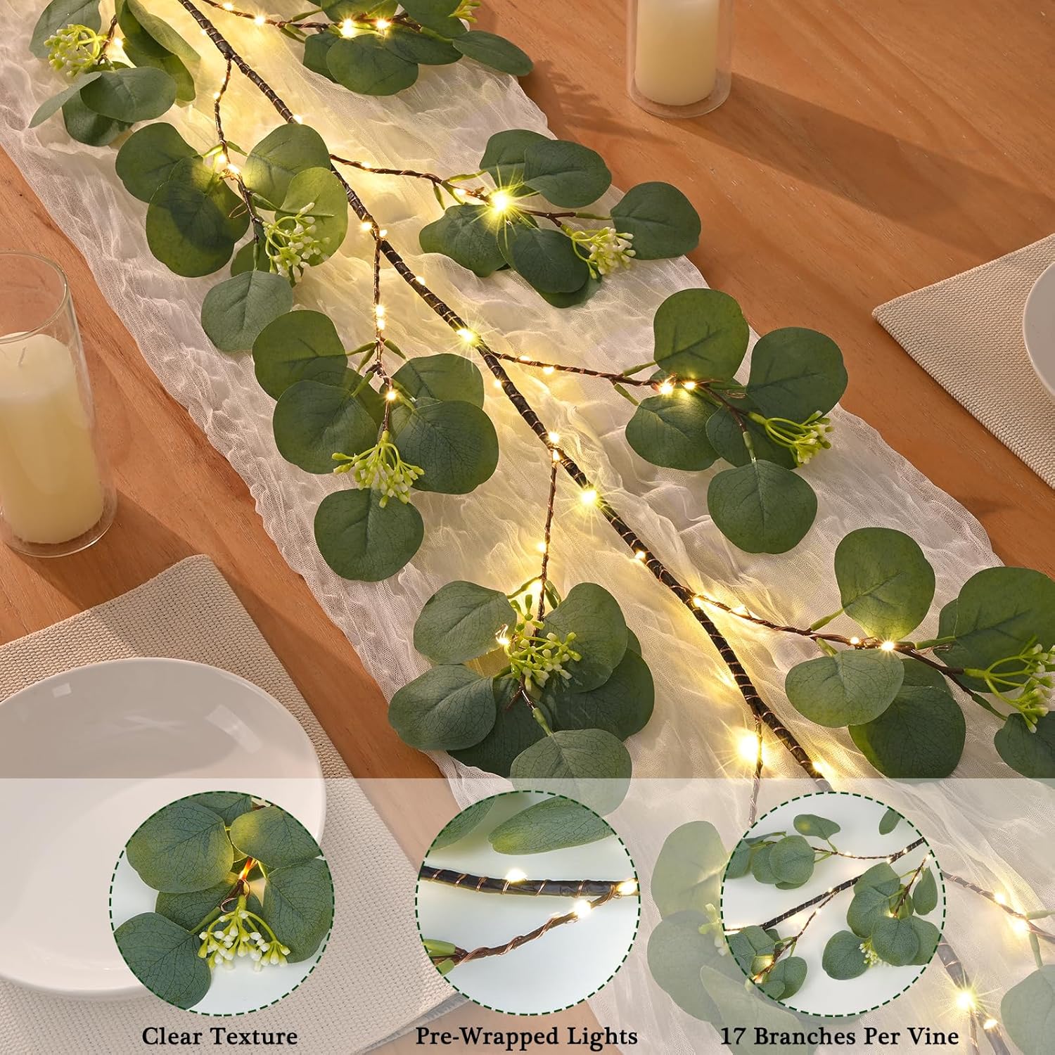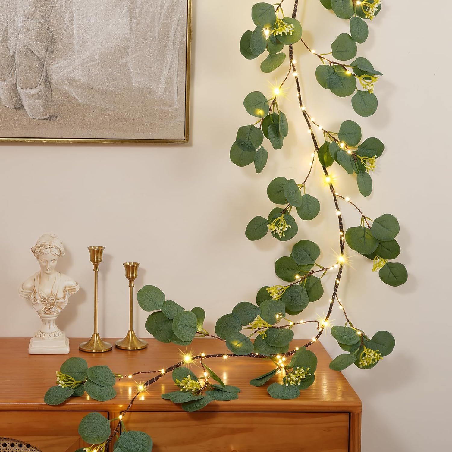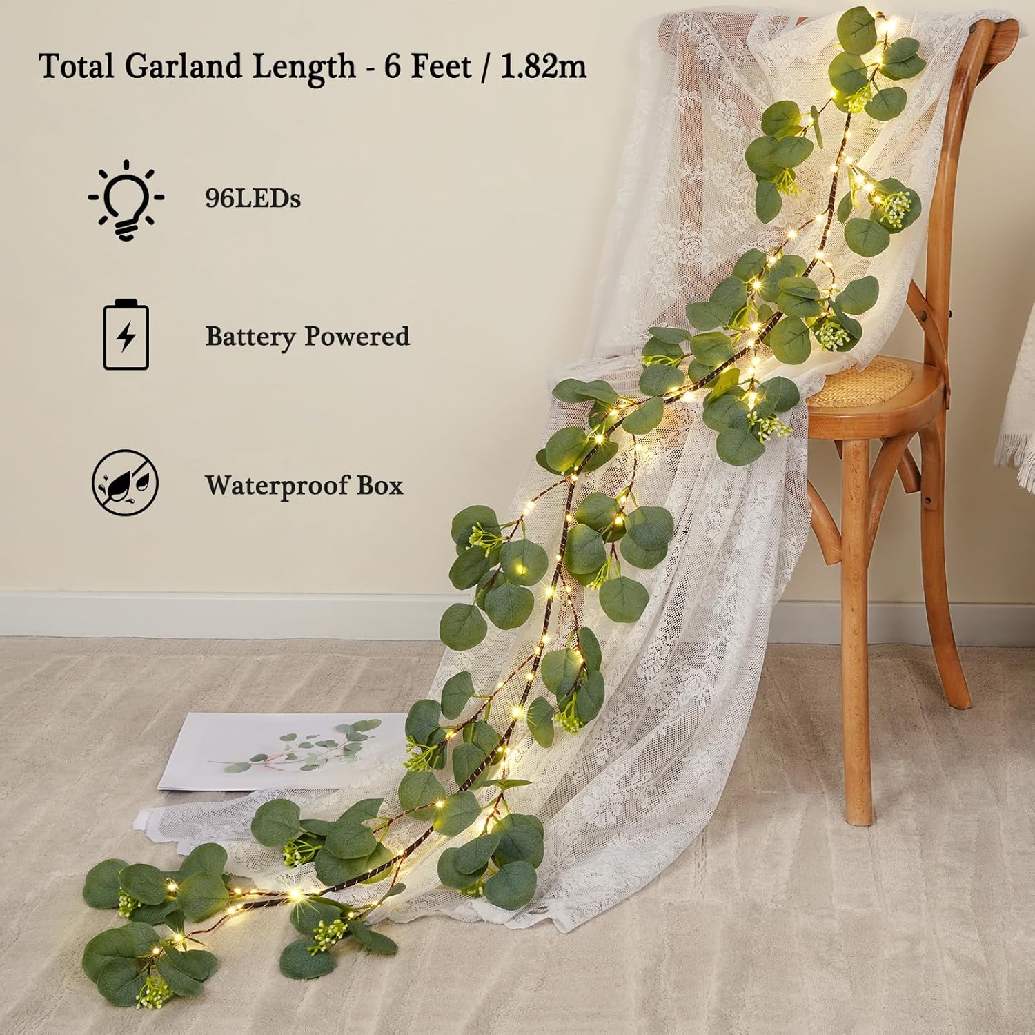 Waipfaru Christmas Decoration Indoor - 6FT Eucalyptus Garland with Timer, Artificial Christmas Greenery Cedar Tree Garland for Mantle Fireplace Outdoor Xmas Decor (Eucalyptus)