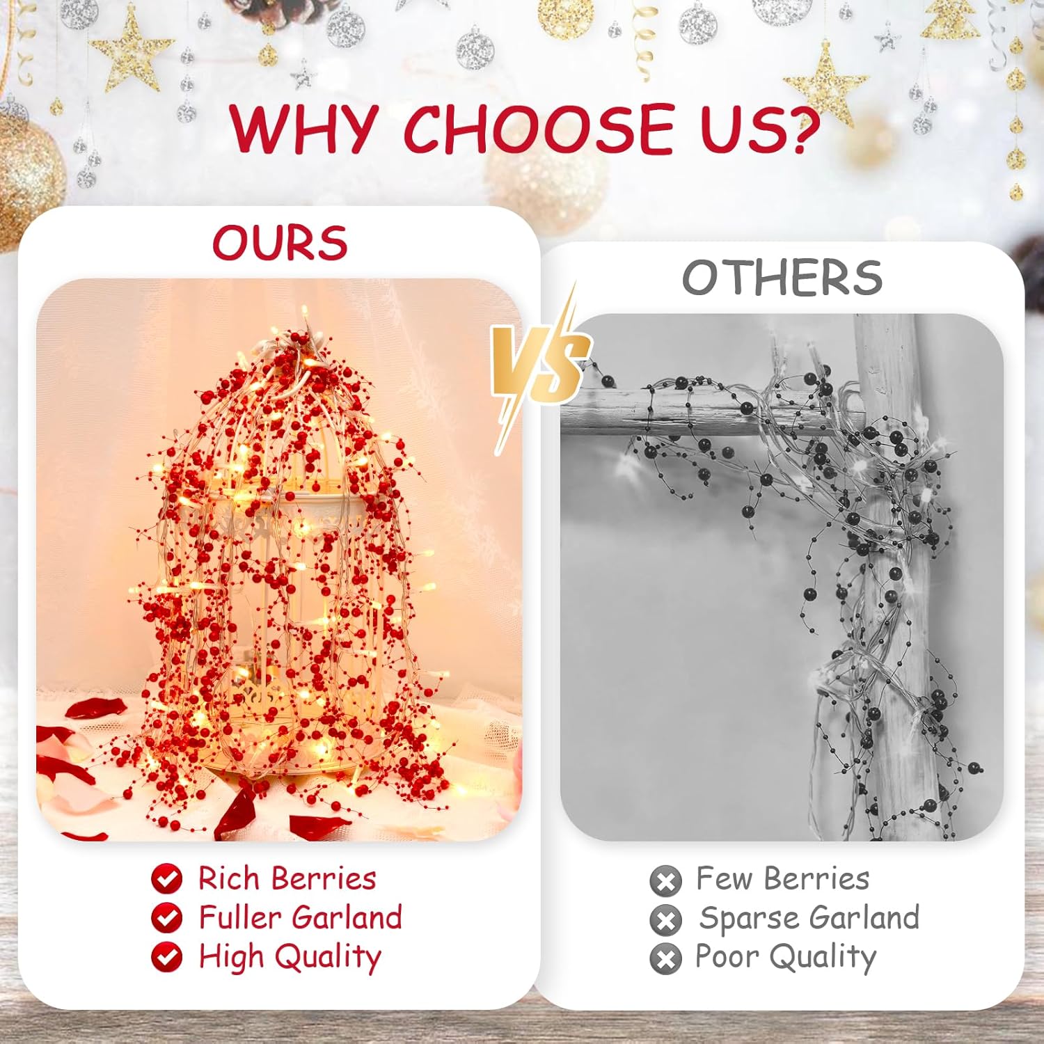 Waipfaru Christmas Garland with Lights, Lighted Berry Garland, 13.1FT Christmas Tree Garland, Christmas Decorations Indoor for Home Outdoor Gate Table Fireplace Year Decor, Red