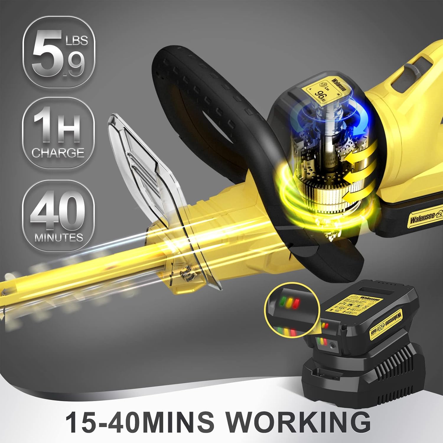 Walensee 20V MAX Cordless Hedge Trimmer, 1400RPM Electric Bush Trimmer w/ 22-Inch Dual-Action Blade, 0.67" Cutting Capacity & 5.9lb Lightweight Shrubbery Trimmer, 2.0Ah Battery & Fast Charger Included