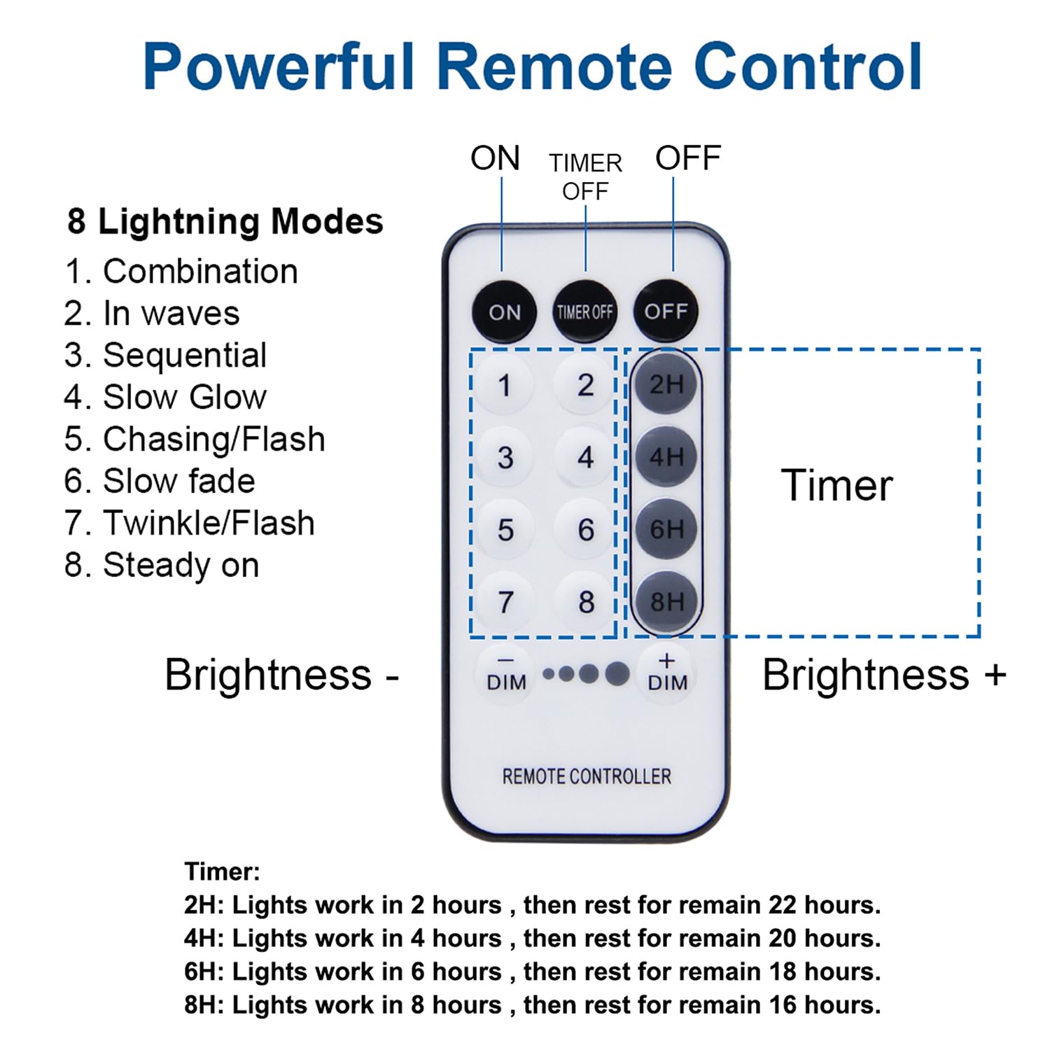 • Remote Control & Timer: With a 17 Keys wireless remote, just press to change the lighting mode according to the different requirements. Comes with 4 kinds of timer(2H: 2 hours ON, 22 hours OFF 4H: 4 hours ON, 20 hours OFF 6H: 6 hours ON, 18 hours OFF 8H: 8 hours ON, 16 hours OFF), if you do not want timer, just press the TIMER OFF via the remote. The remote effective range can reach to 10ft at the longest distance, please aim the remote control at the mode controller(black box)