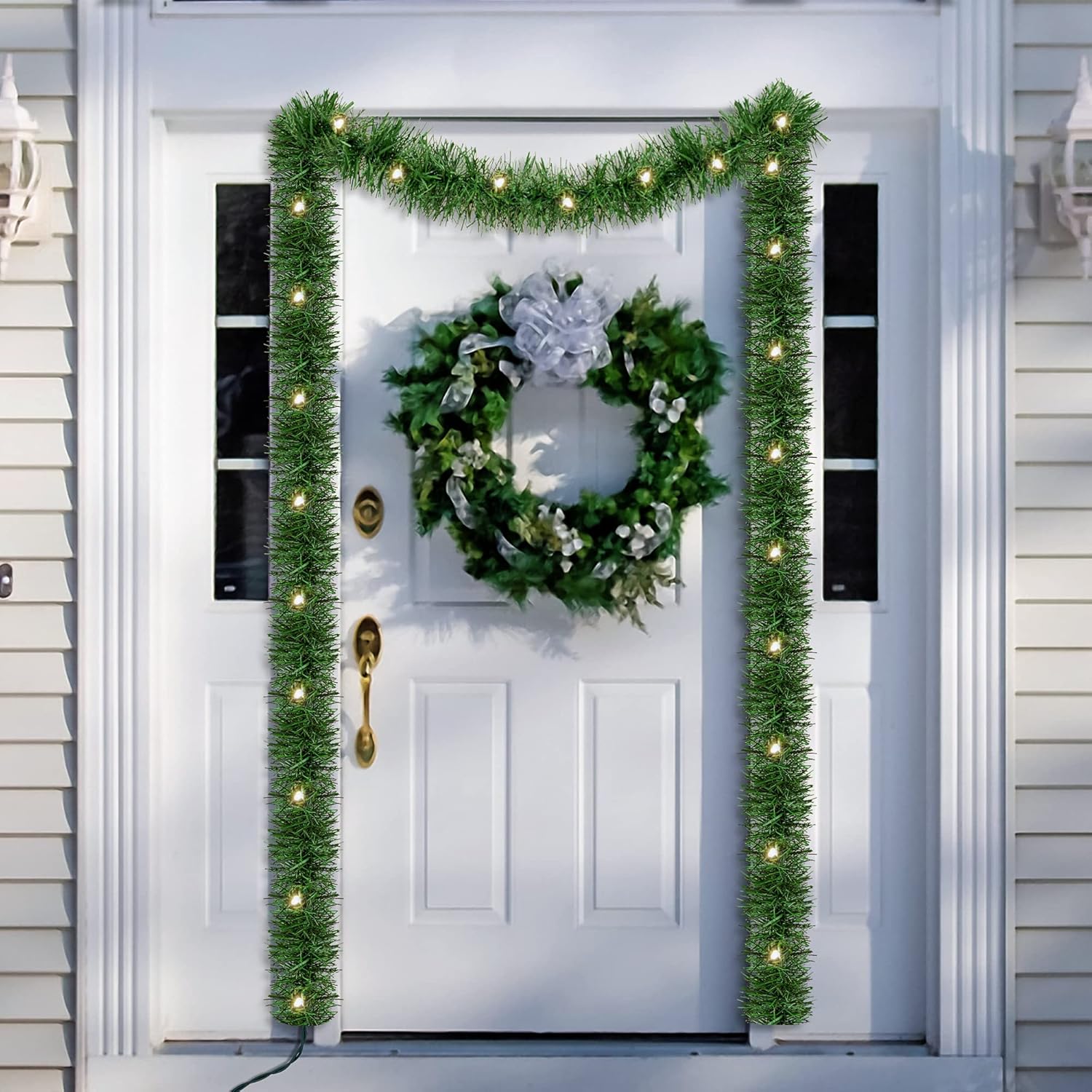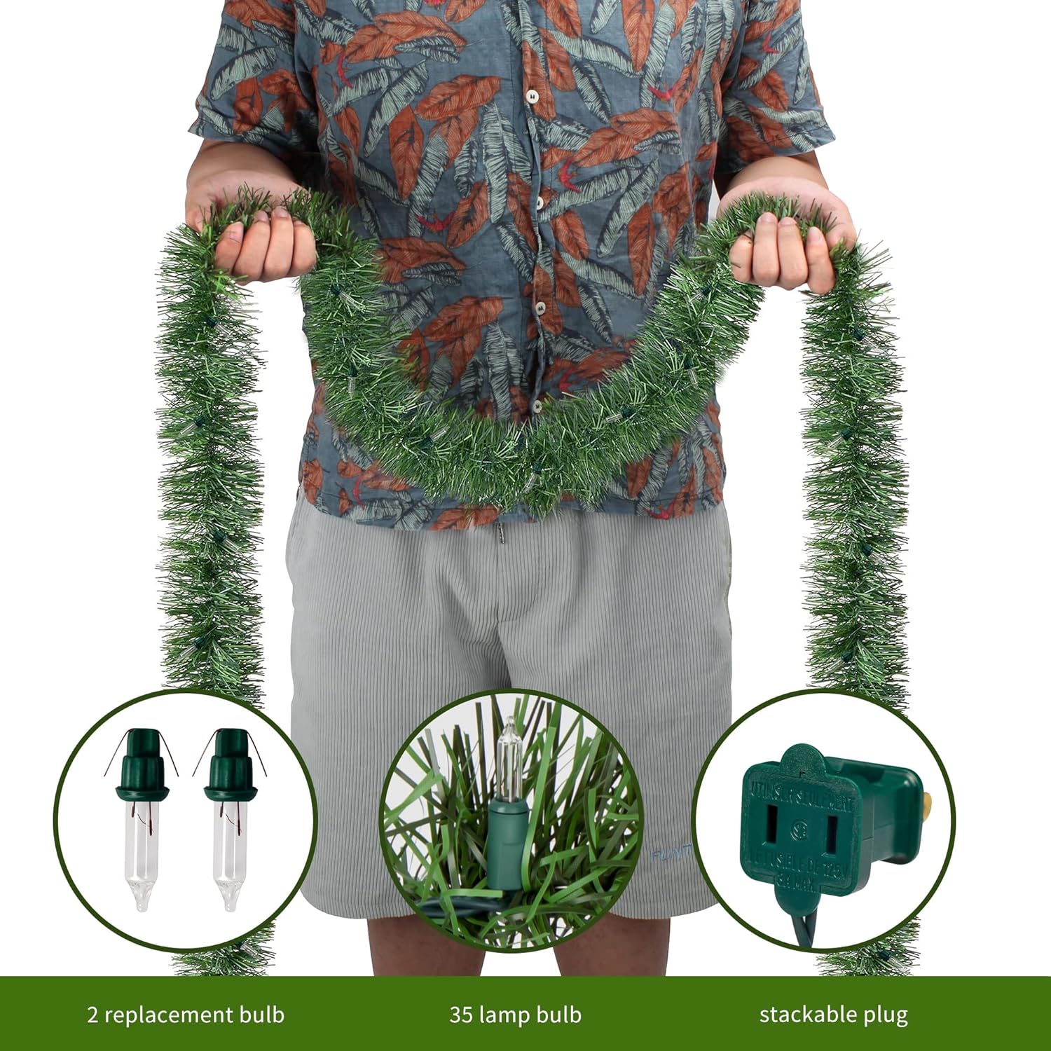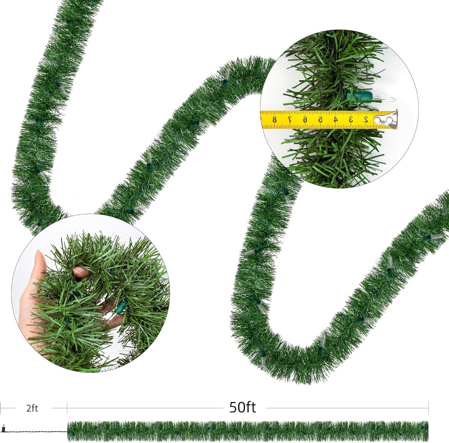 WATERGLIDE 49FT Lighted Christmas Green Garland with 100 Count Clear String Lights, Pre-lit Long Artificial Greenery Garlands, Plug in Holiday Decorative Lights for Indoor Outdoor Decor
