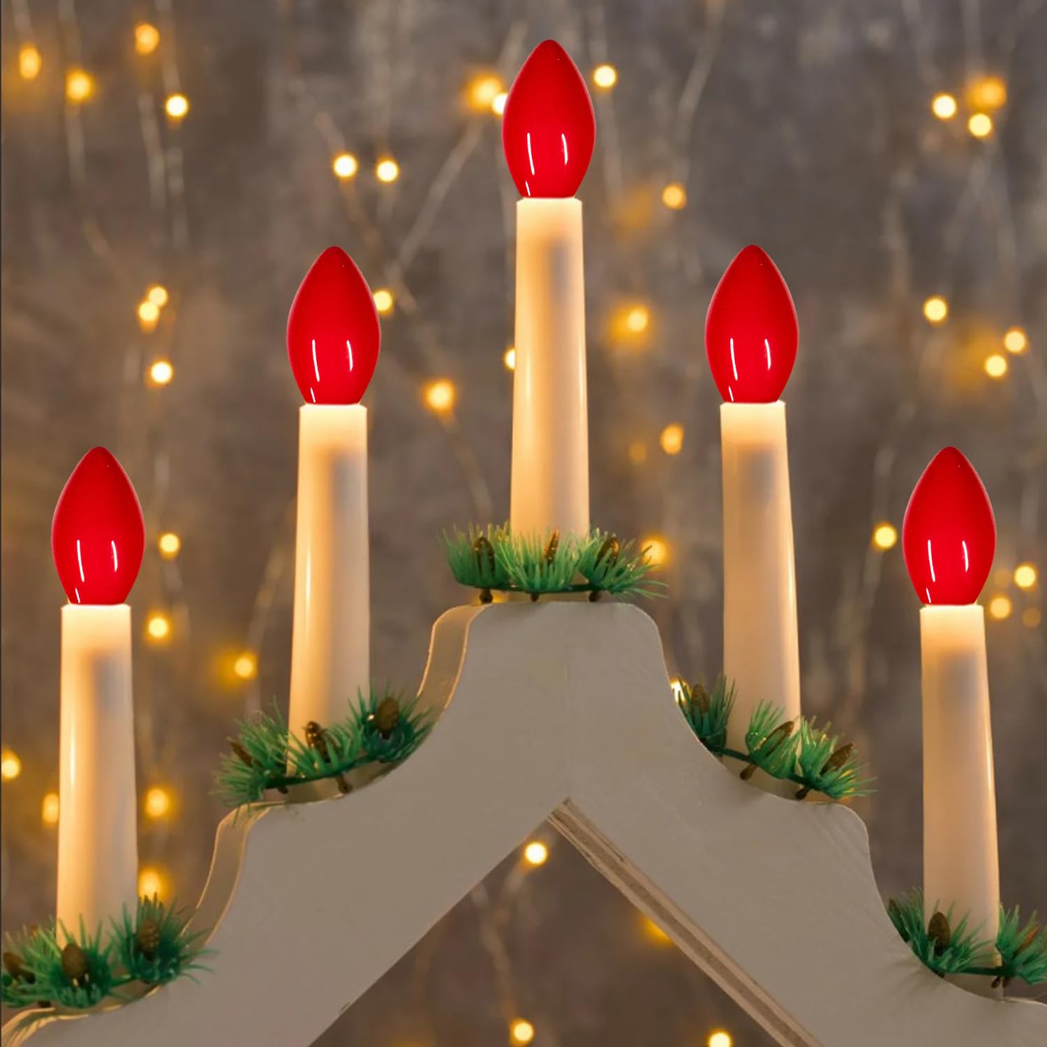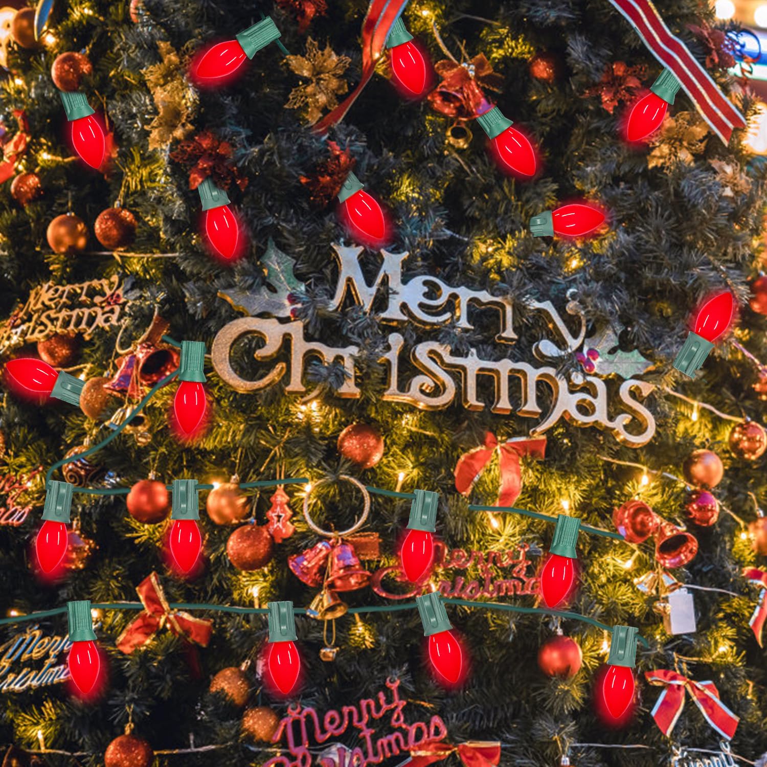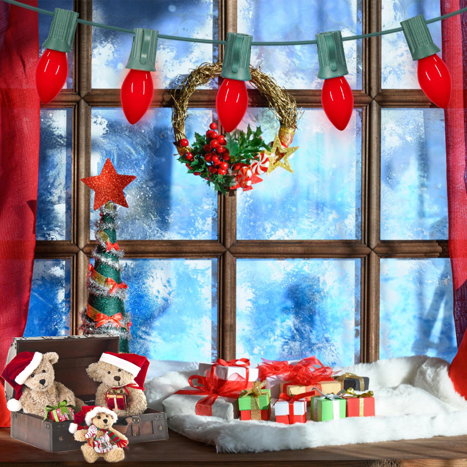 Waterproof UL Red Replacement Bulbs Christmas Tree Light Bulbs for Indoor and Outdoor Decoration with 25 Pack, C7/E12 Base, 5 Watt
