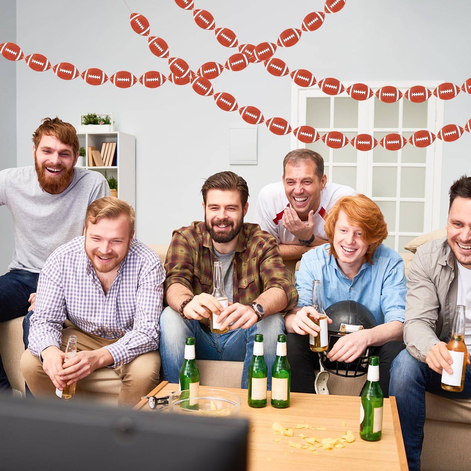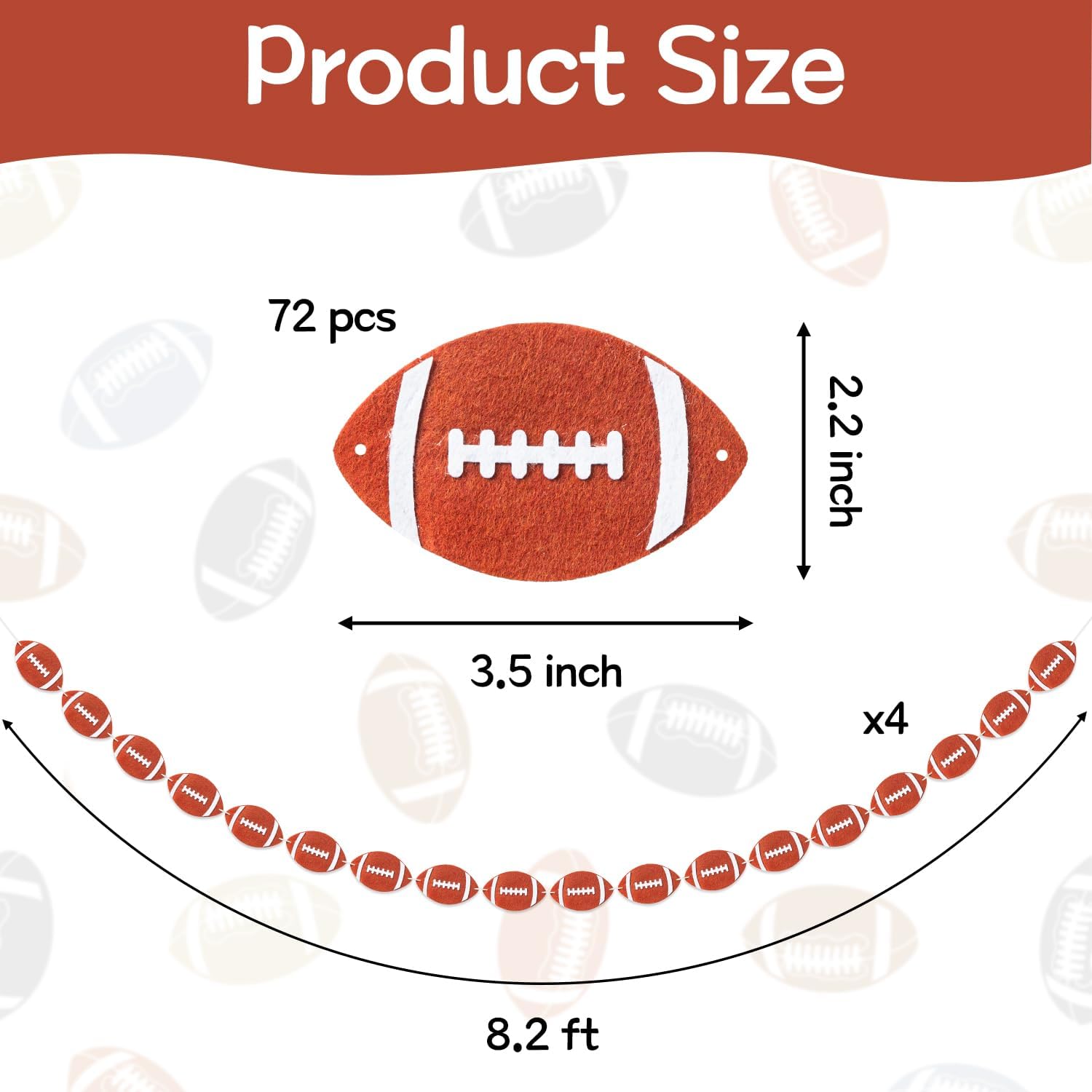 WATINC 4pcs Football Garland Party Decorations, Sports Felt Garlands Decor, Rustic Football Game Day Bunting Banner, Bowl Fans Club Bars Home Decorative Supplies for Fireplace Wall Backdrop Garden