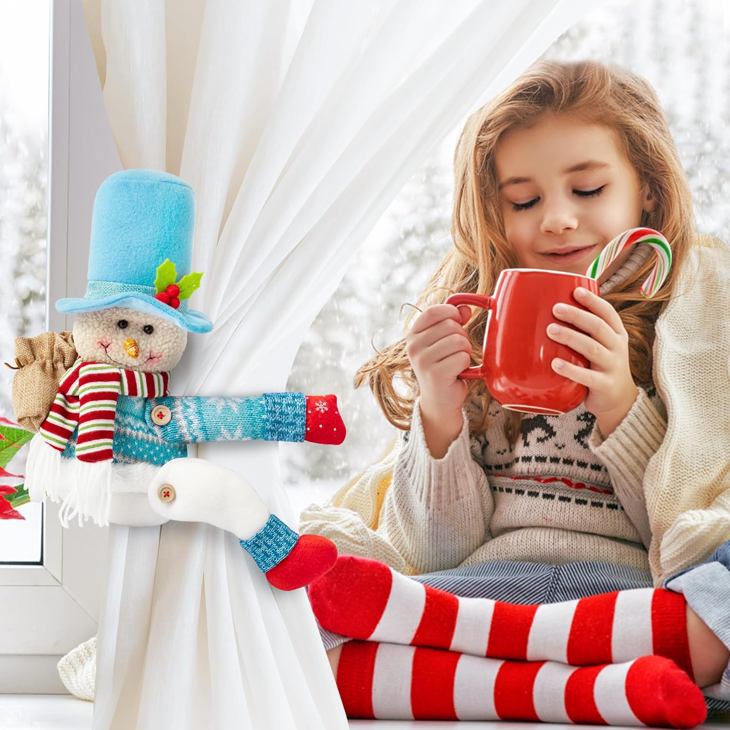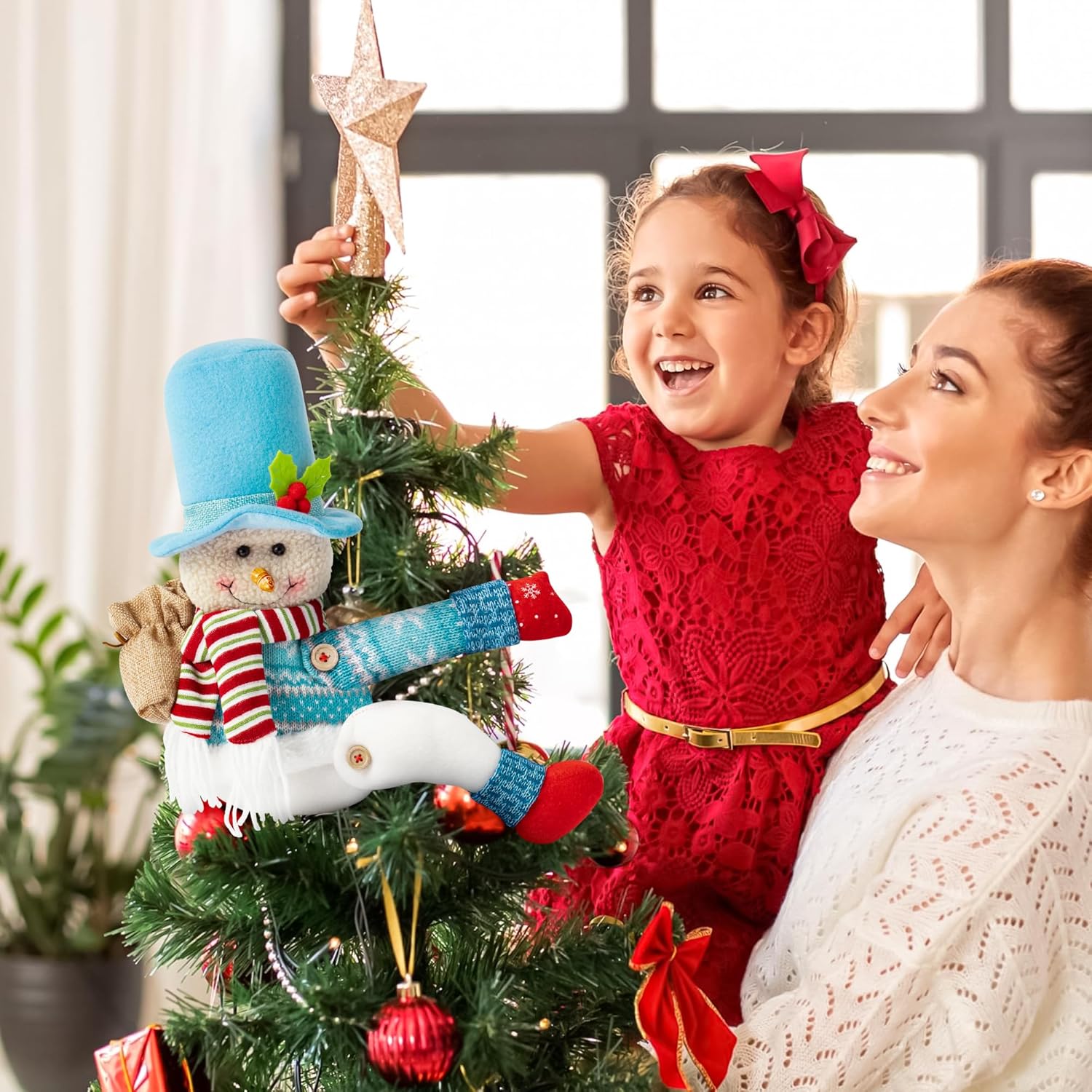WATINC Christmas Tree Topper Snowman - Unique Xmas Santa Tree Topper Decorations, Funny Snowman Hugger Plush Stuffed Decor for Home Festival Holiday Treetop Wine Curtain Wreath Ornament