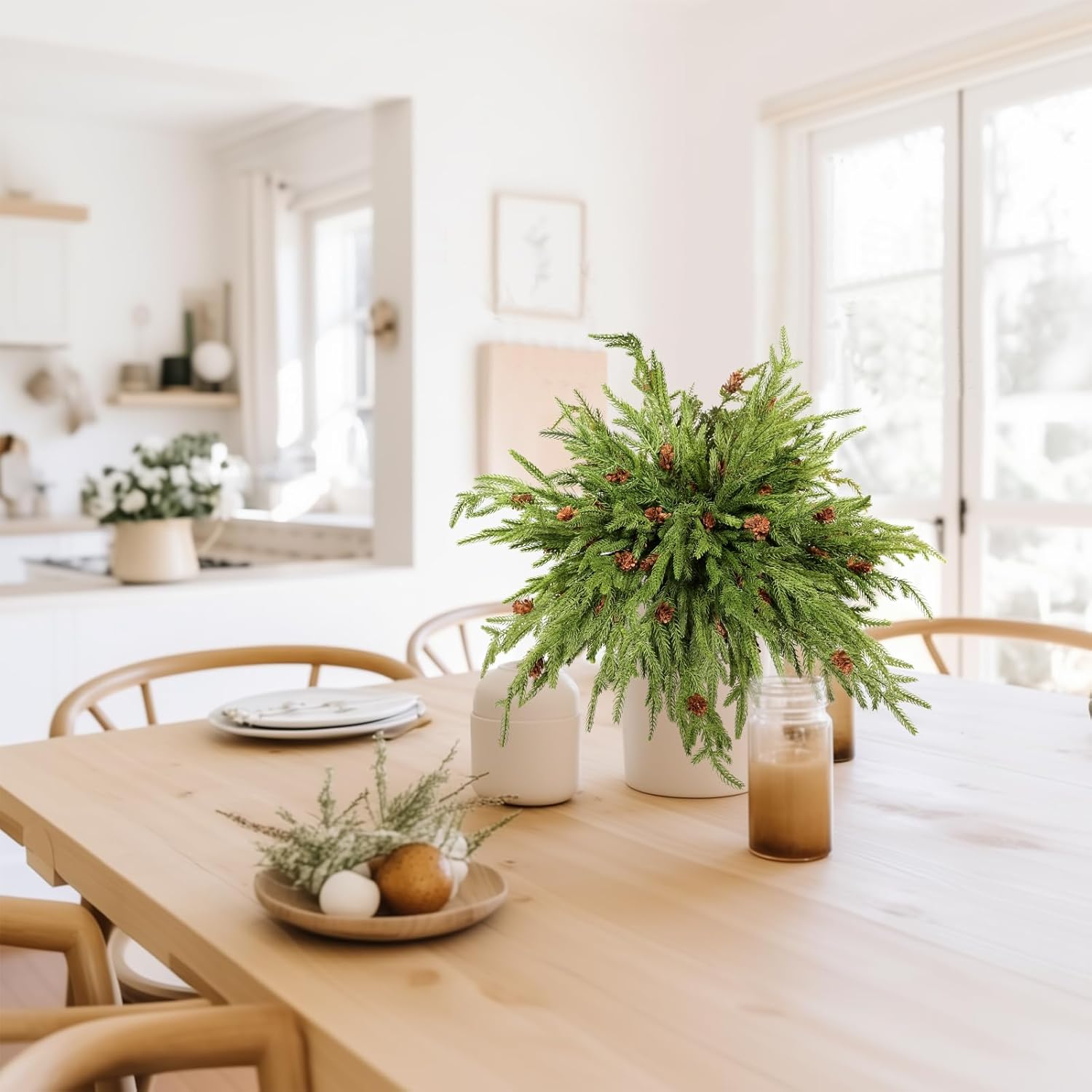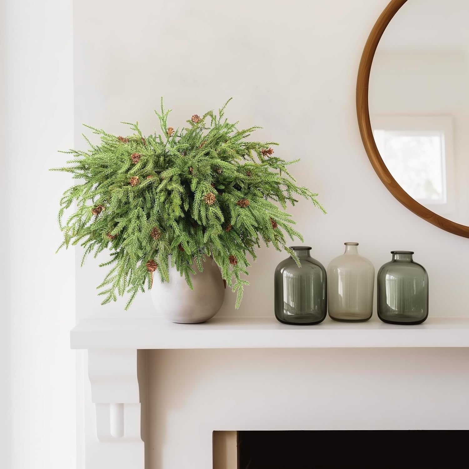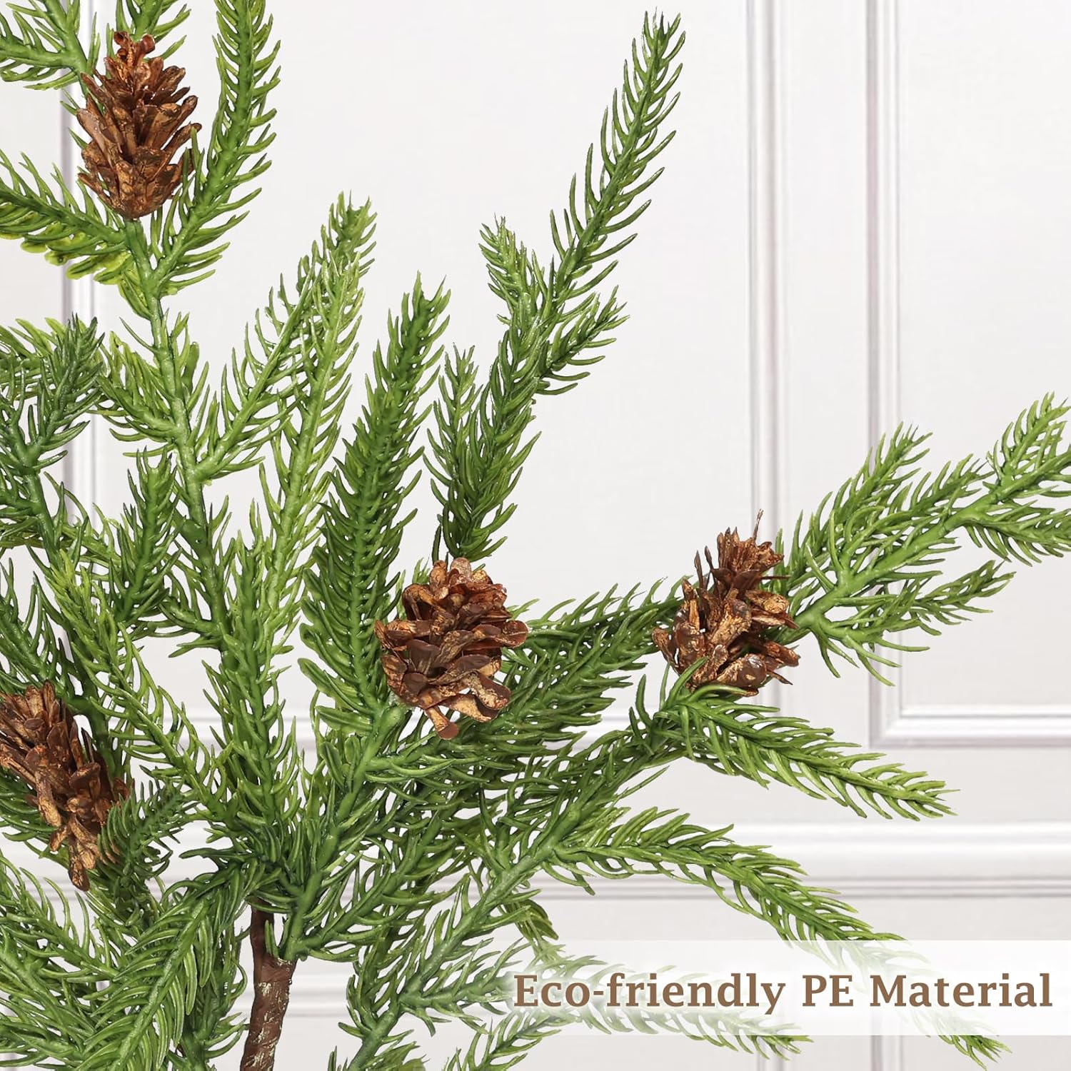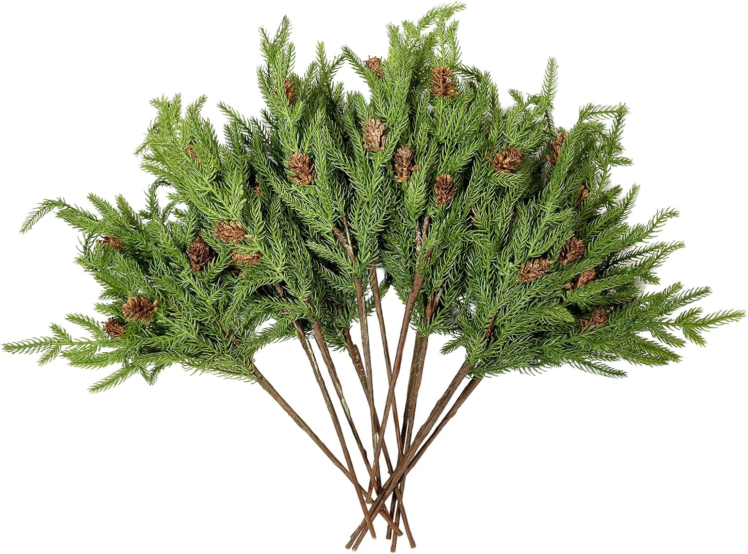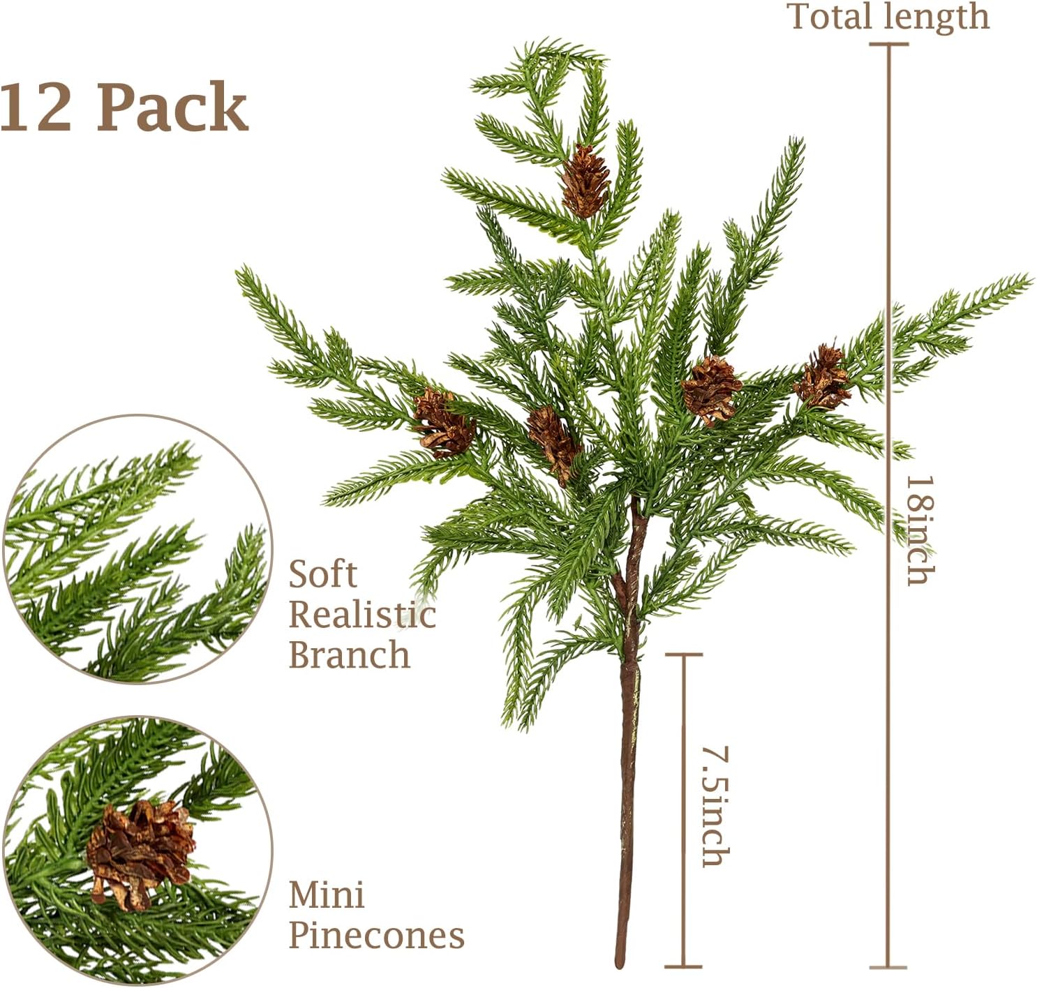WBHome 12 Pcs Christmas Norfolk Pine Branches with Pine Cones - 18" Real Touch Norfolk Pine Branch- Artificial Xmas Branches Plants Pine Needles for DIY Craft Garland Home Garden Decor