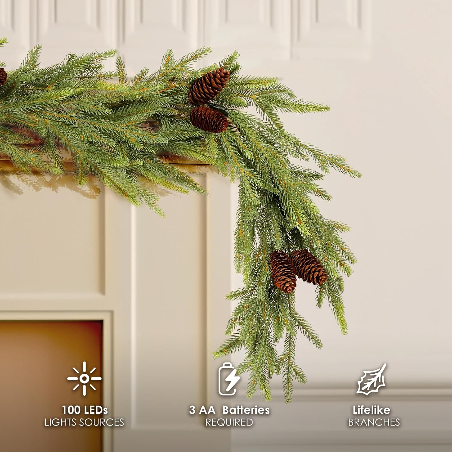 WBHome 6ft Pre-lit Norway Spruce Christmas Garland, Winter Greenery Garland for Christmas with 100 LED Lights, Holiday Seasonal Outdoor/Indoor Home Decor, 6FT Long