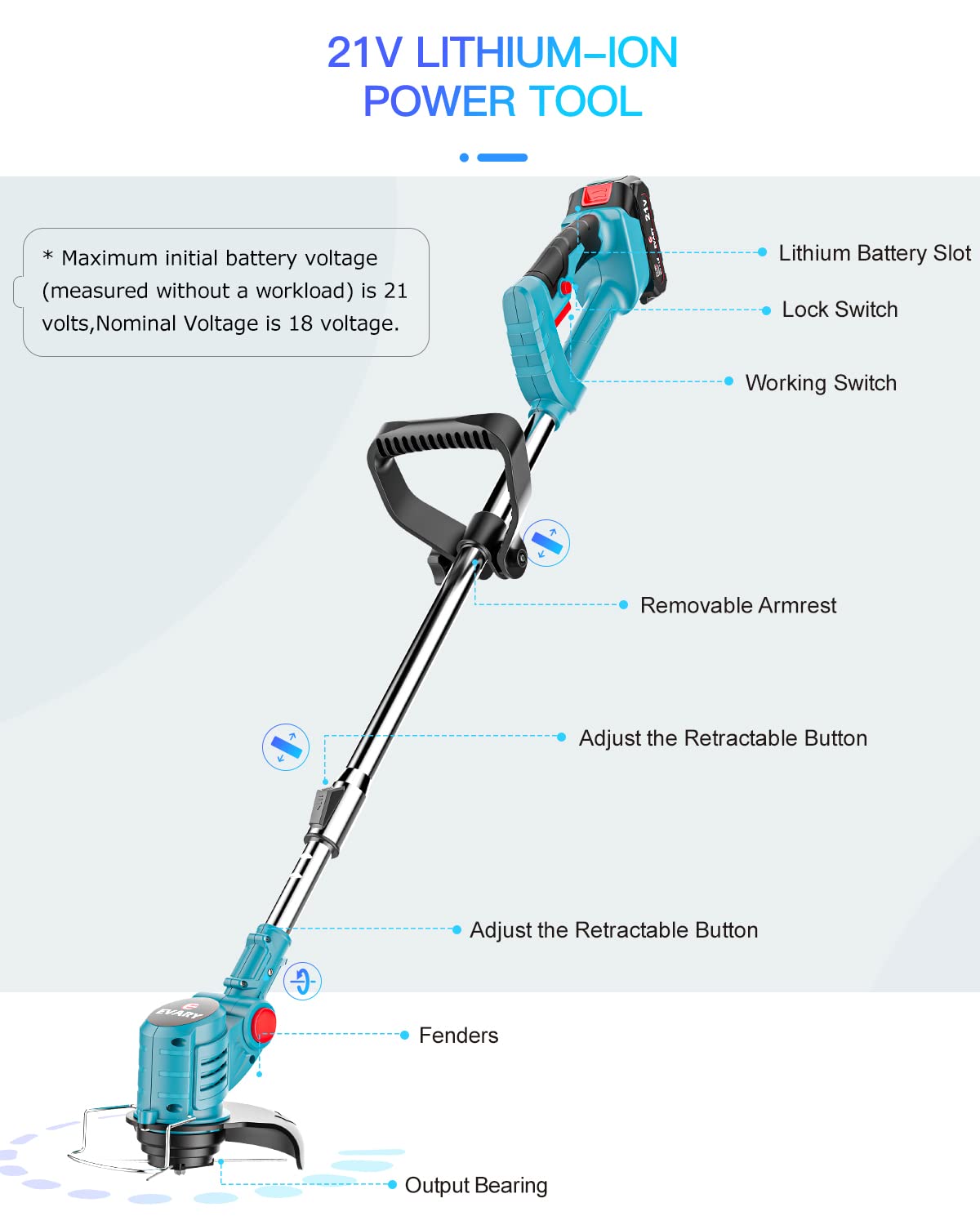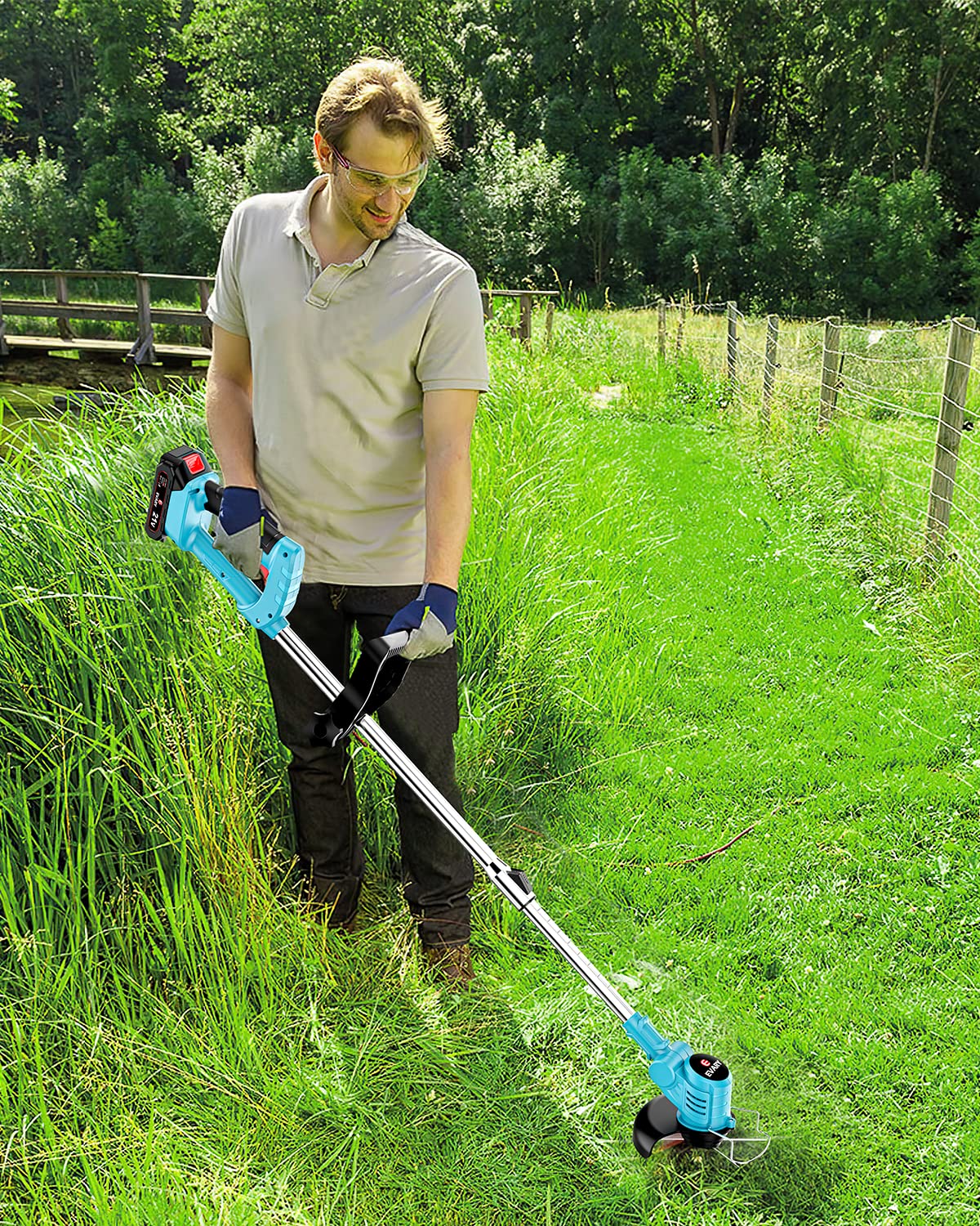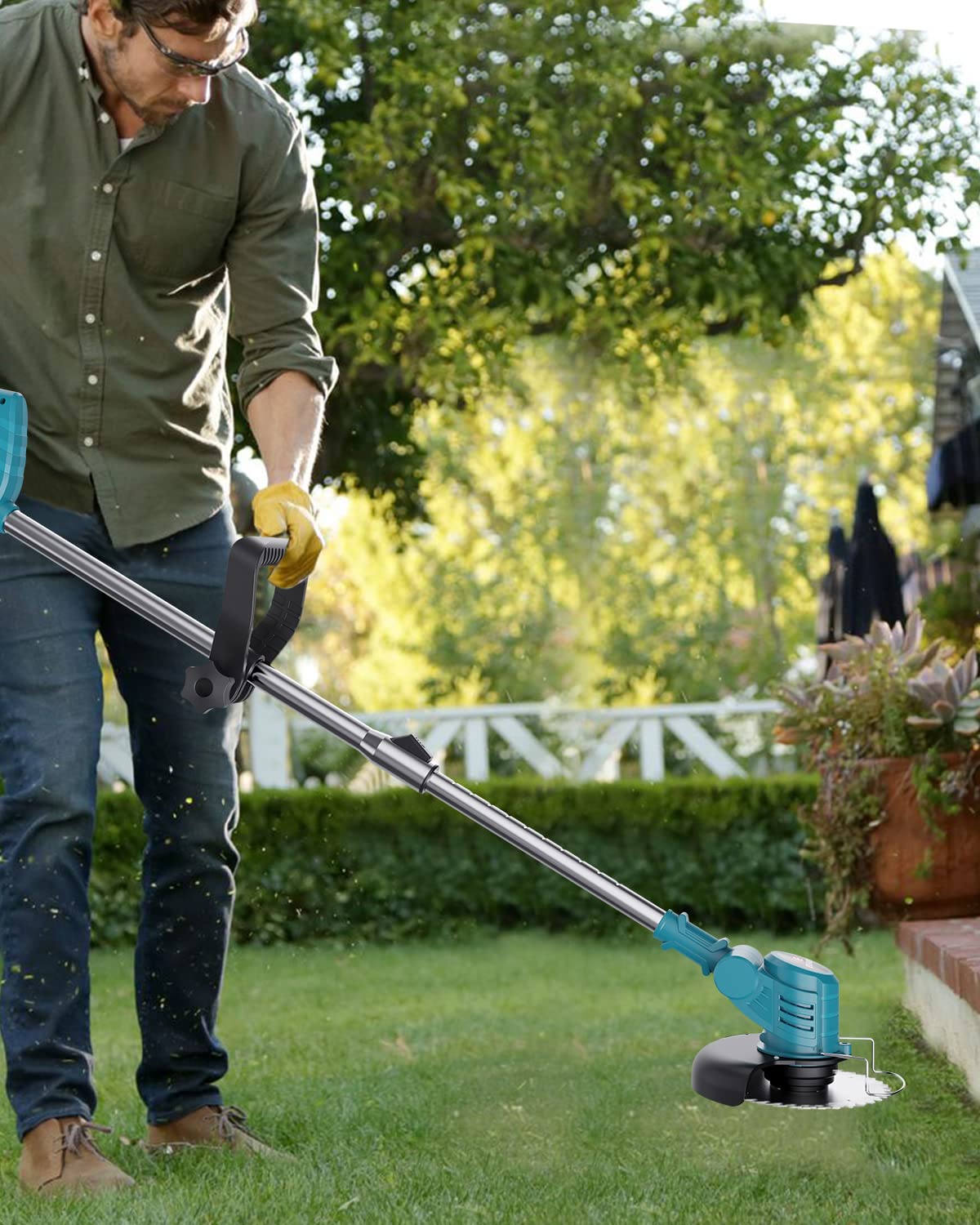 Weed Wacker Cordless 21V, 47" Adjustable String Trimmer with Blade, Brush Cutter Lawn Edger Battery Powered 6000mAh, Lightweight Cordless Weed Eater Grass Trimmer for Lawn Trimming Lawn Care