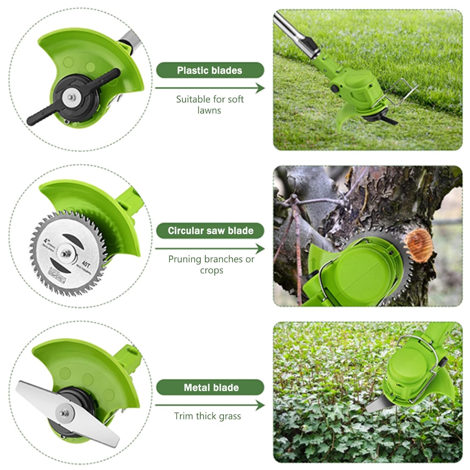 Weed Wacker Cordless Grass Trimmer Electric Weed 90~120cm Retractable, 3 Kinds of Adjustable Blades, 24v Electric Cordless Garden Trimmer with Battery and Charger for Garden