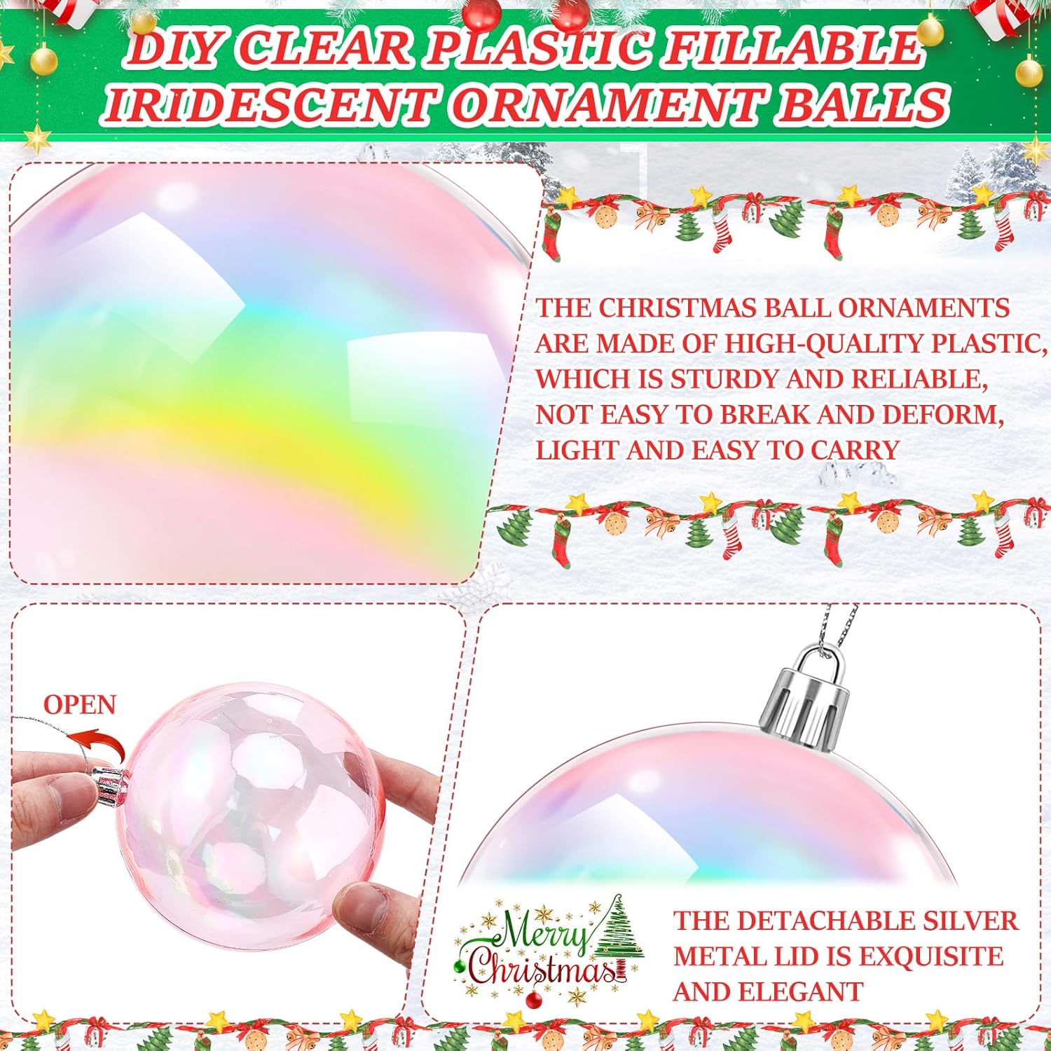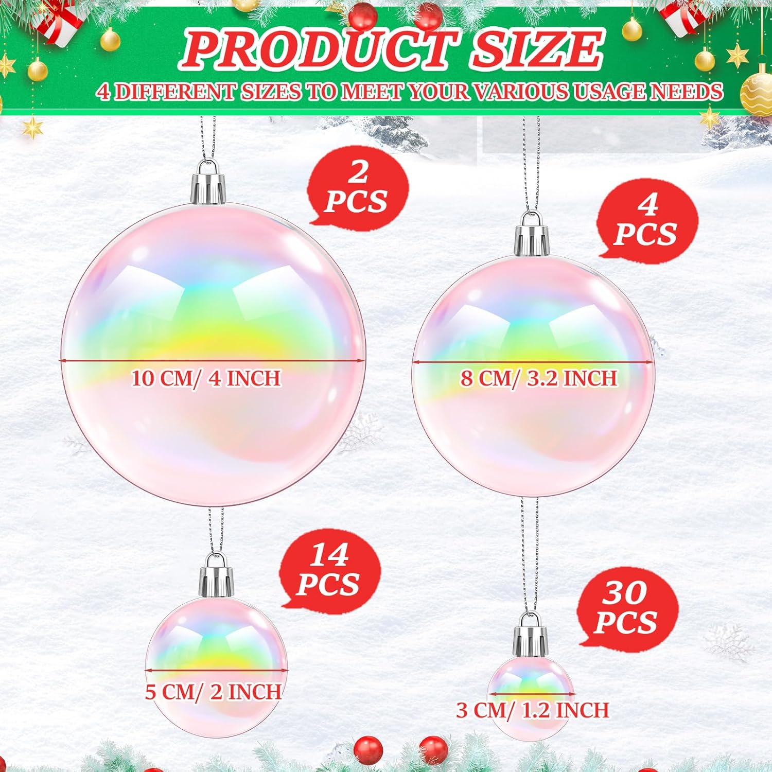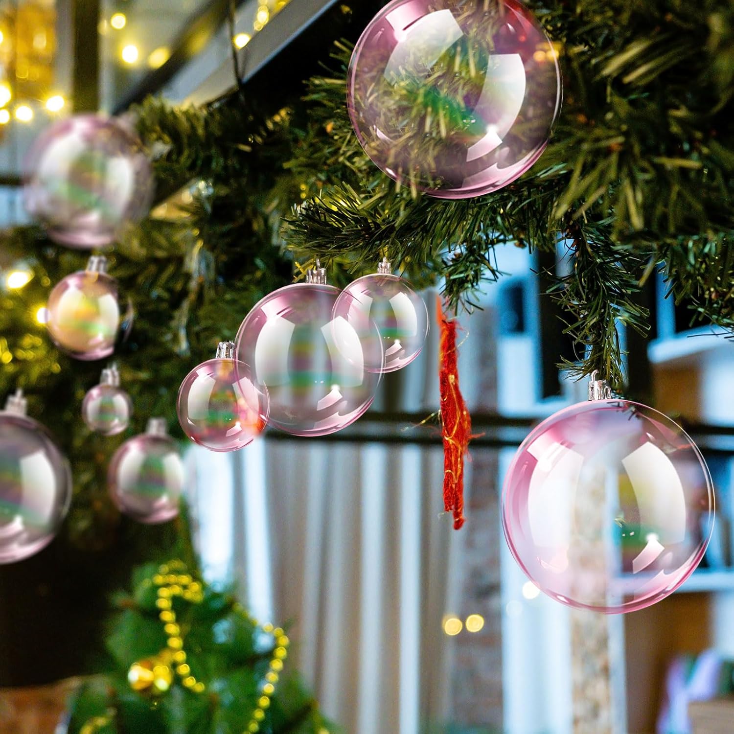 Wettarn 50 Pcs Christmas Iridescent Ornaments Balls 1.2'' 2'' 3.2'' 4'' Transparent DIY Shatterproof Hanging Christmas Rainbow Christmas Ornaments Decorations Xmas Tree Wreath Holiday Party(Pink)