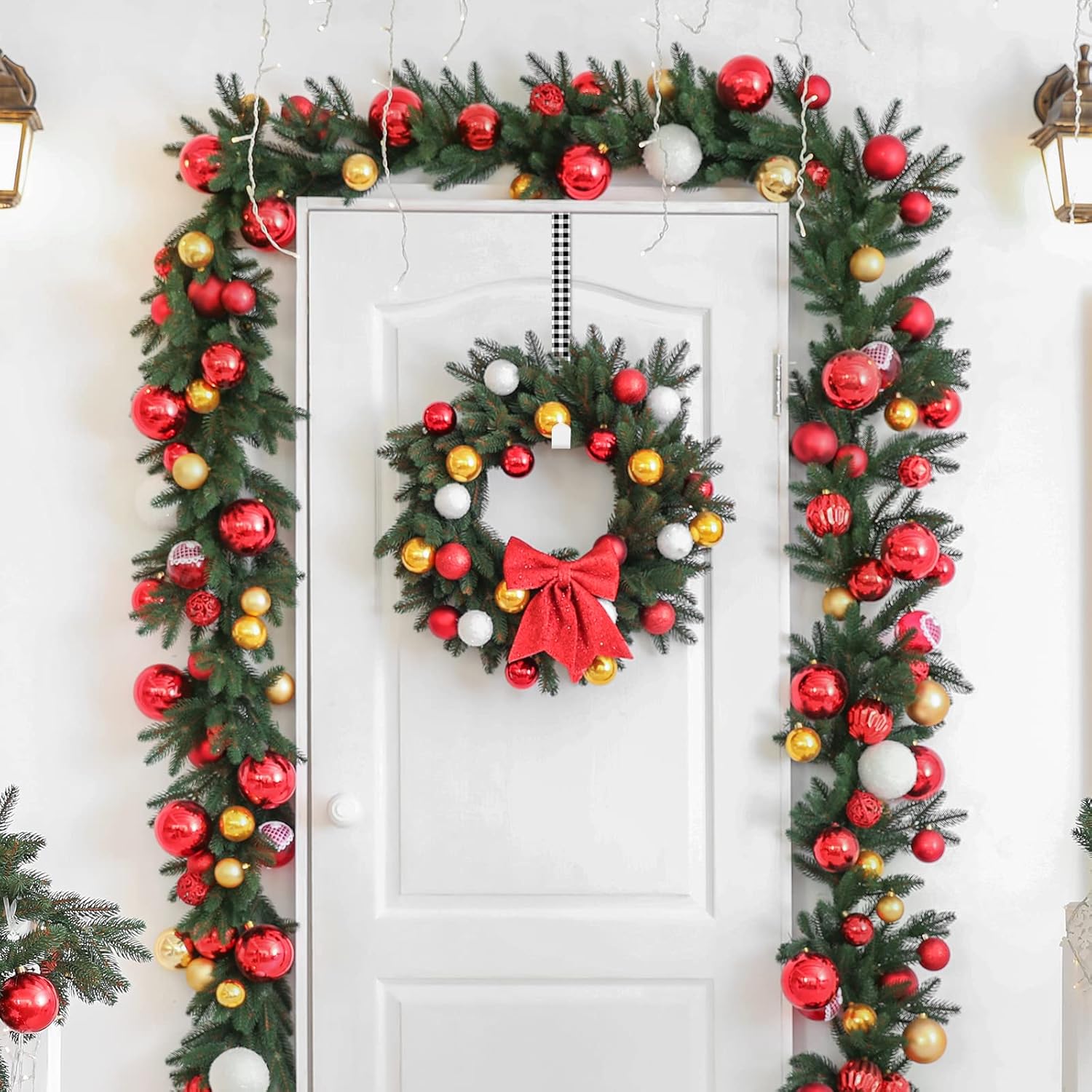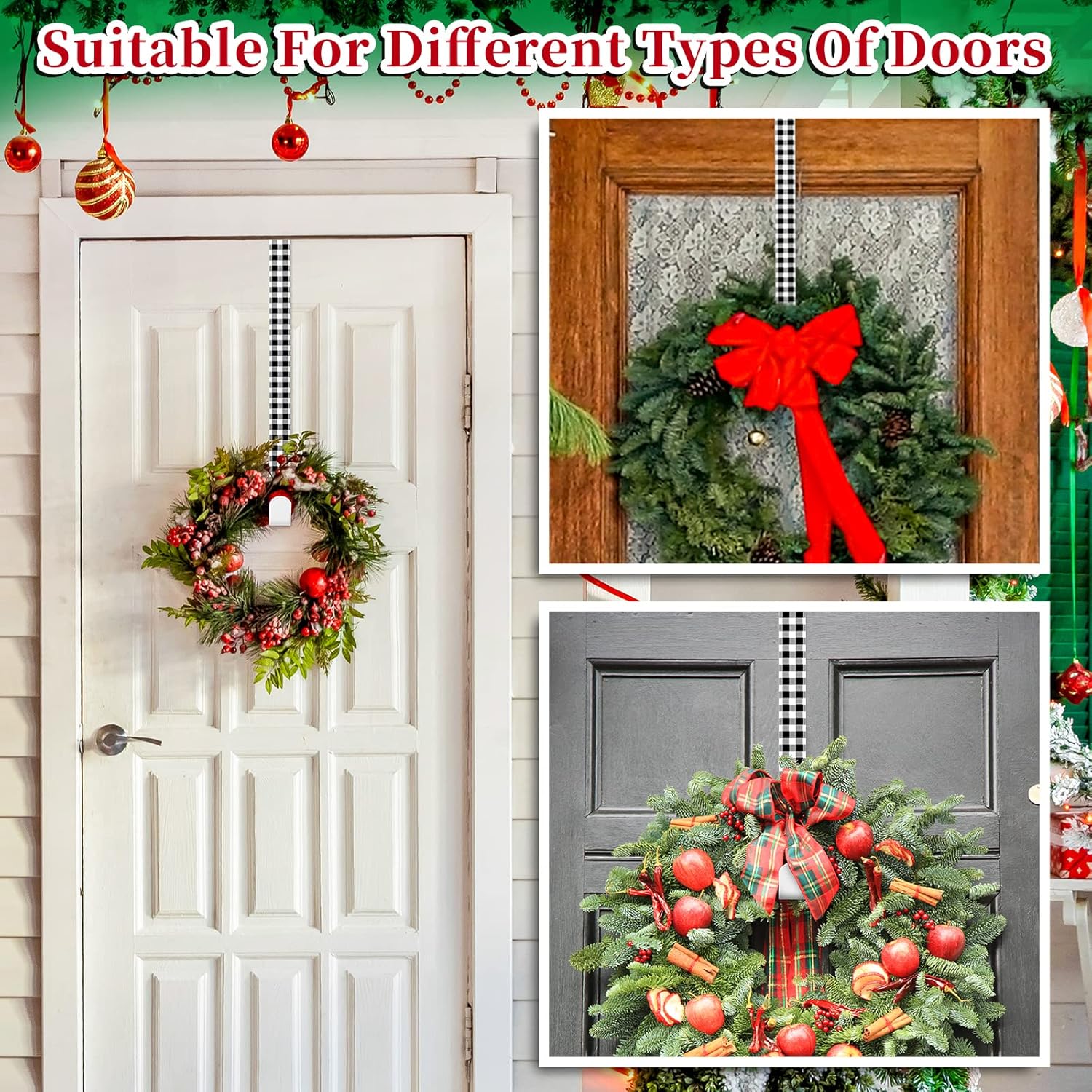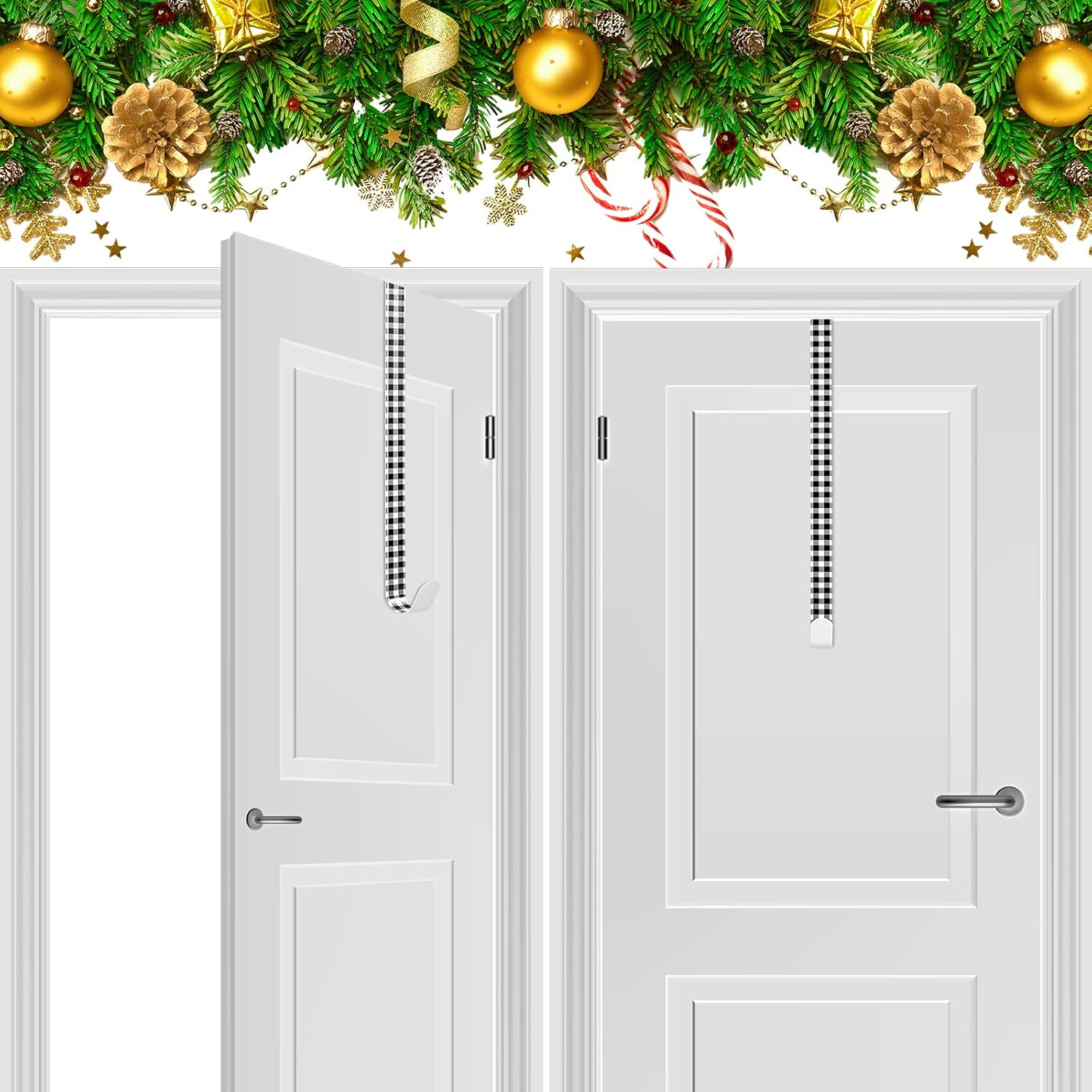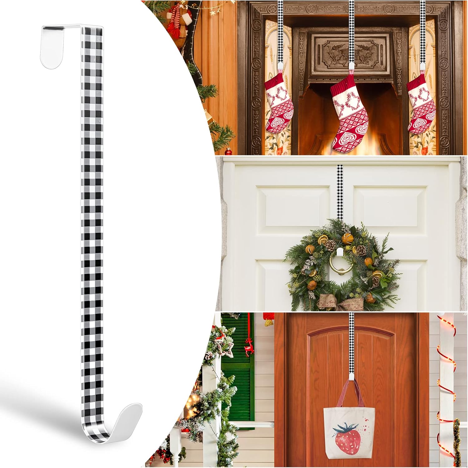 Whaline 2Pcs Christmas Wreath Hanger, 15 Inch Wreath Hangers for Front Door Plaids Xmas Wreath Door Hanger Long Metal Over The Door Wreath Hook Hanger for Xmas Wreath Home Decoration