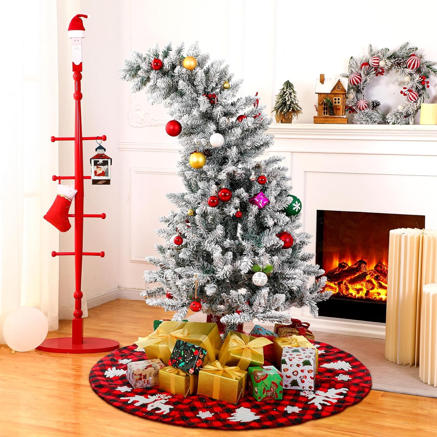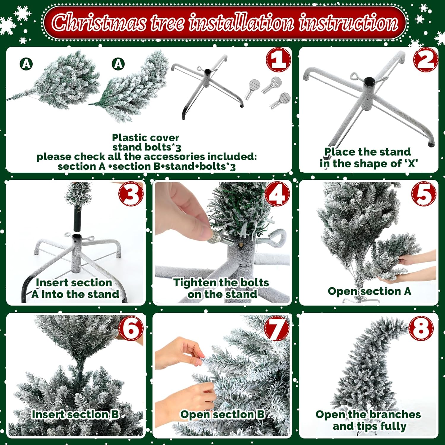 Whimsical Christmas Tree 5 FT Artificial Bendable Christmas Trees White Snow Flocked Holiday Xmas Tree Curved Shape Plastic Trees with Metal Foldable Stand Christmas Decoration Indoor Room