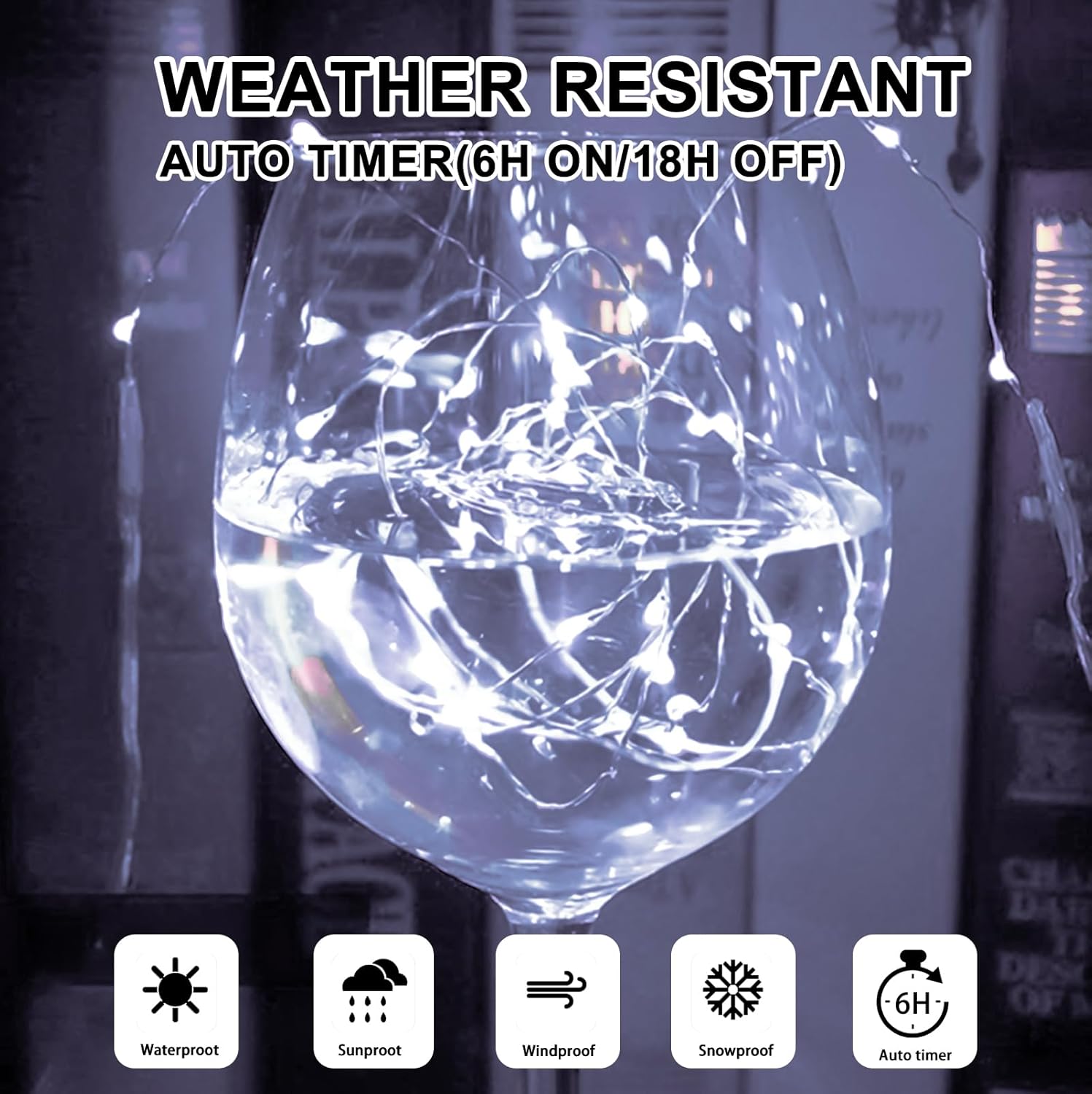 8 Lighting Modes: Unlike others, Our battery lights have 8 different flash modes to choose from, such as combination, in wave, sequential, slo glo, chasing/flash, slow fade, twinkle/flash and steady on, allowing you to customize the ambiance to suit your mood or event.Auto Timer: The string lights are automatically illuminates for 6 hours on and 18 hours off after turning on the lights. No need to panic if the lights is off after 6 hours, they're just taking a nap.