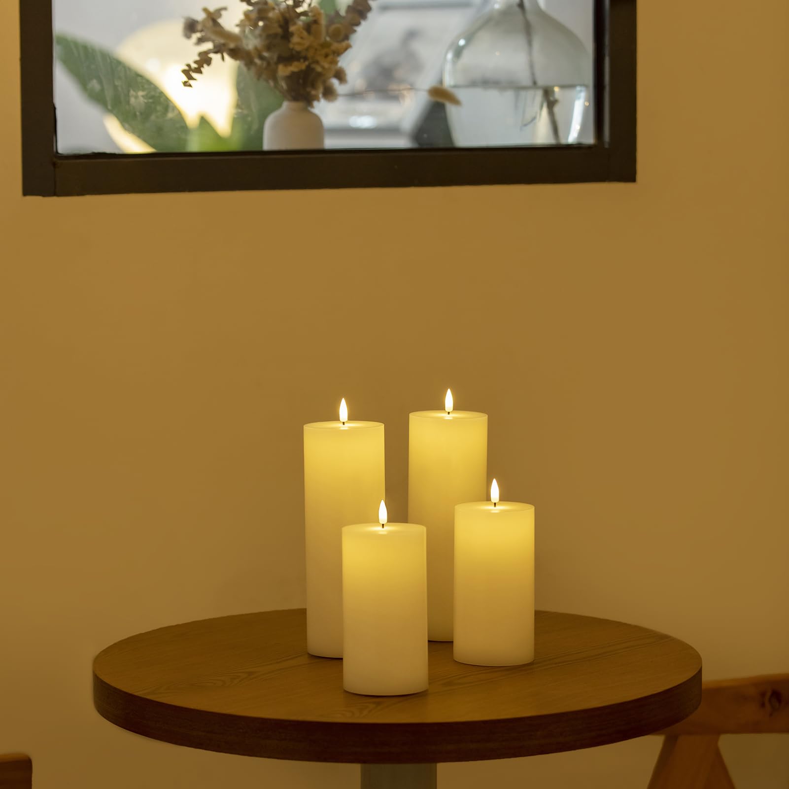 White Flameless Candles Set of 2 (3x9 inch) Flickering LED Wax Candles Battery Operated with Remote Control Timers for Fall Decor/Night Light/Fireplace/Party Dimmable Pillars Flat top